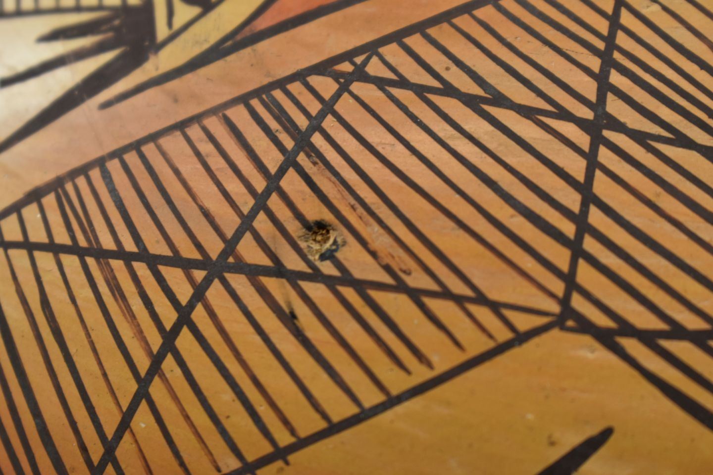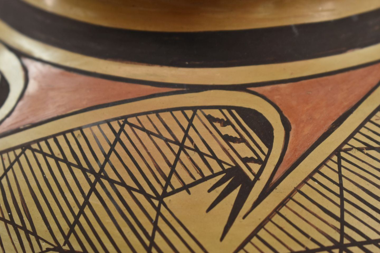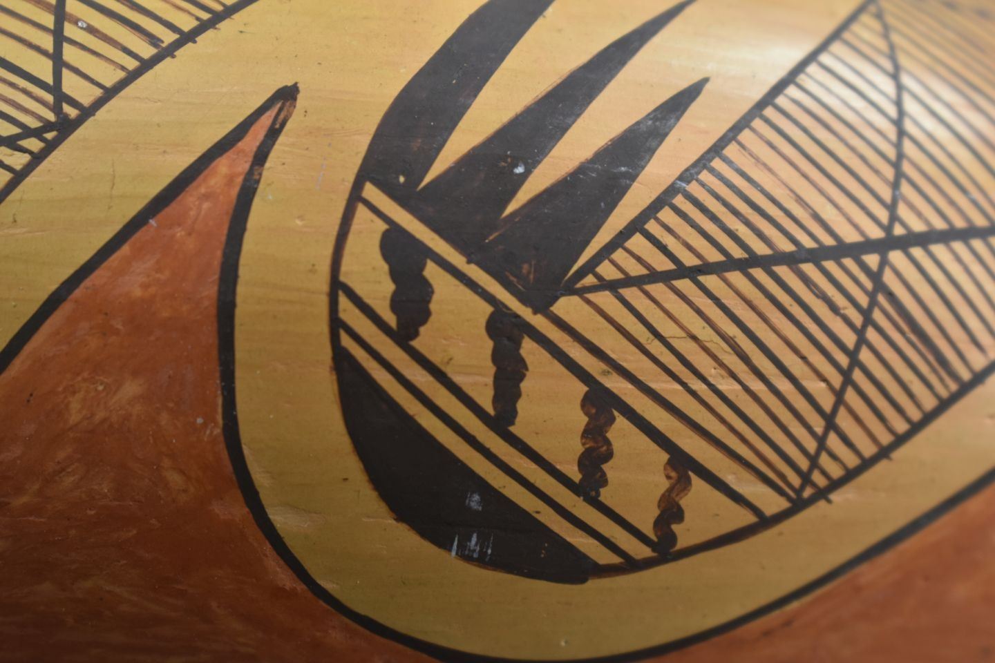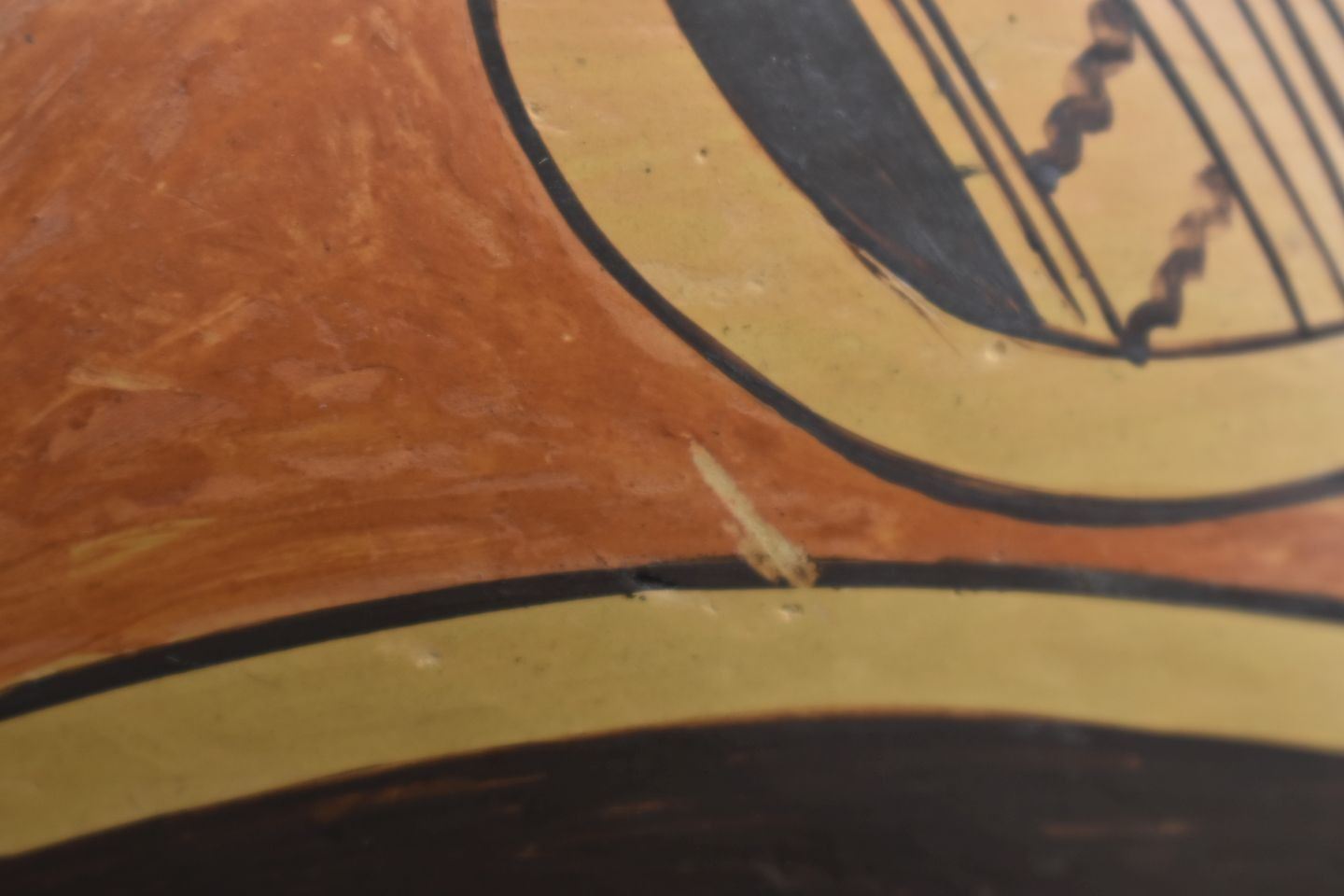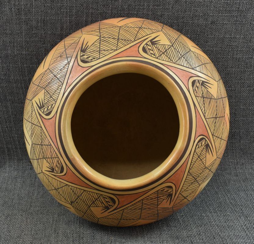 1970's Hopi. hand coiled and painted polychrome migration design, signed Elva Nampeyo. 6'' x 10''