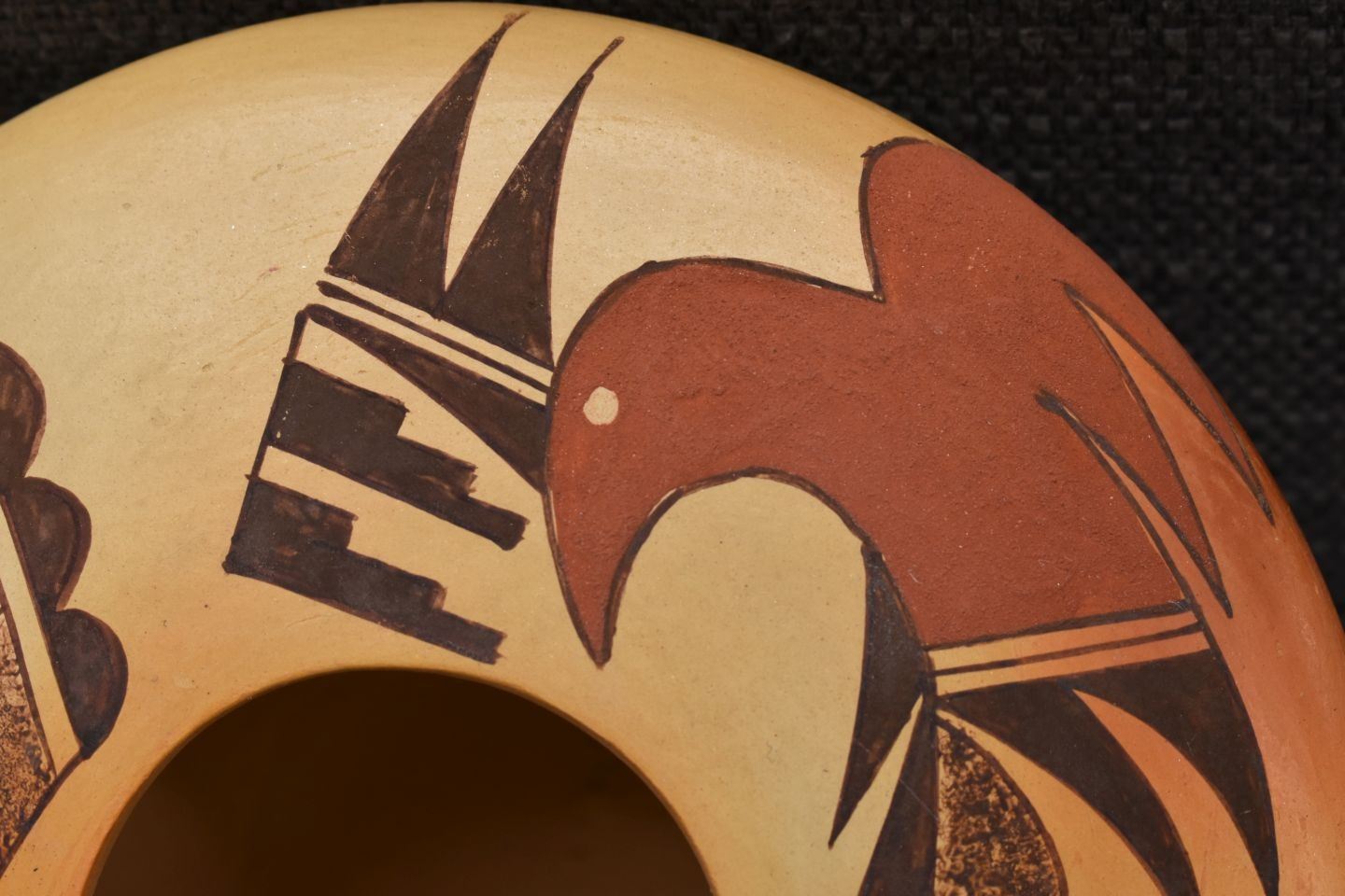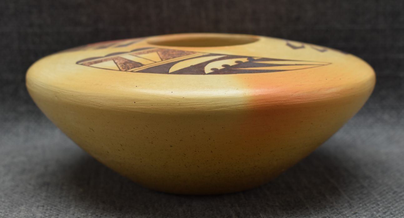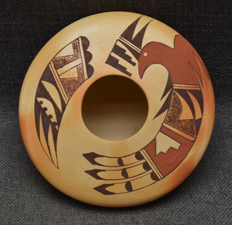 2000's Hopi, hand coiled with polychrome painted parrot design by Garrett Maho 2.5" x 6"