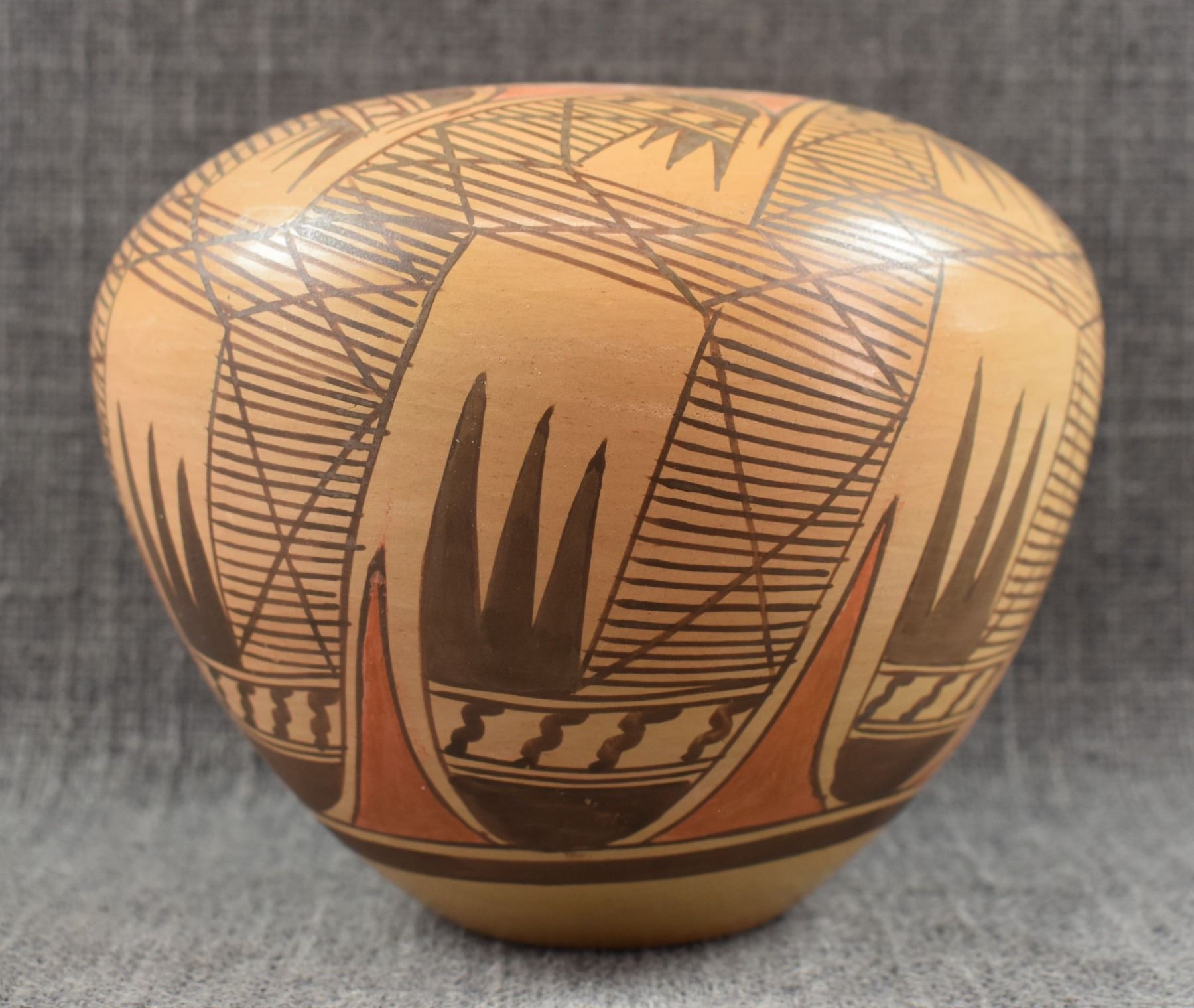 1990's Hopi. Hand coiled and painted design pottery jar signed Miriam Nampeyo, 4.5'' x 5.5''