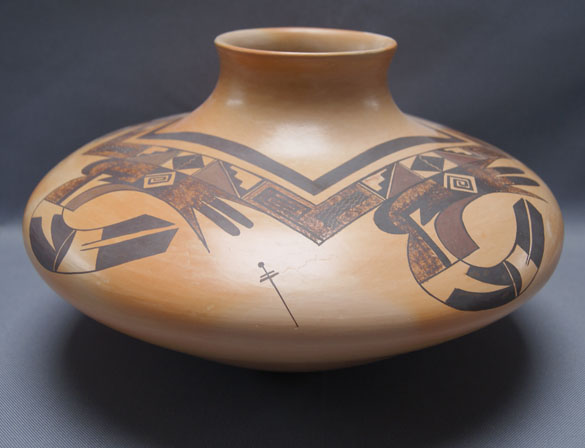 1980s-90s four-color Nampeyo design signed white Swan for Joe Navasie, 7.25" x 12"