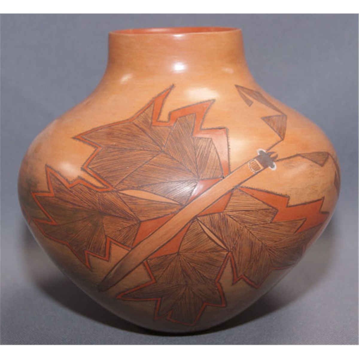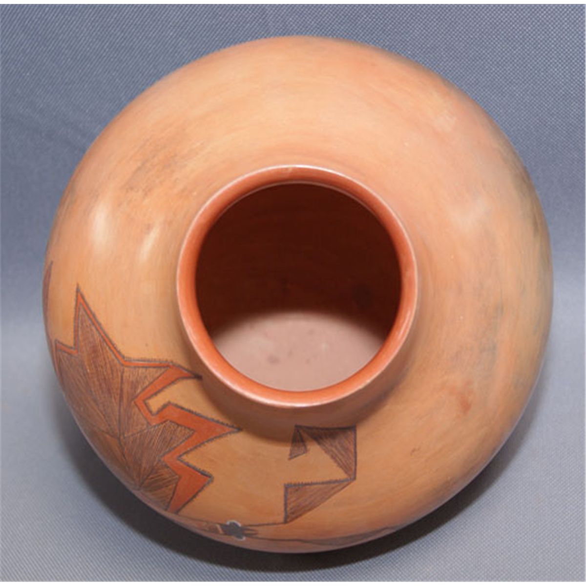 1970s 80s polychrome butterfly design signed Dextra (Dextra Quotskuyva Nampeyo)6.5" x 7" has fire cloud