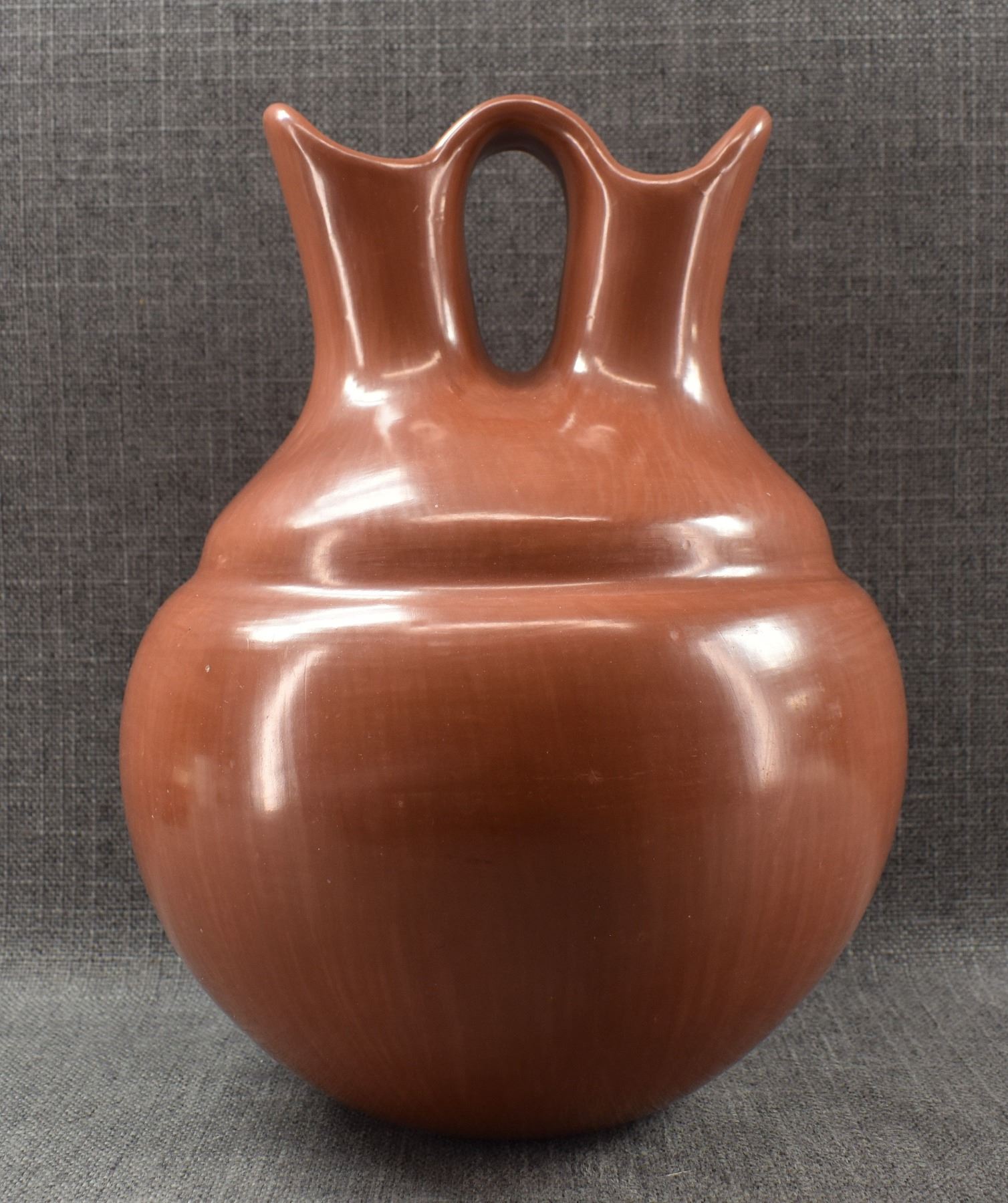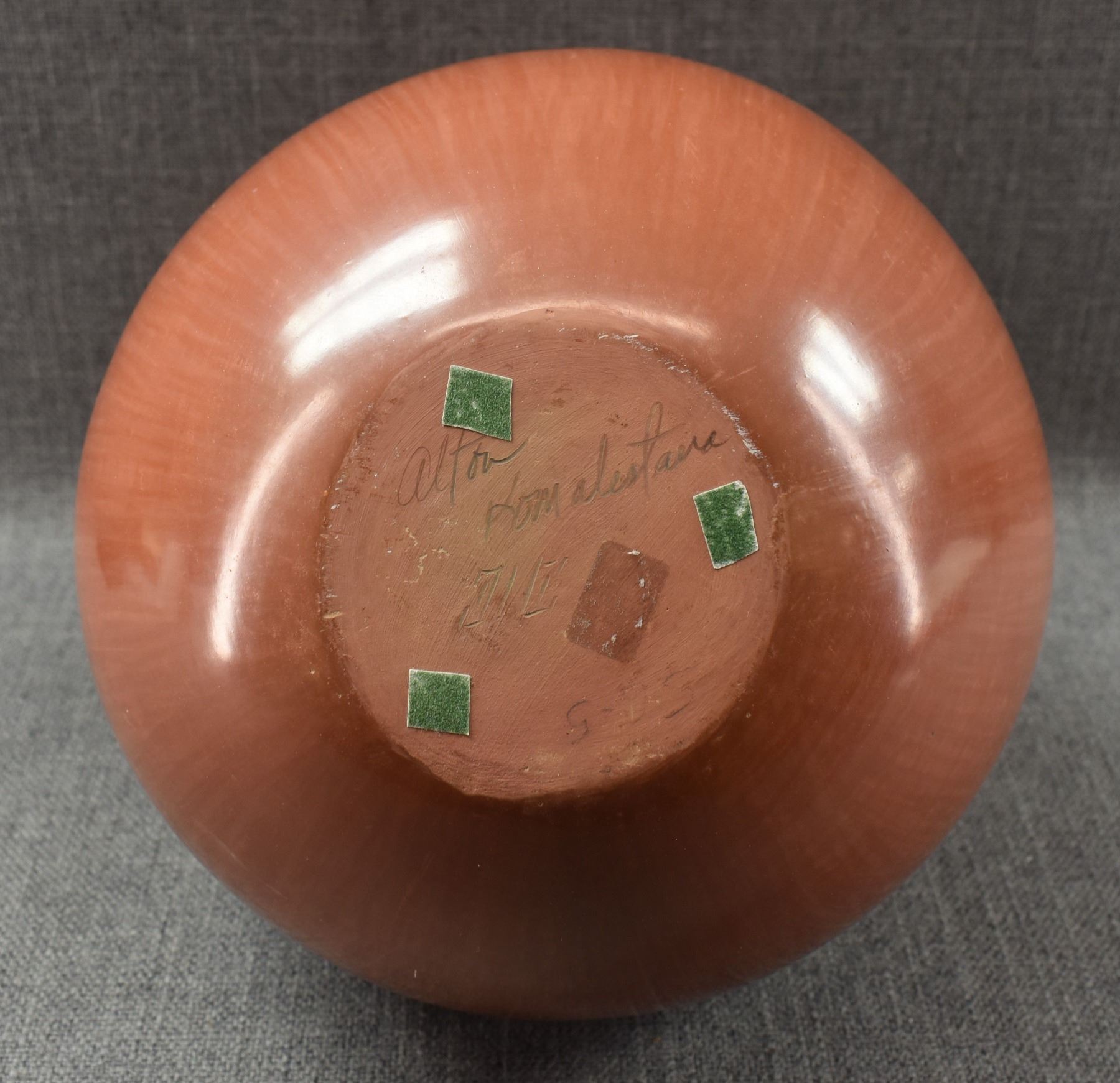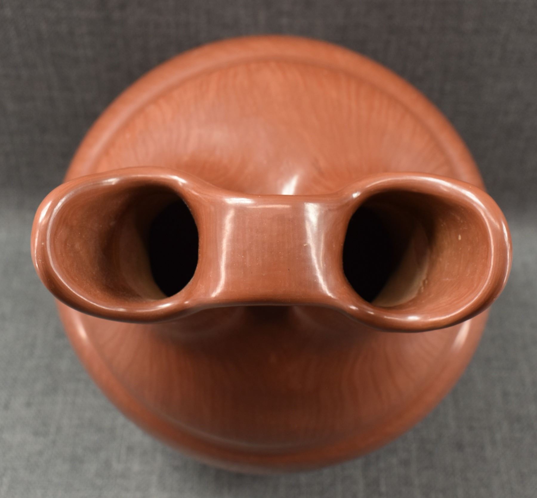 1980's Hopi Indian. Hand coiled and polished pottery wedding vase signed Alton Komalestewa. 12'' x 9''