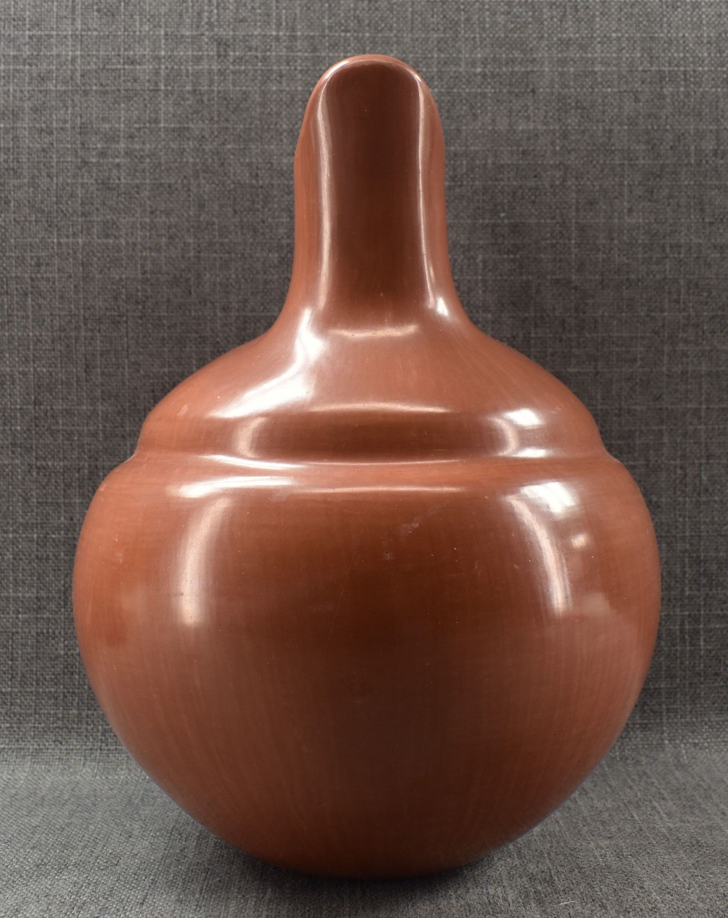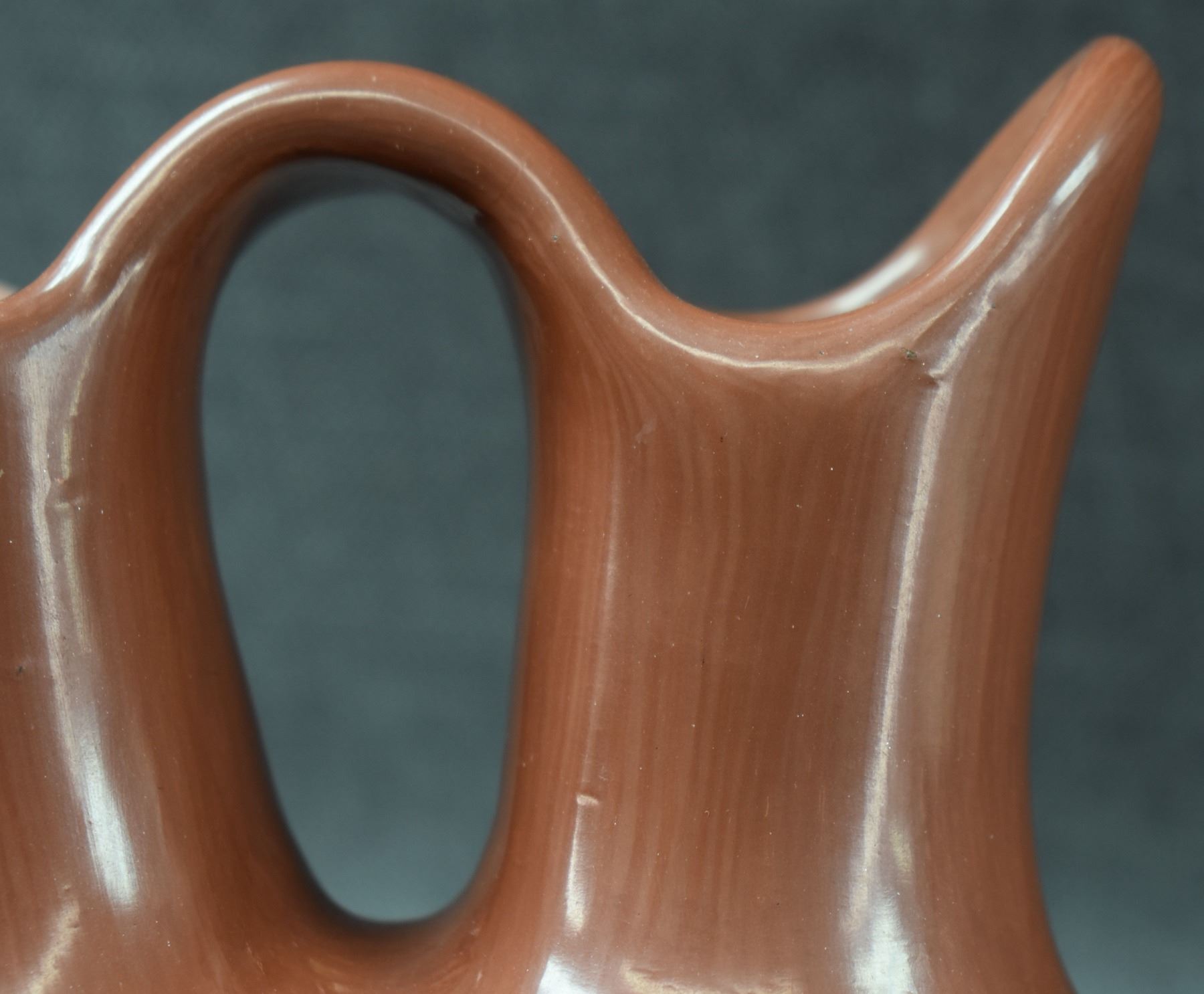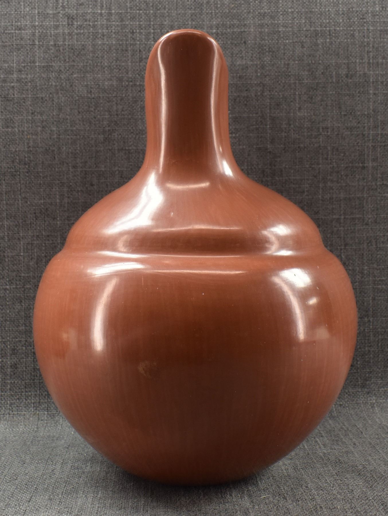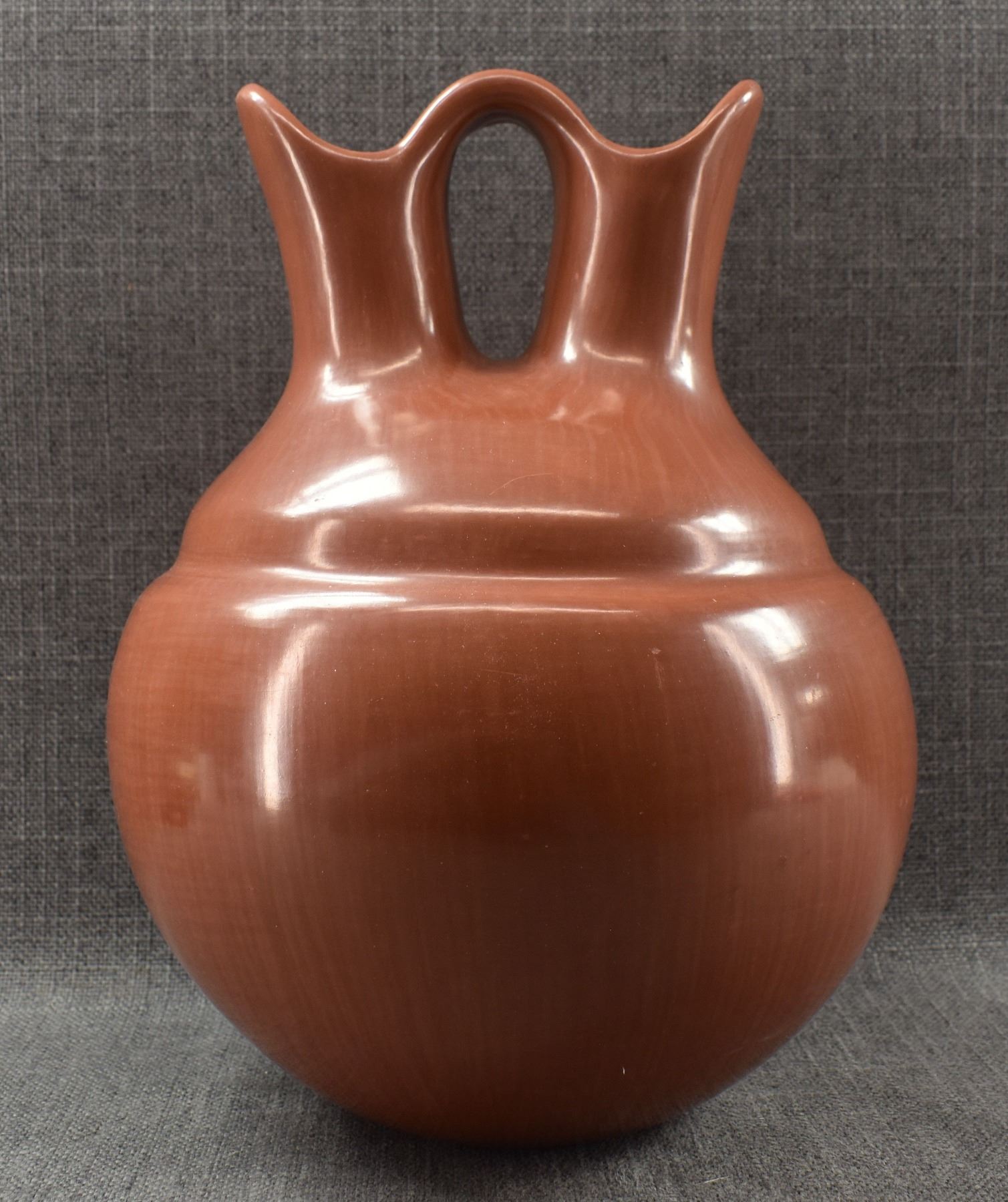 1980's Hopi Indian. Hand coiled and polished pottery wedding vase signed Alton Komalestewa. 12'' x 9''