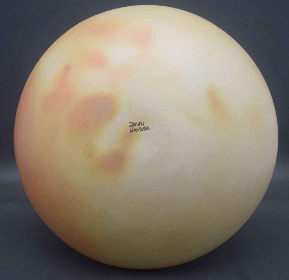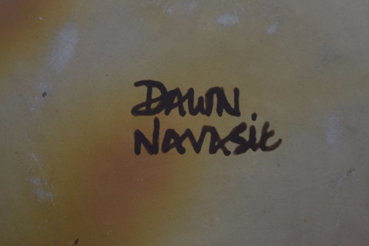 1980's busy hand painted polychrome design has minor rubs signed Dawn Navasie 12'' x 14''
