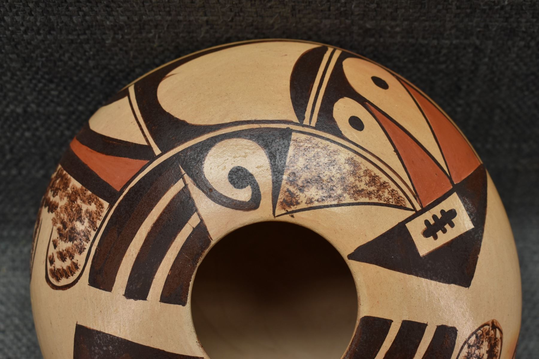 1990's Hopi . Hand coiled and painted pottery seed jar Signed Adell l Nampeyo. 3'' x 5''
