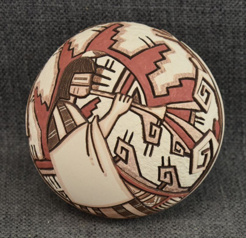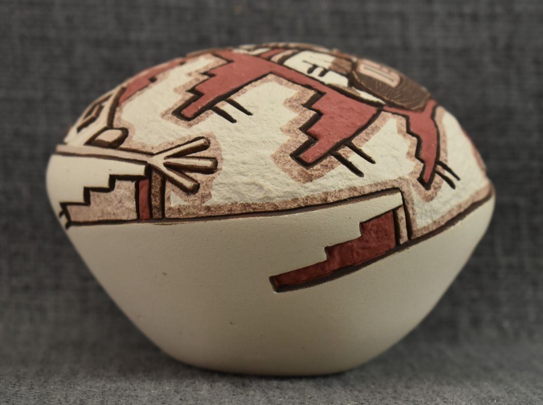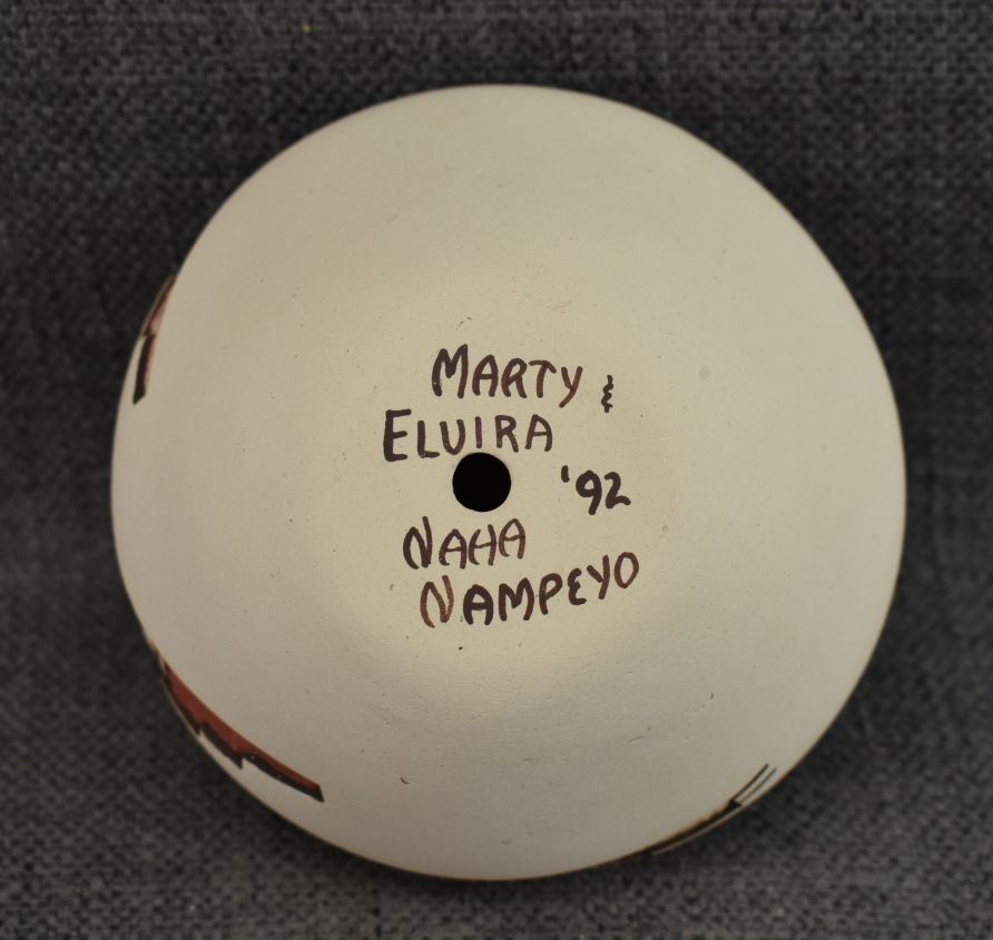 1992 Hopi, hand coiled with carved and painted design by Marty and Elvira Naha Nampeyo 3.5" x 4.5"