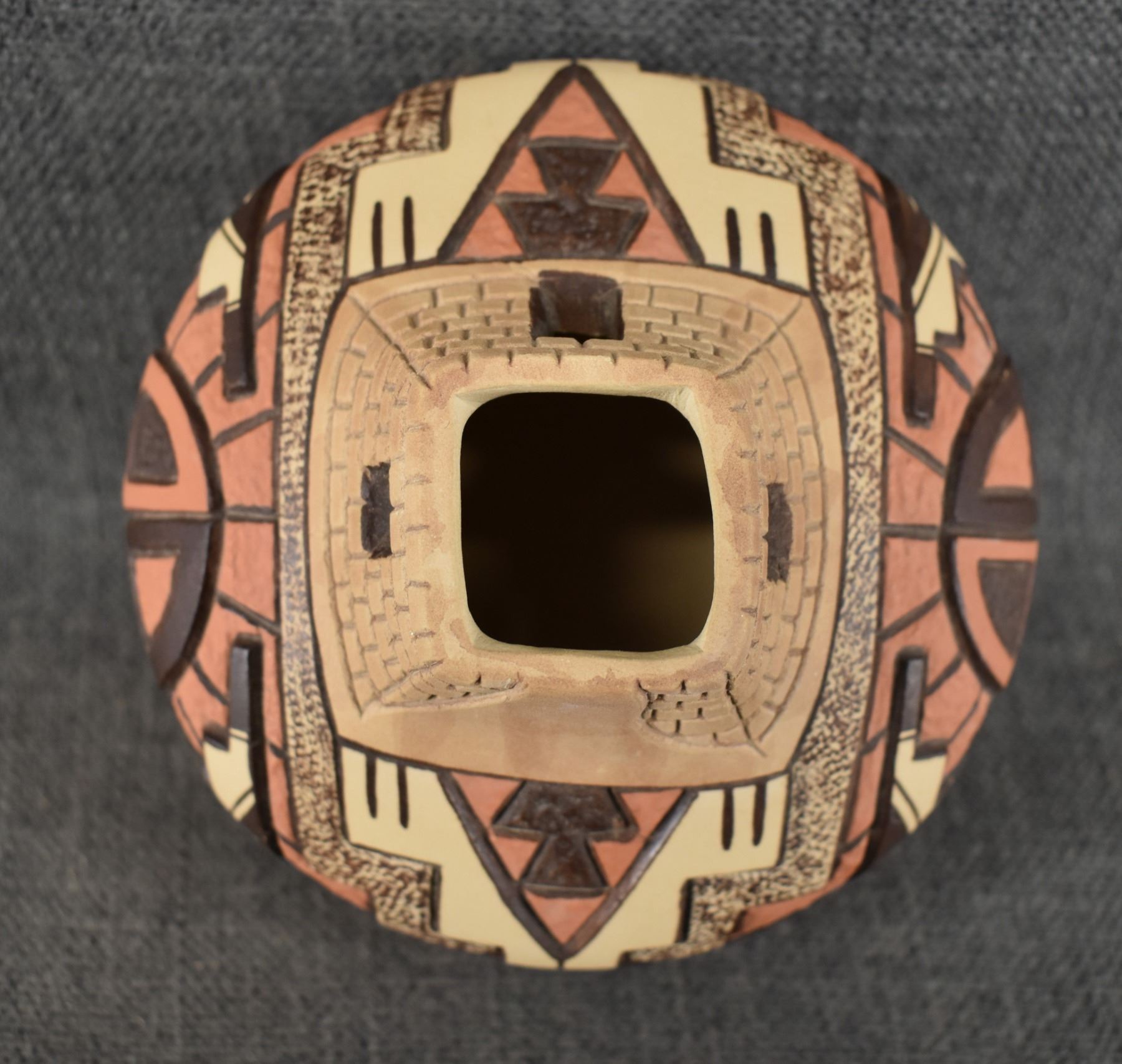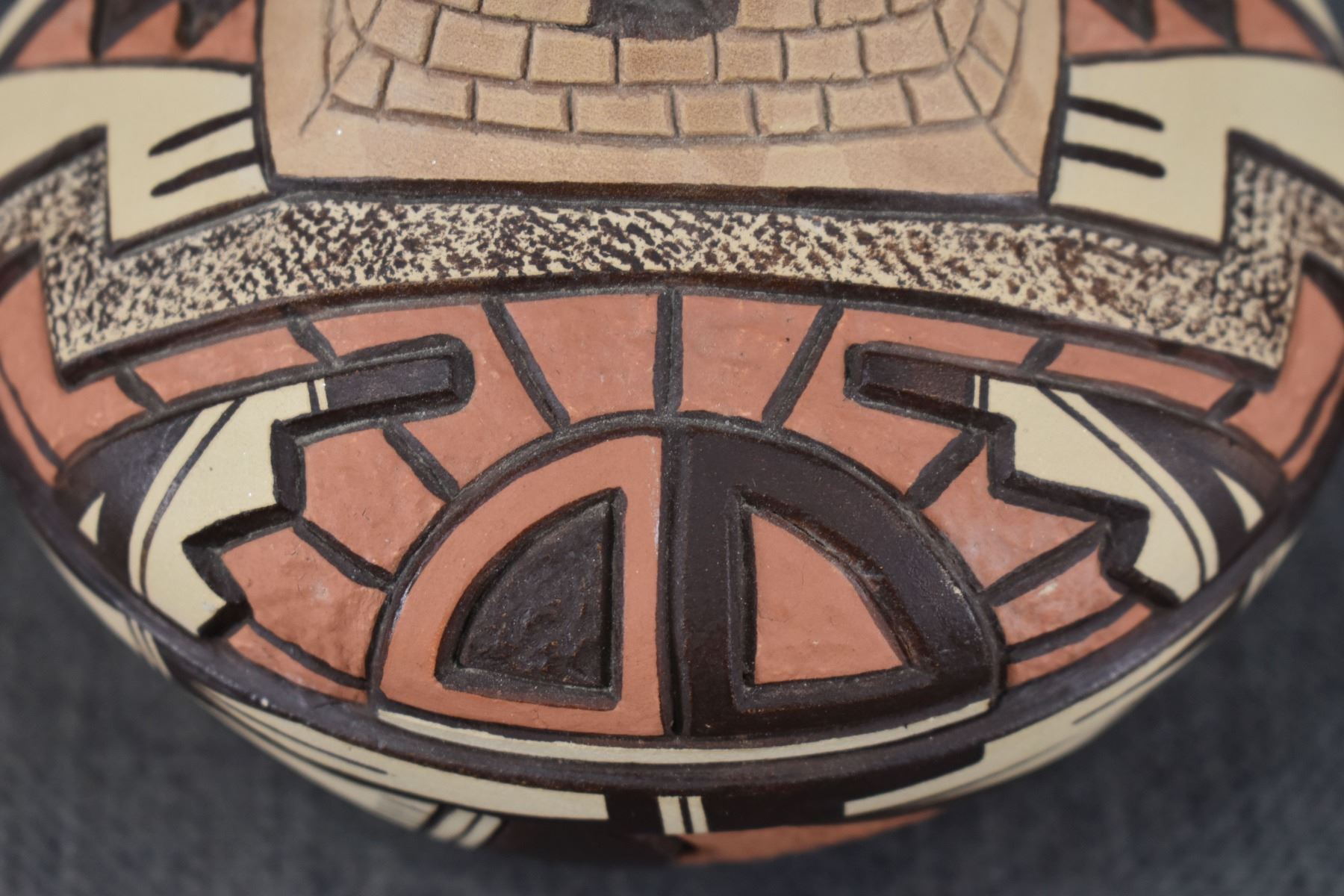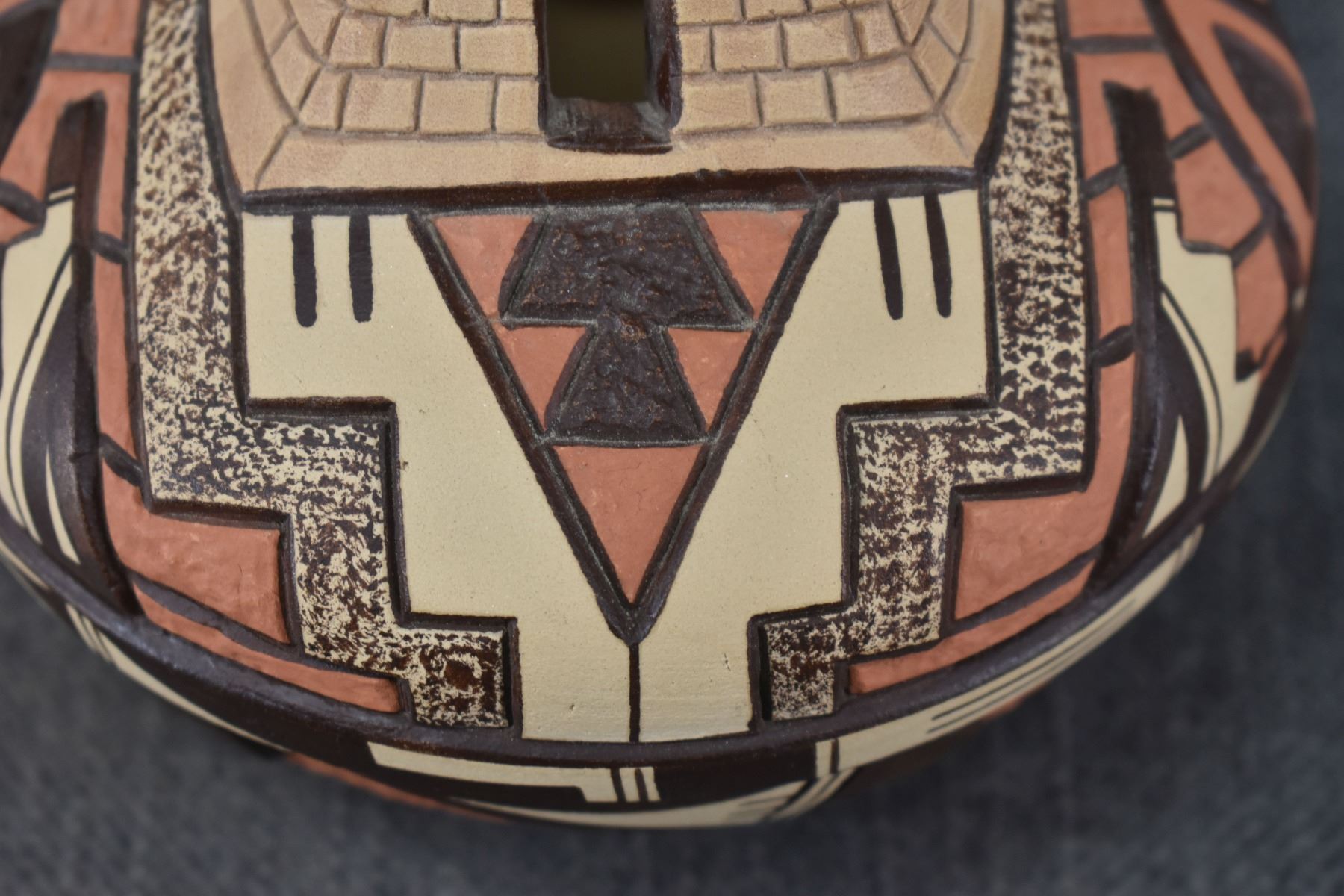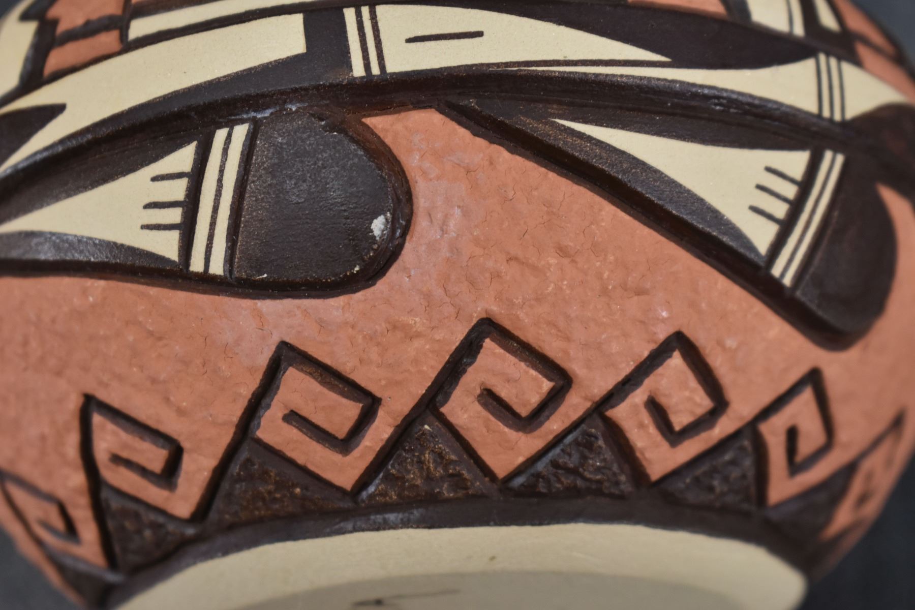 1990's Hopi, hand coiled with carved and painted design by Elson Seckletstewa 4.5" x 5.5"