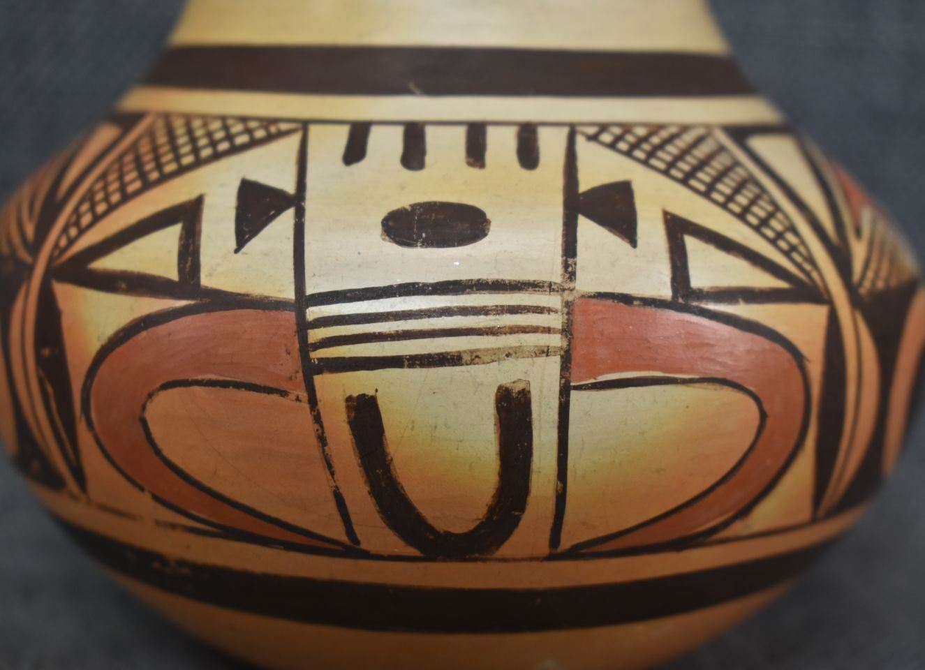 1974 Hopi, hand coiled with polychrome kachina face design signed Nampeyo Fannie 3.75" x 4.75"