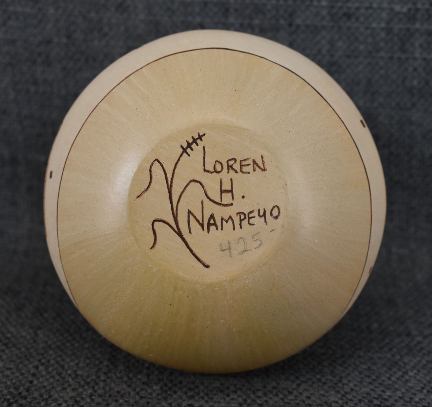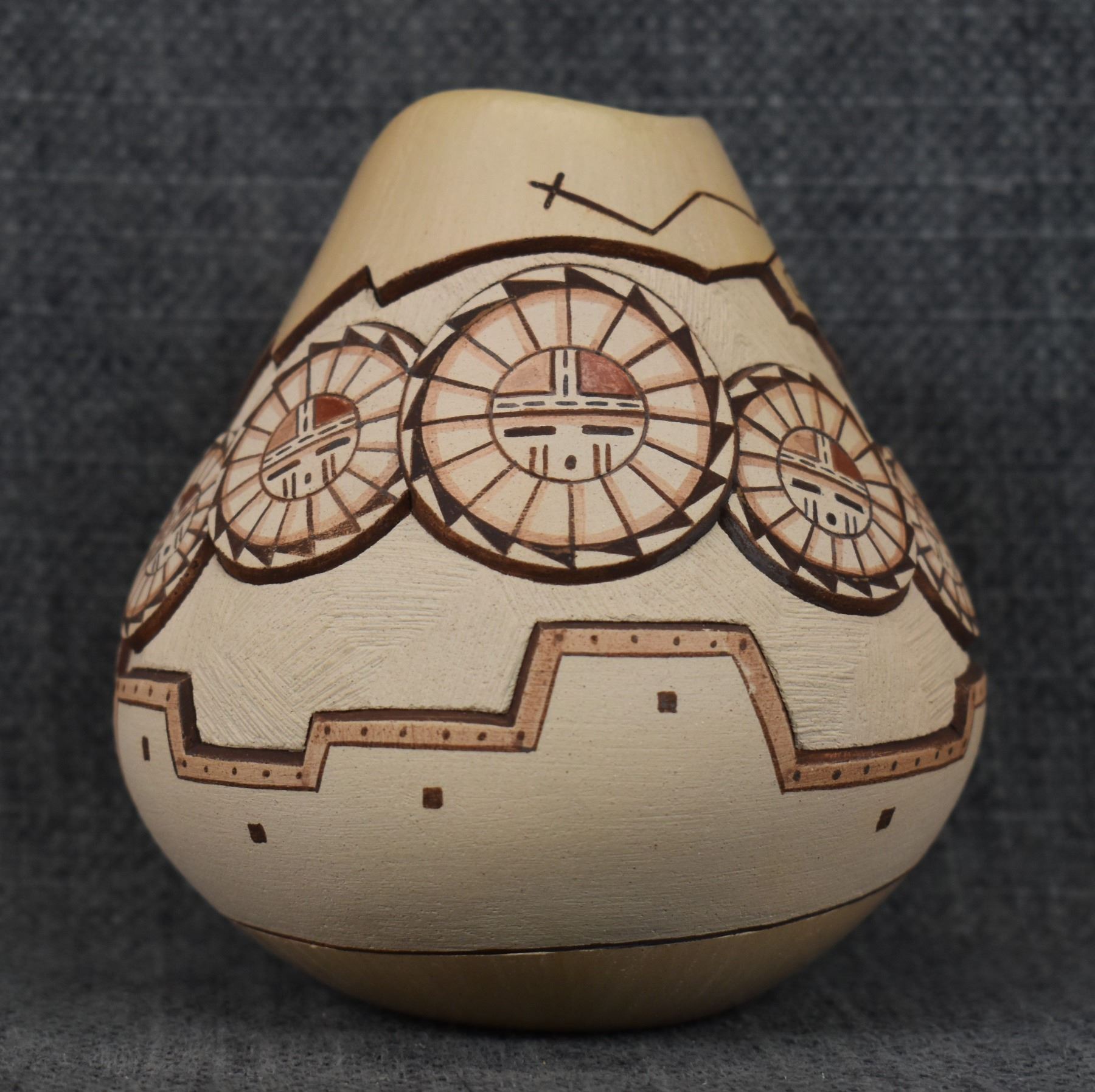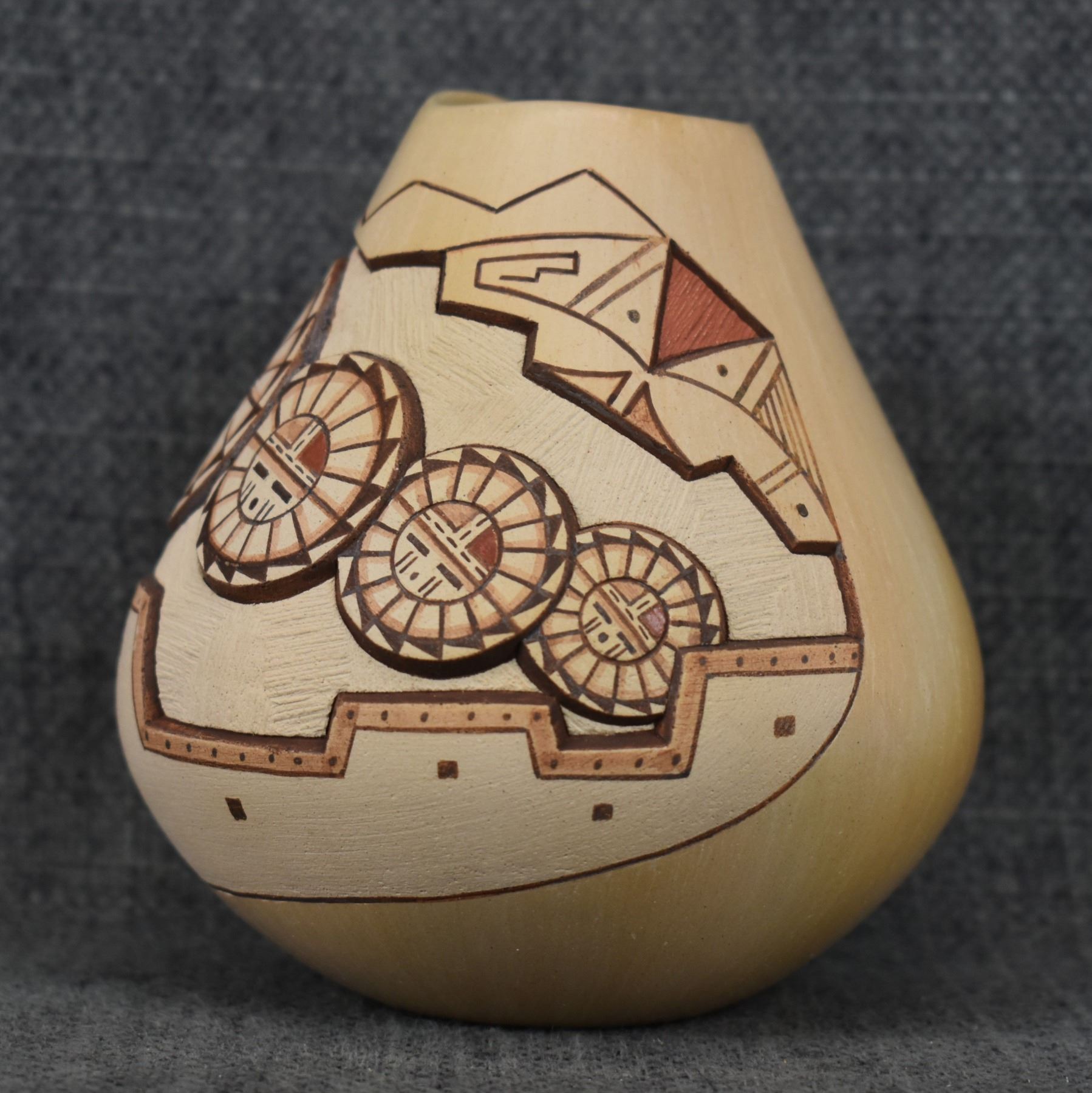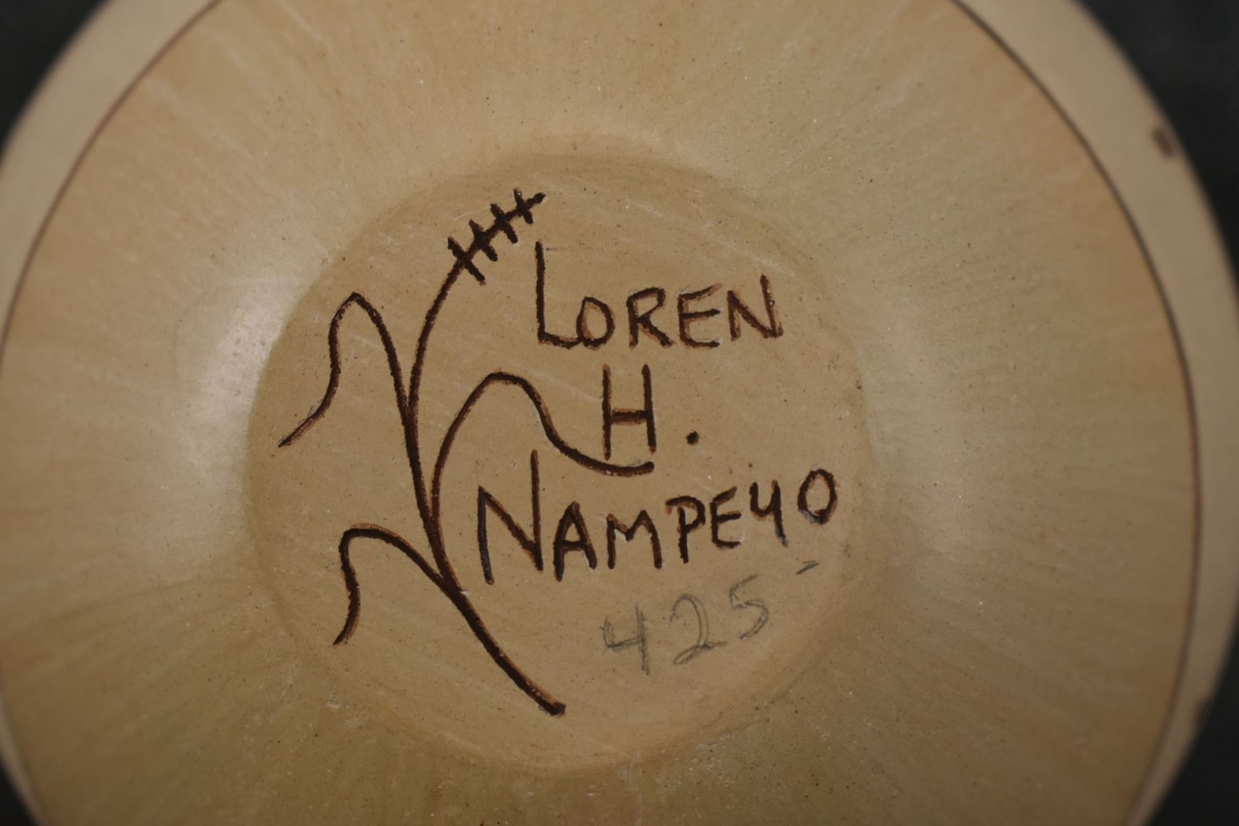 1980-90's Hopi, hand coiled with carved and painted design Loren H Nampeyo 4" x 3.5"