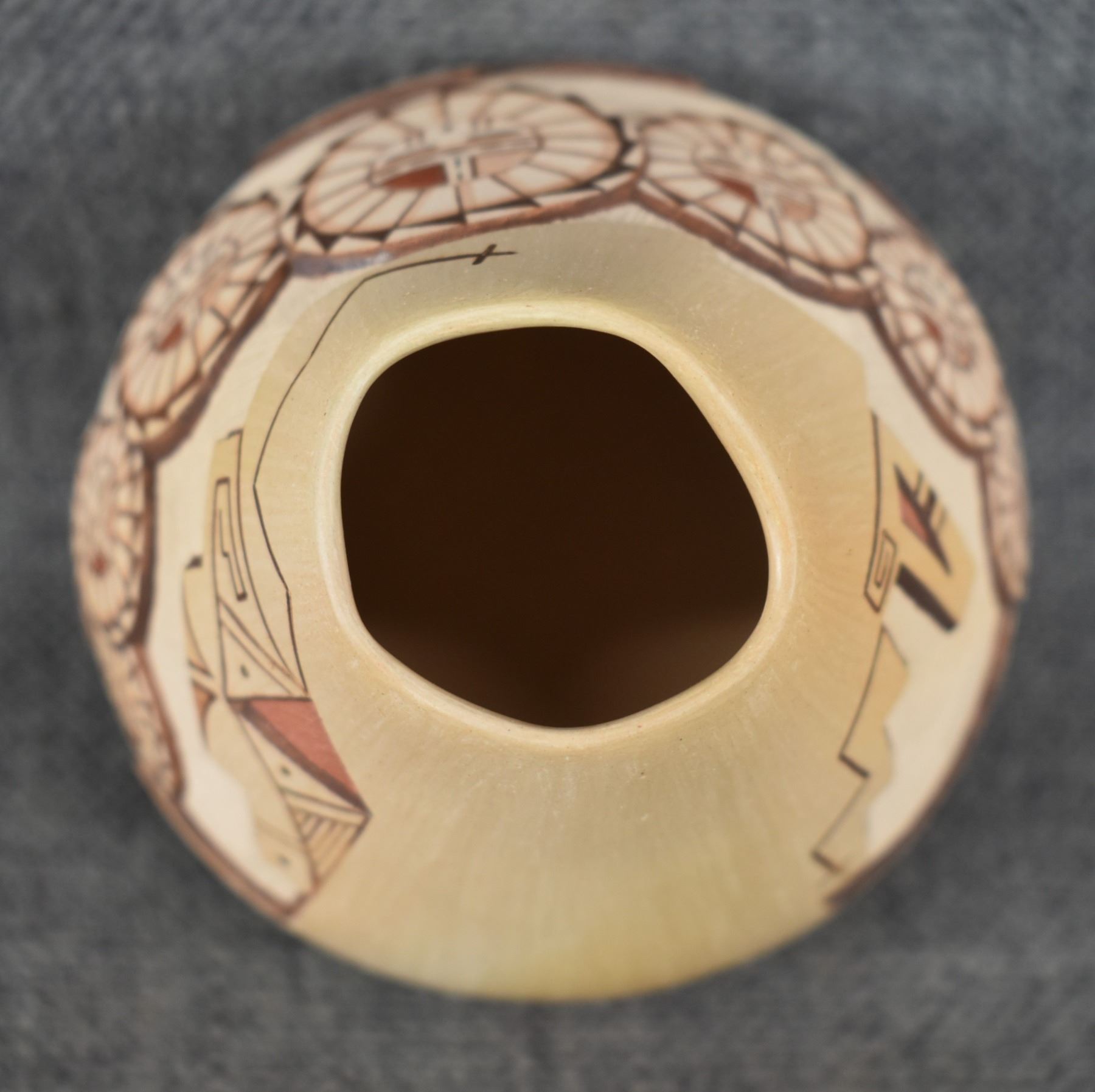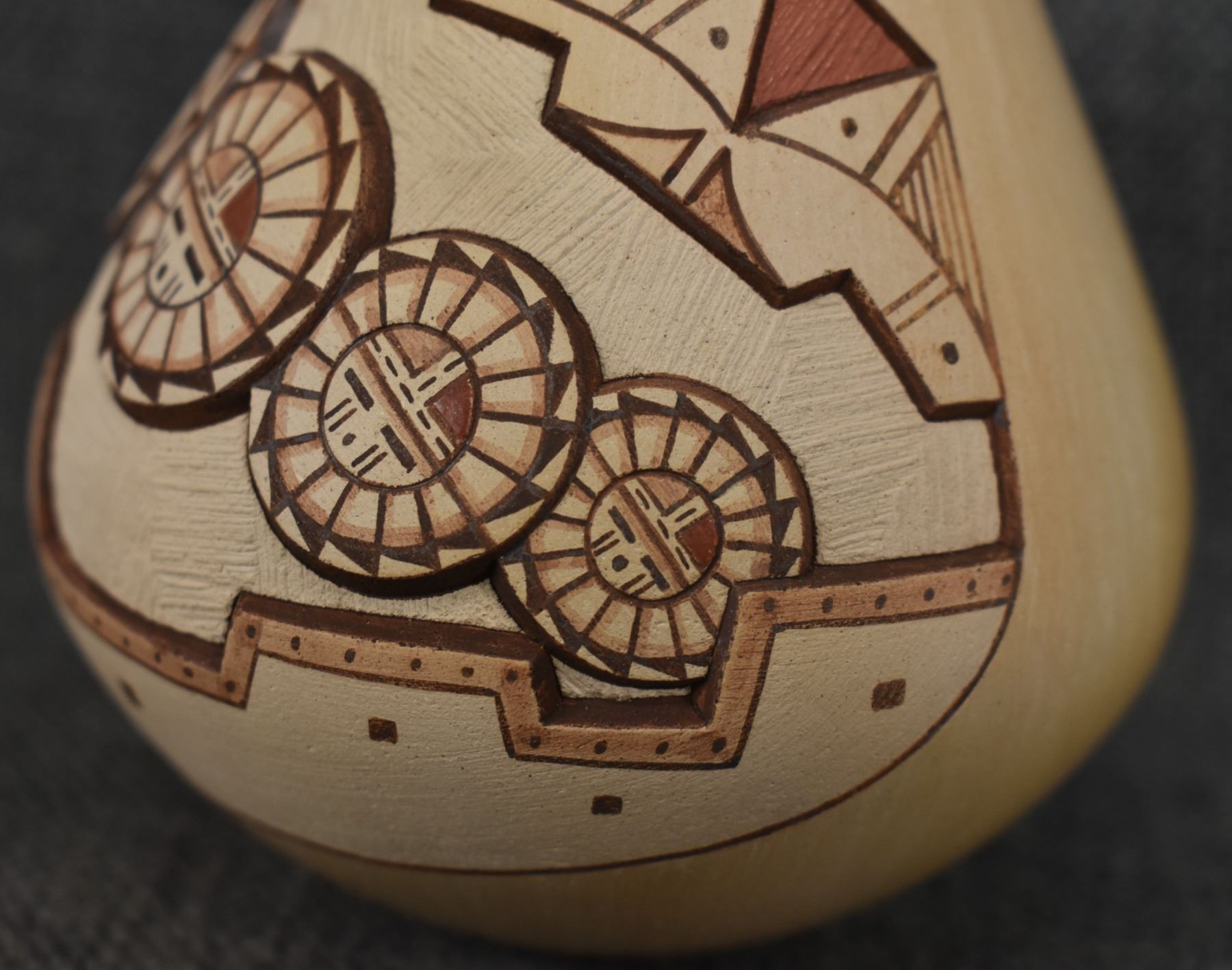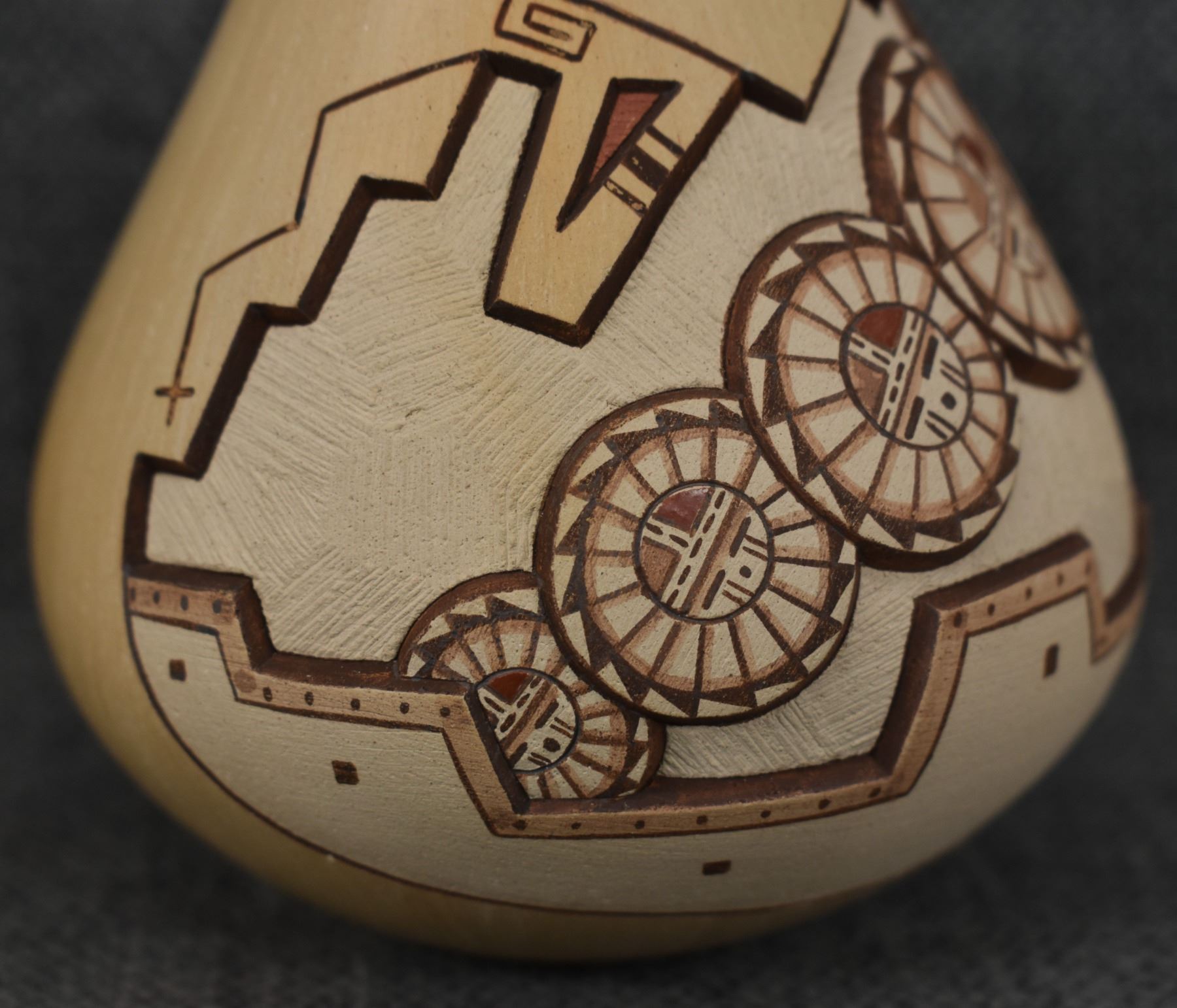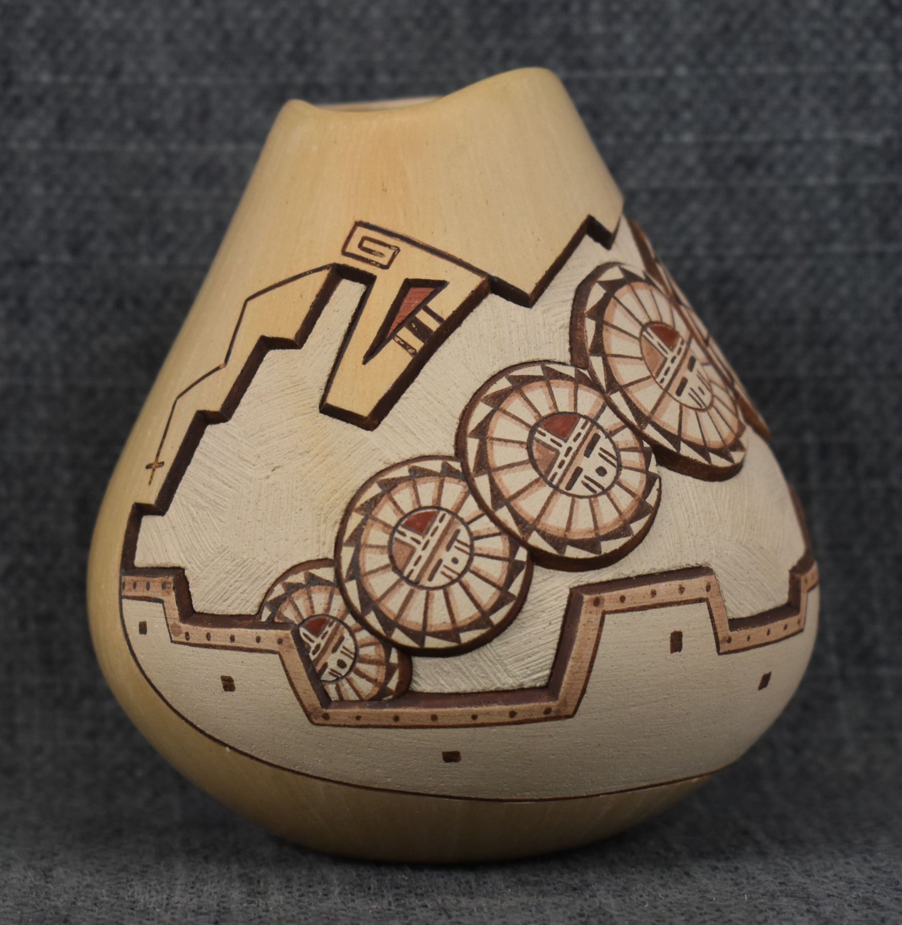 1980-90's Hopi, hand coiled with carved and painted design Loren H Nampeyo 4" x 3.5"