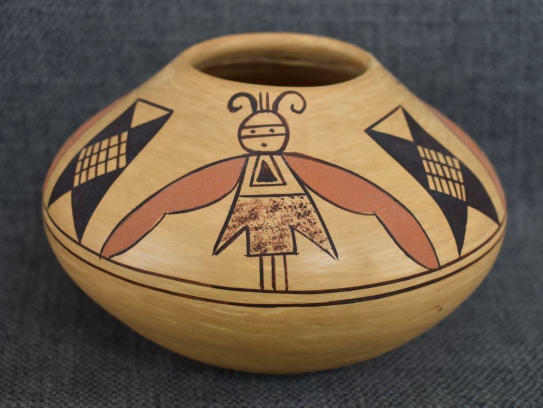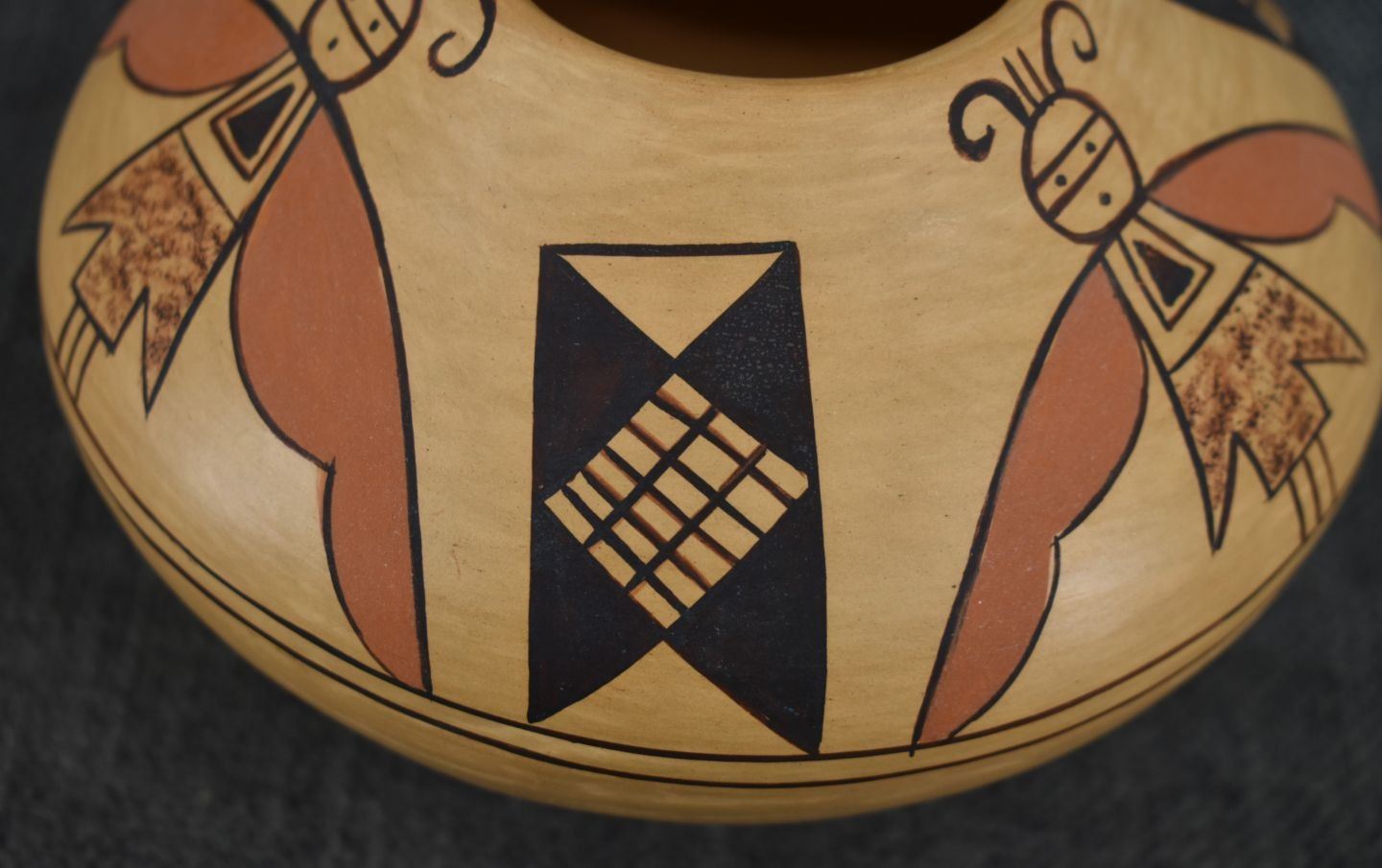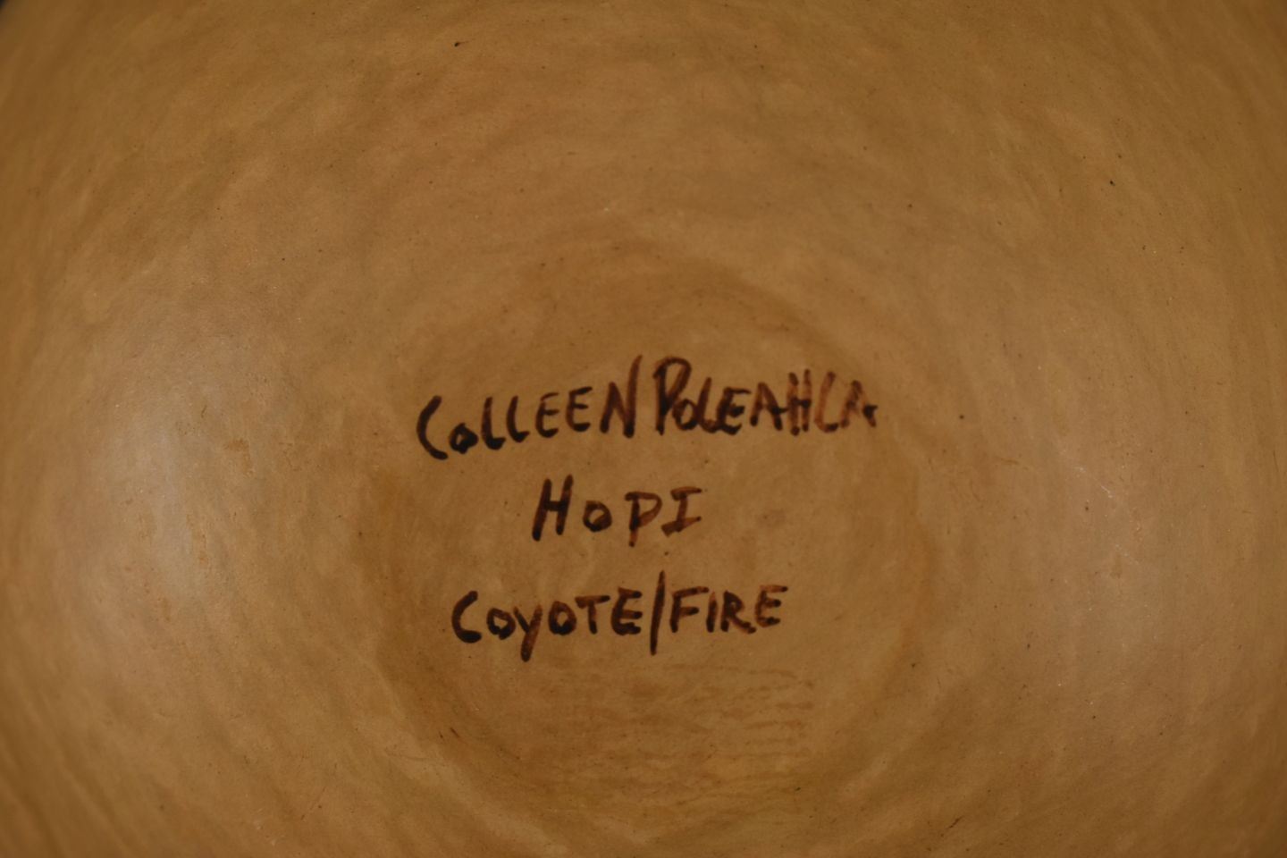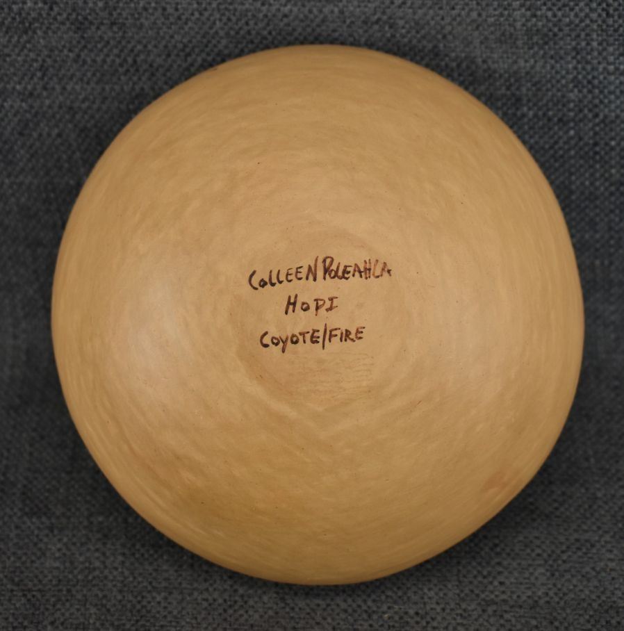 1980's Hopi. hand coiled and painted polychrome stylized butterfly design signed Colleen Poleahla 4'' x 6''