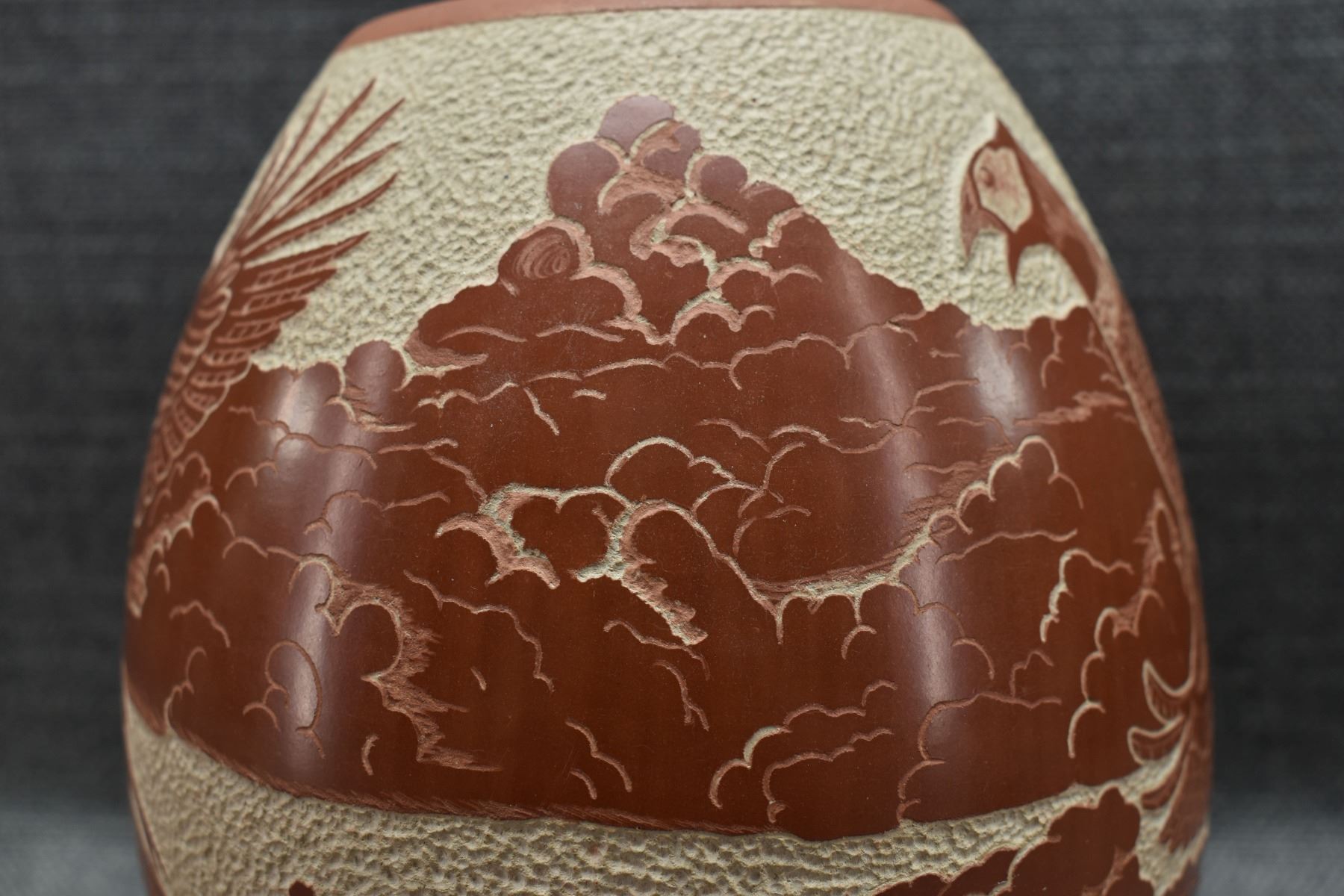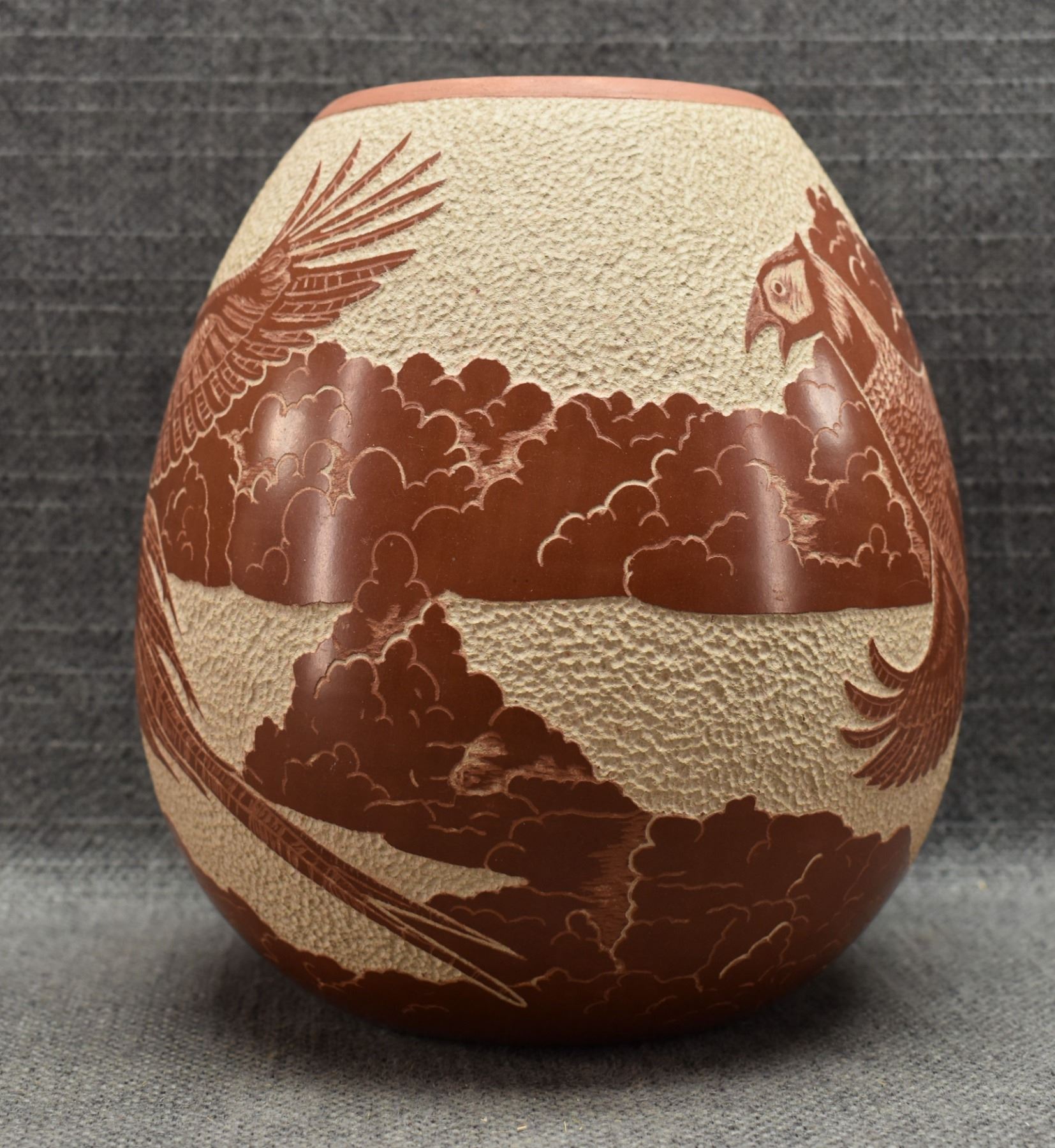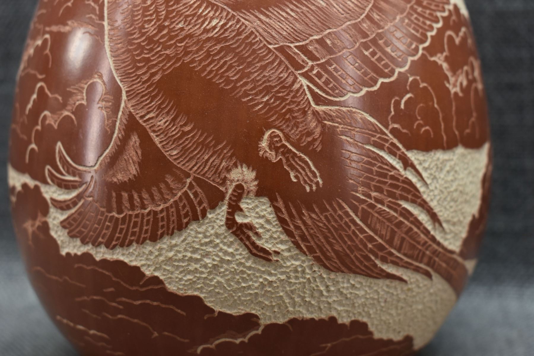 1976 Hopi. Hand coiled and sgraffito design signed Thomas Polacca. 6.5'' x 6''