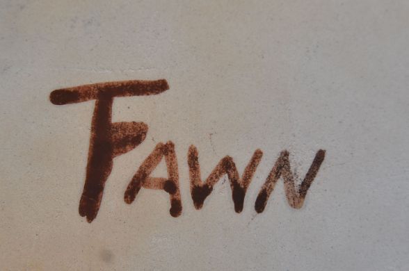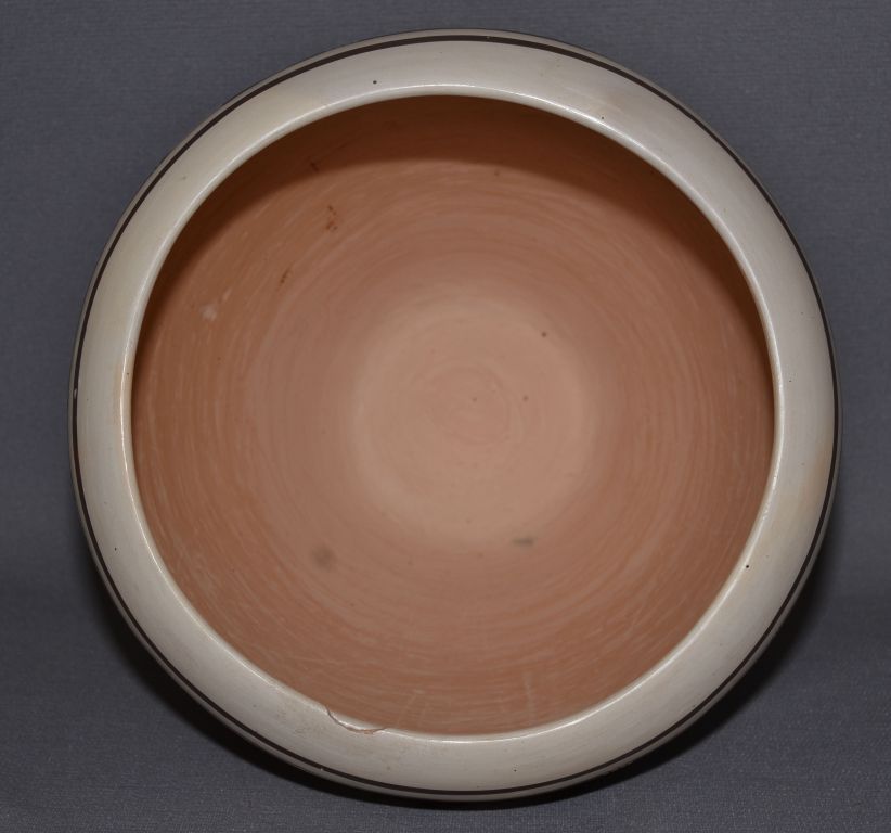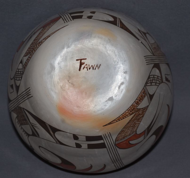 1970s 80s polychrome geometric design has minor paint rubs chip on rim signed Fawn 8.5"x 8.5"