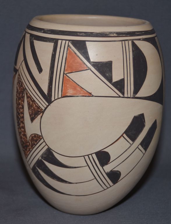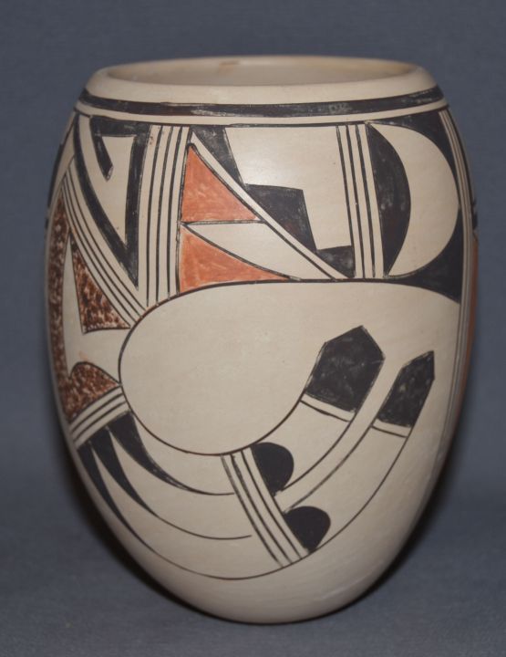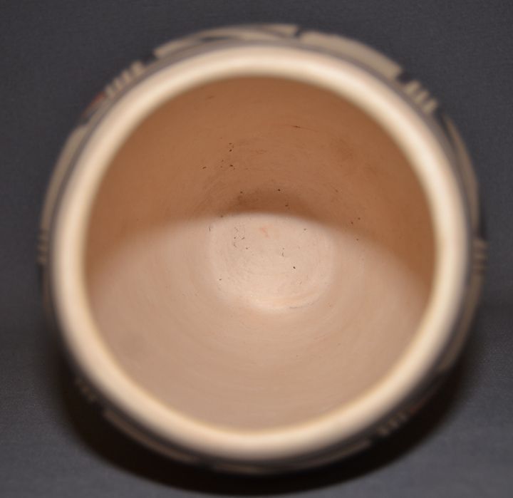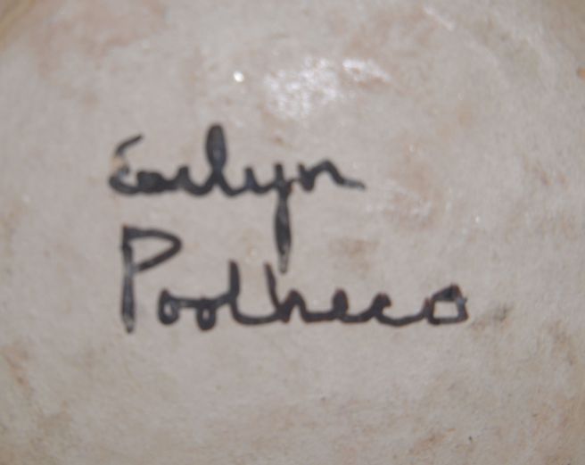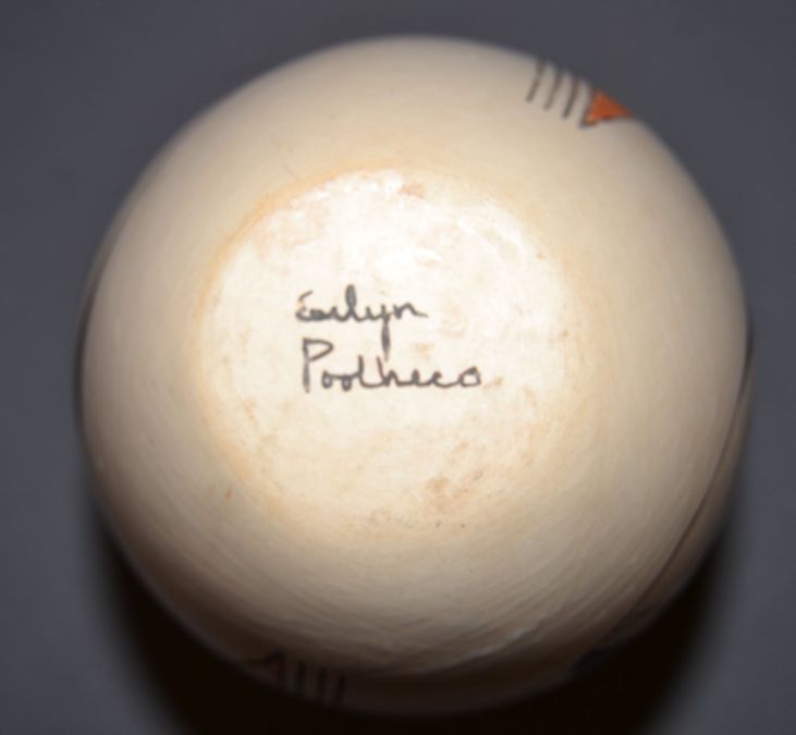 1970s polychrome bird design, signed Evelyn Poolheco, 6.5" x 4.5"