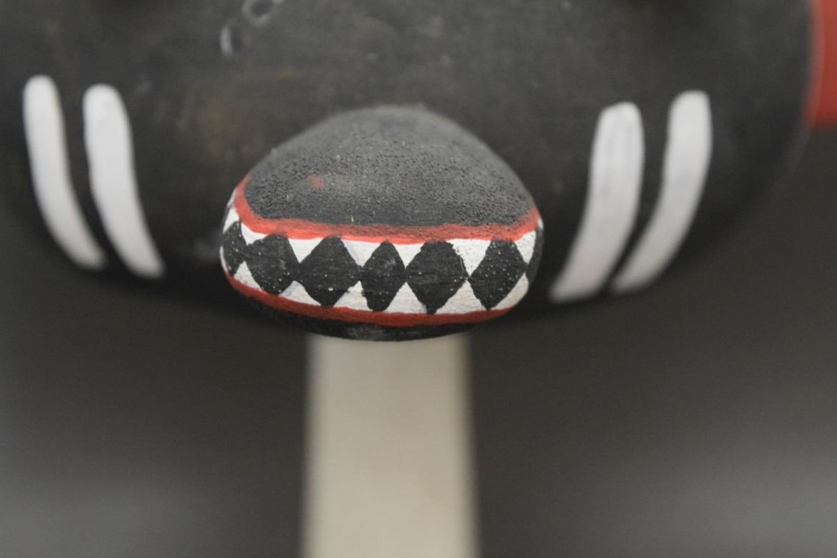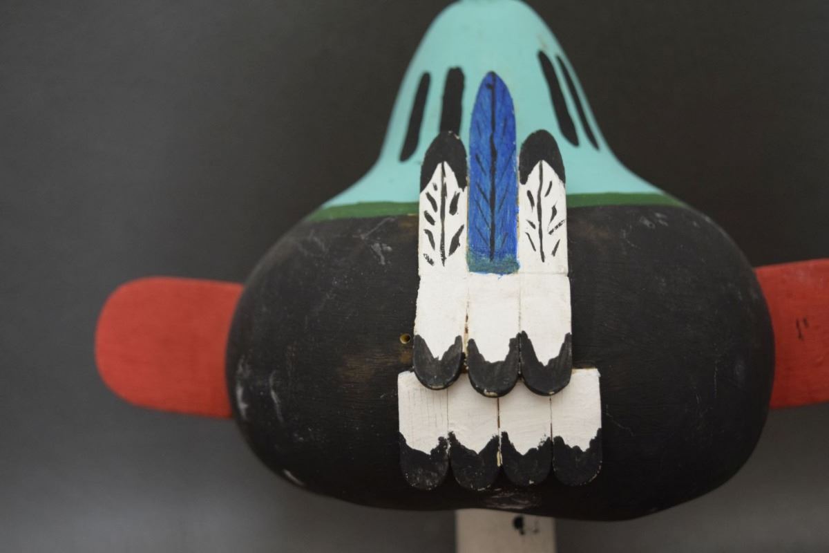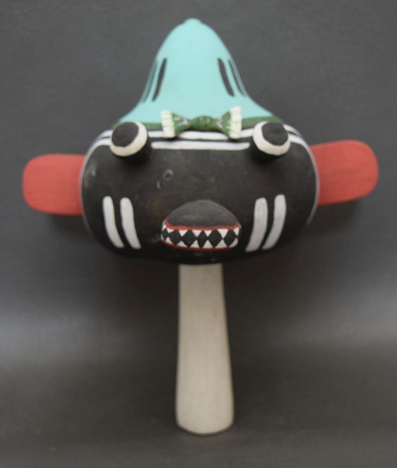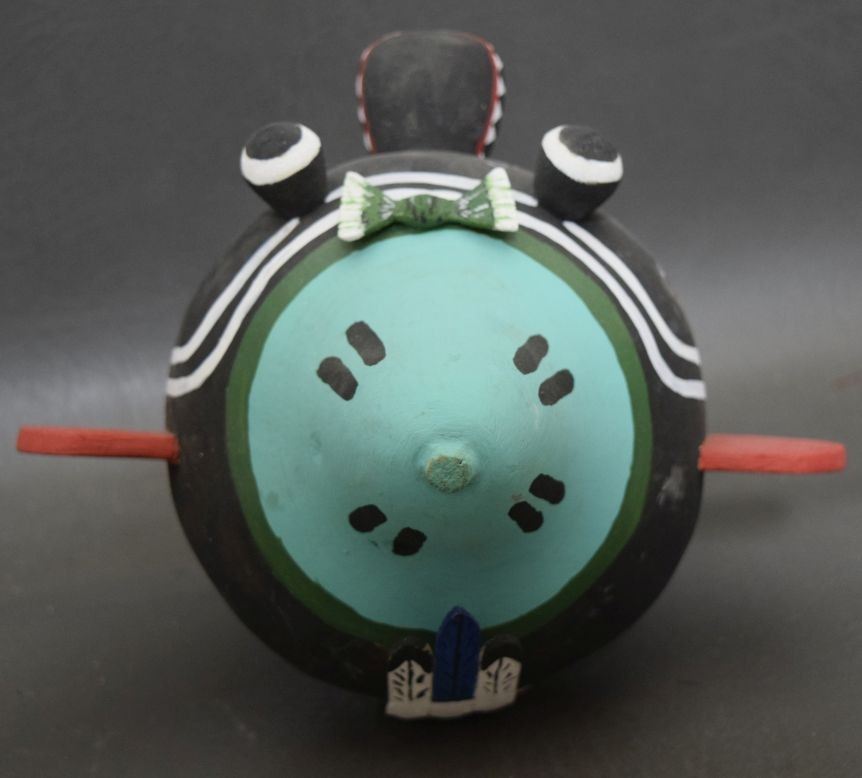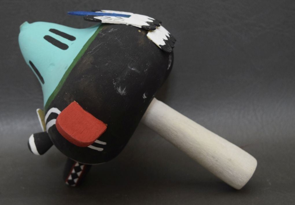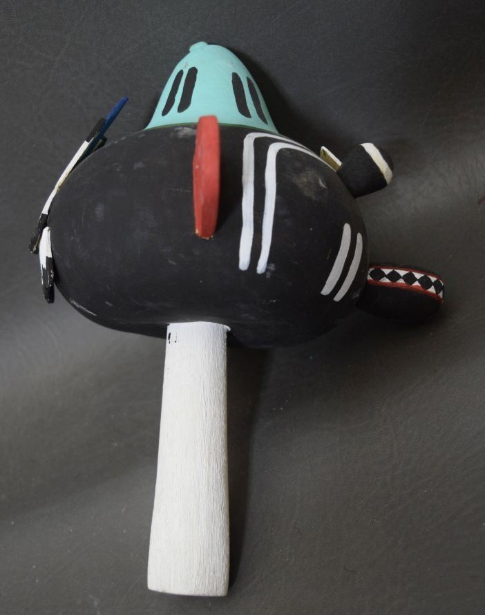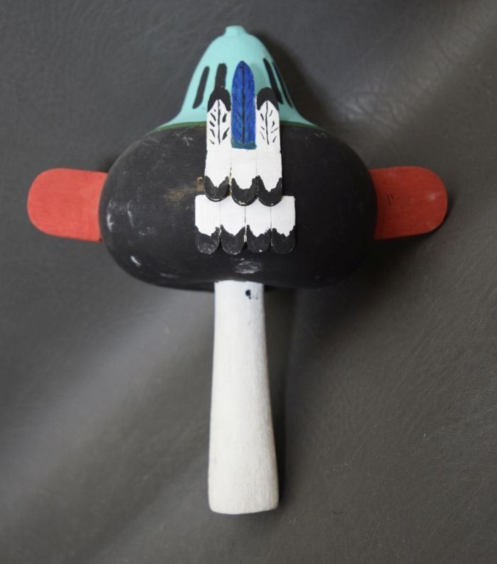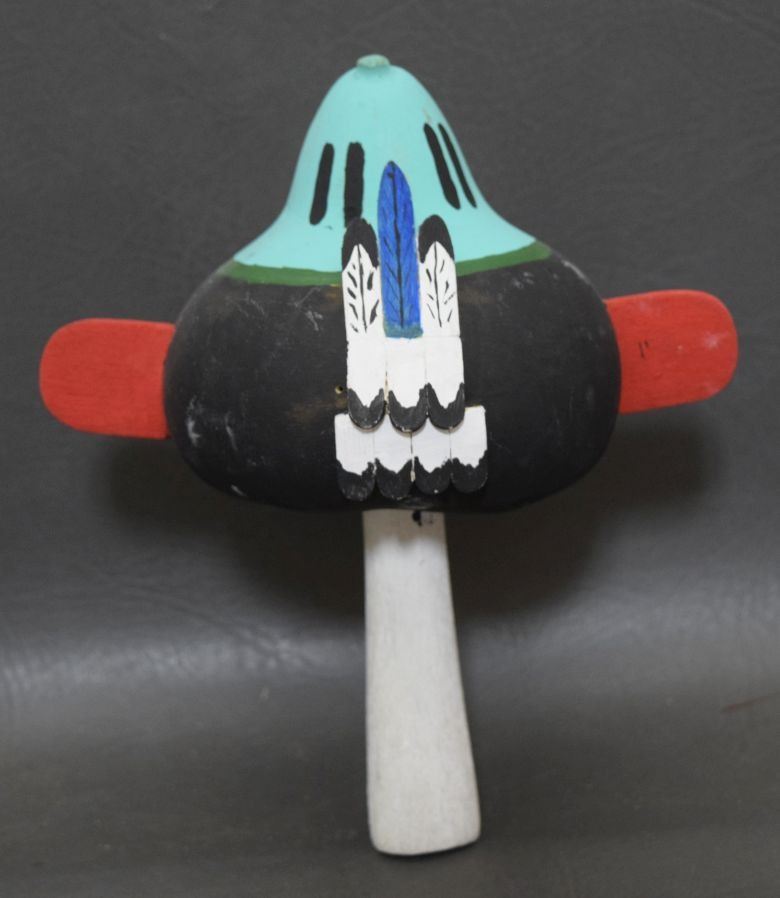 1980's from second mesa hand made and painted gourd rattle by Byron Koutsuatewa. 9'' x 6'' x 7''