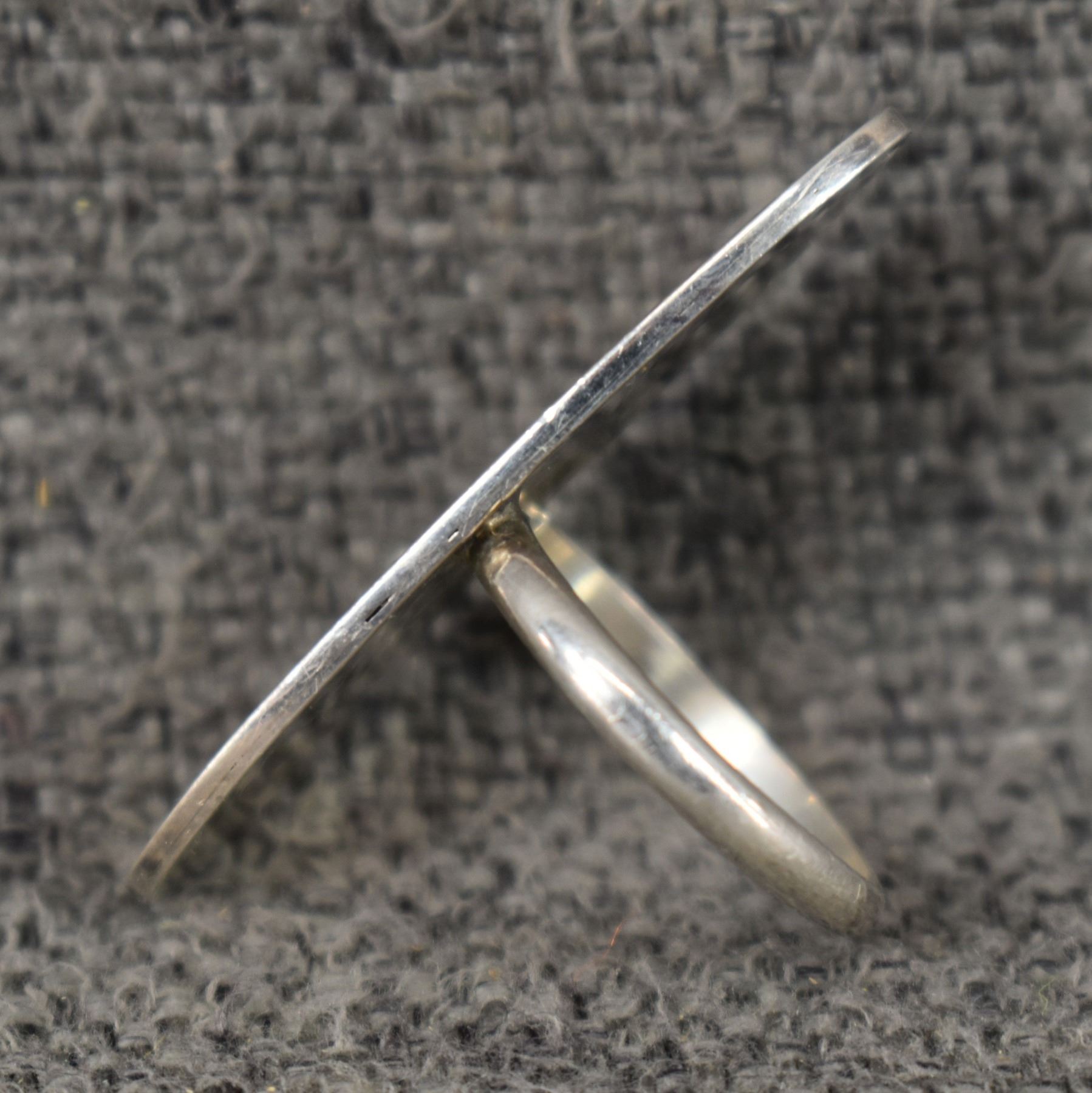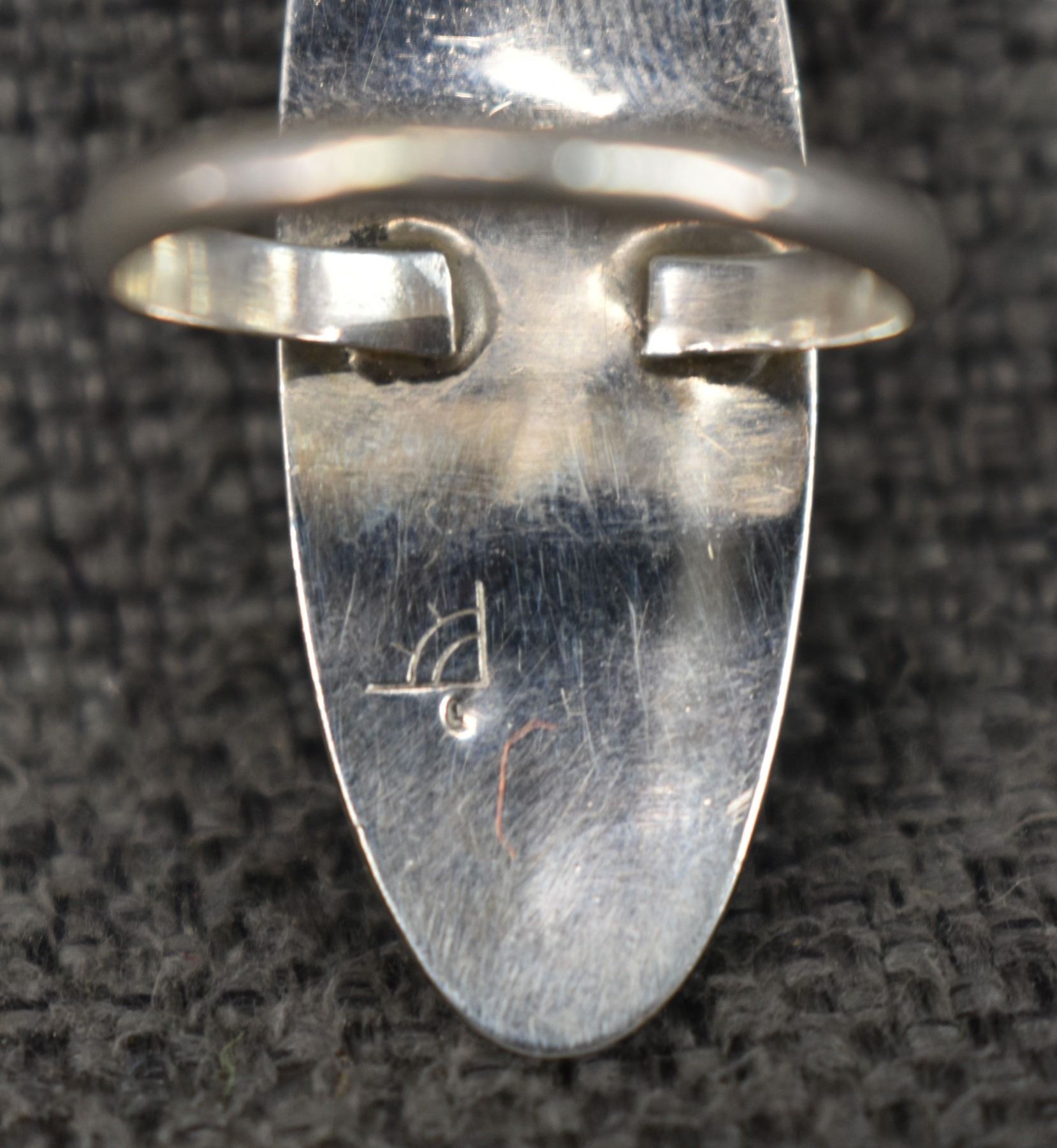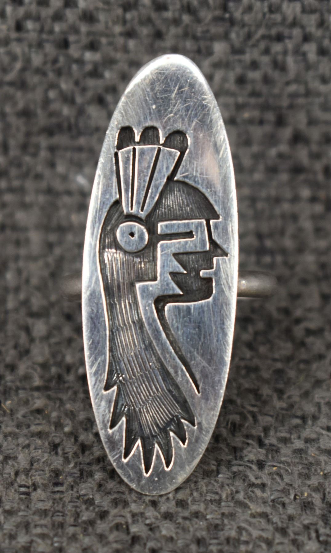 1990's Hopi Stearling silver with cut out design stamped with sun hallmark for Clifton Mowa. 1.5" x .5" size 8.5, 6 grams