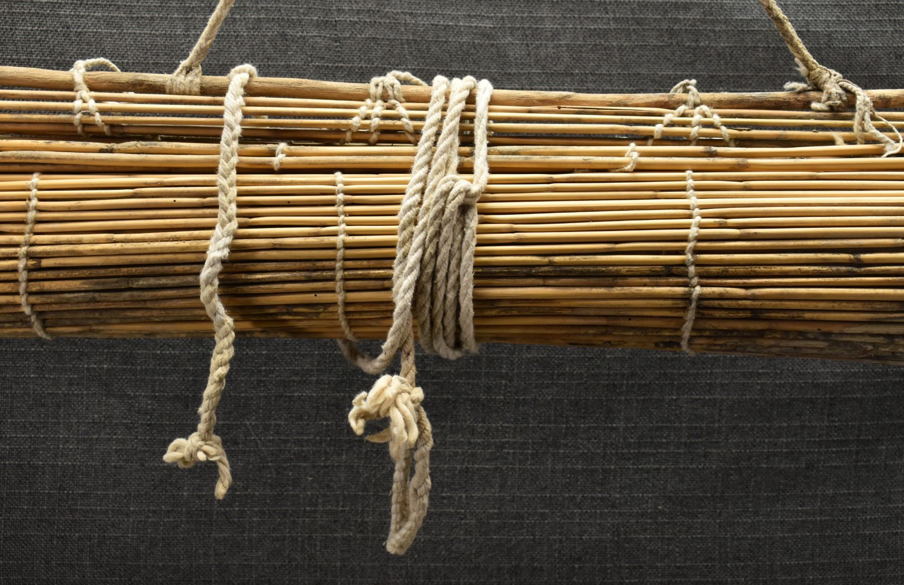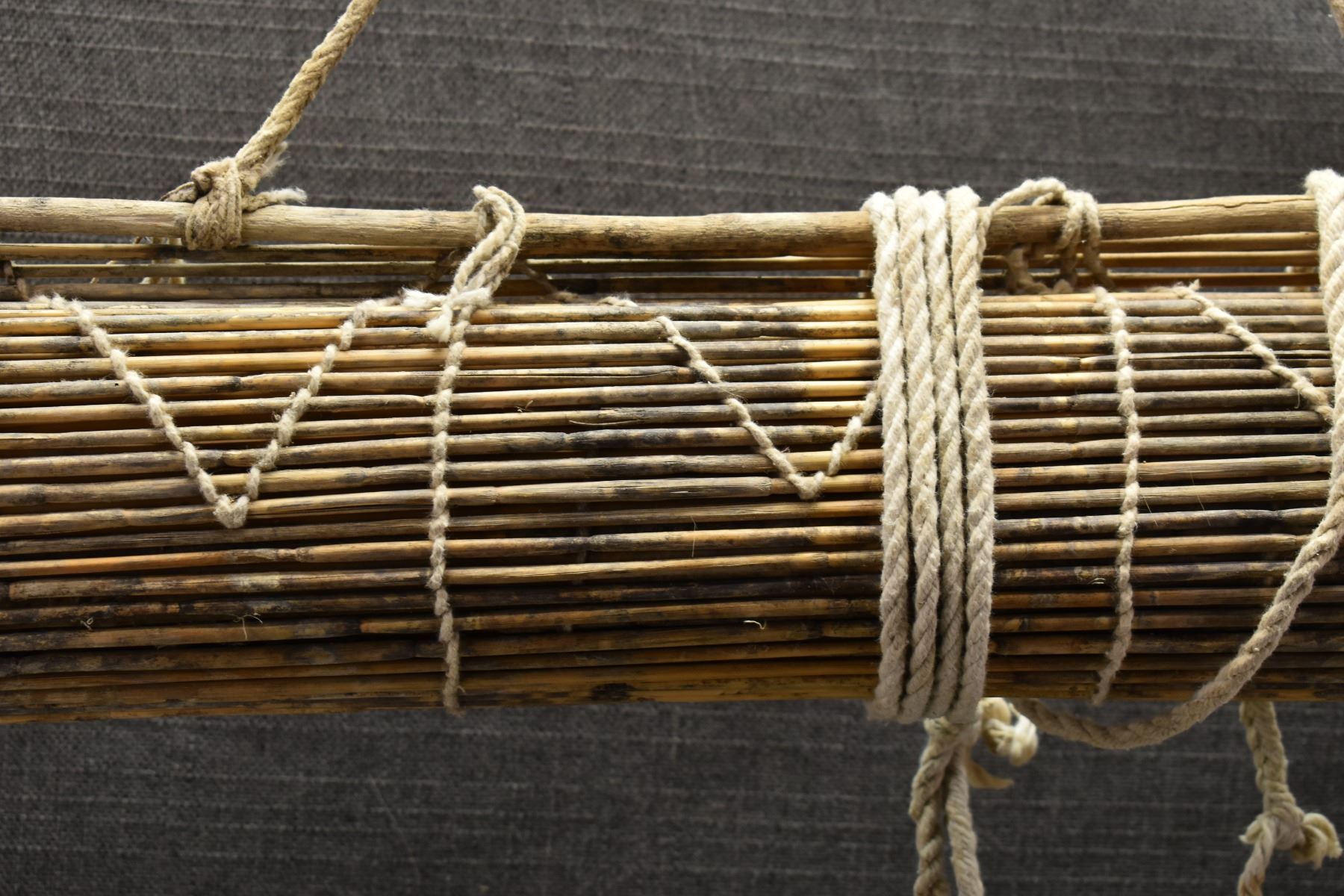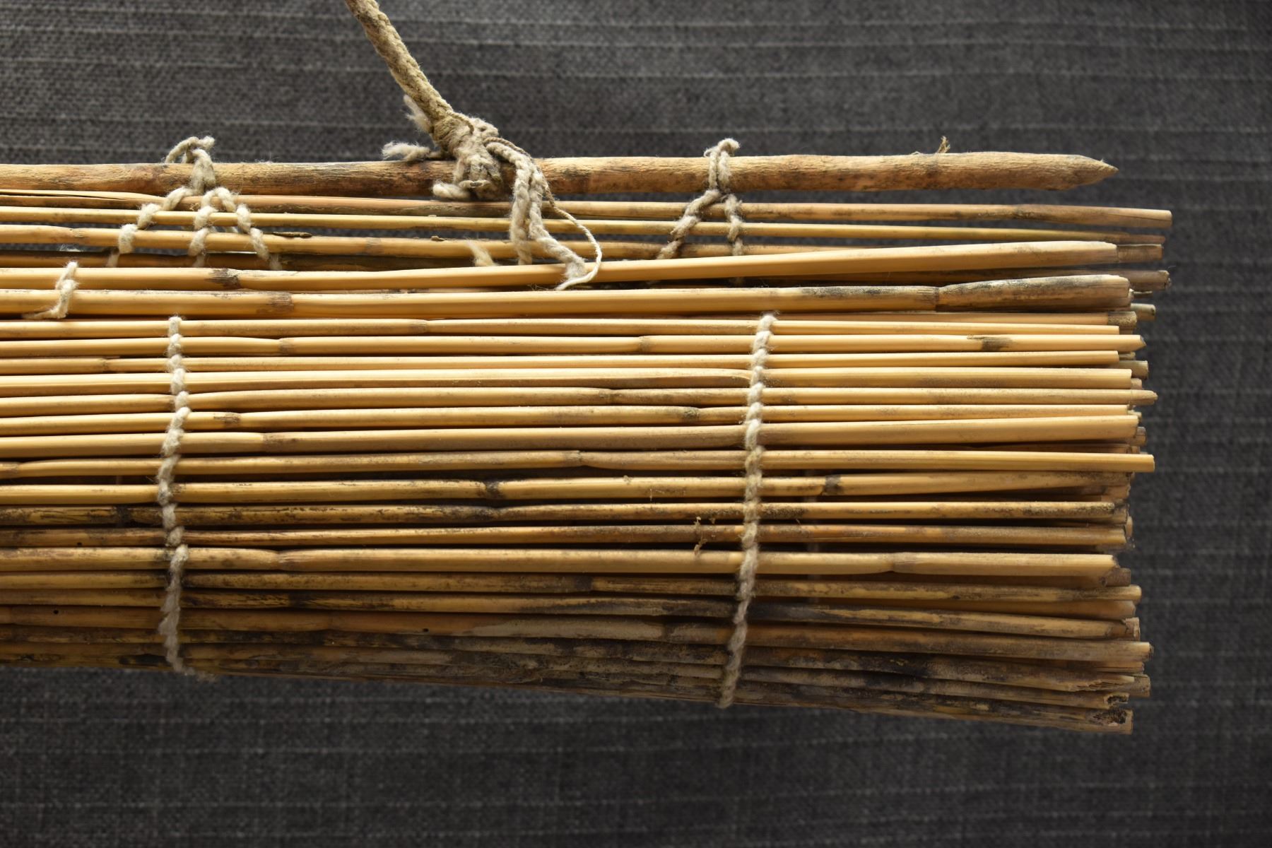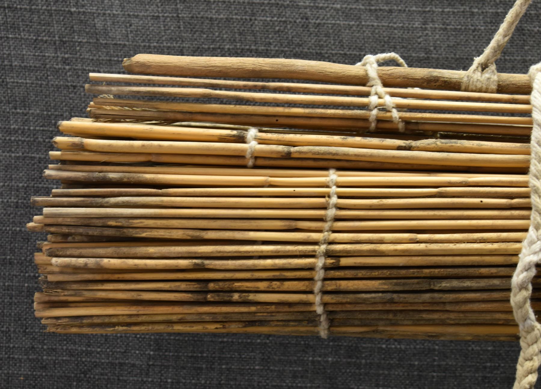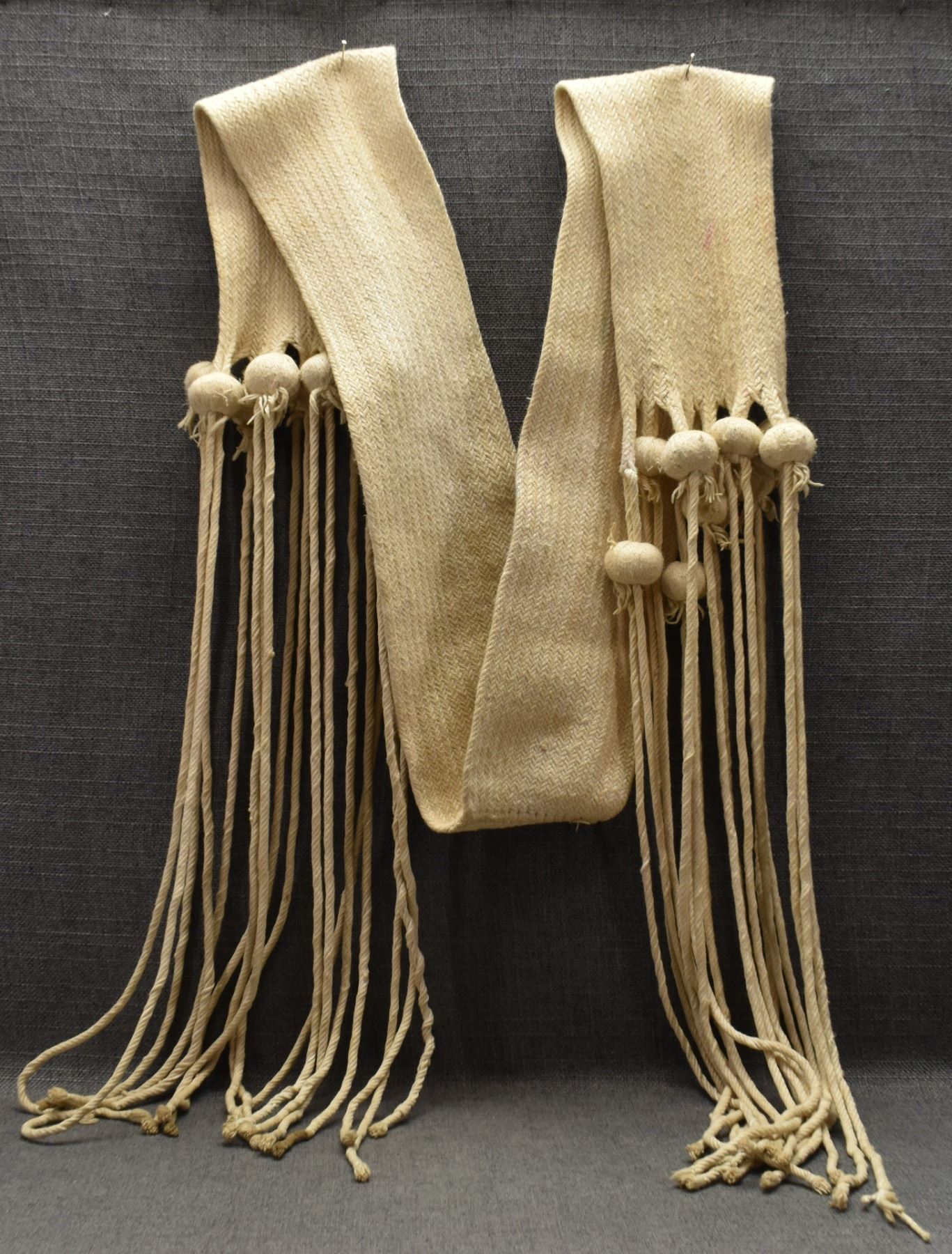 1930's Hopi. Hand woven blanket 34'' x 48'' reed suite case 58'' x 29'' sash 5'' x 100''