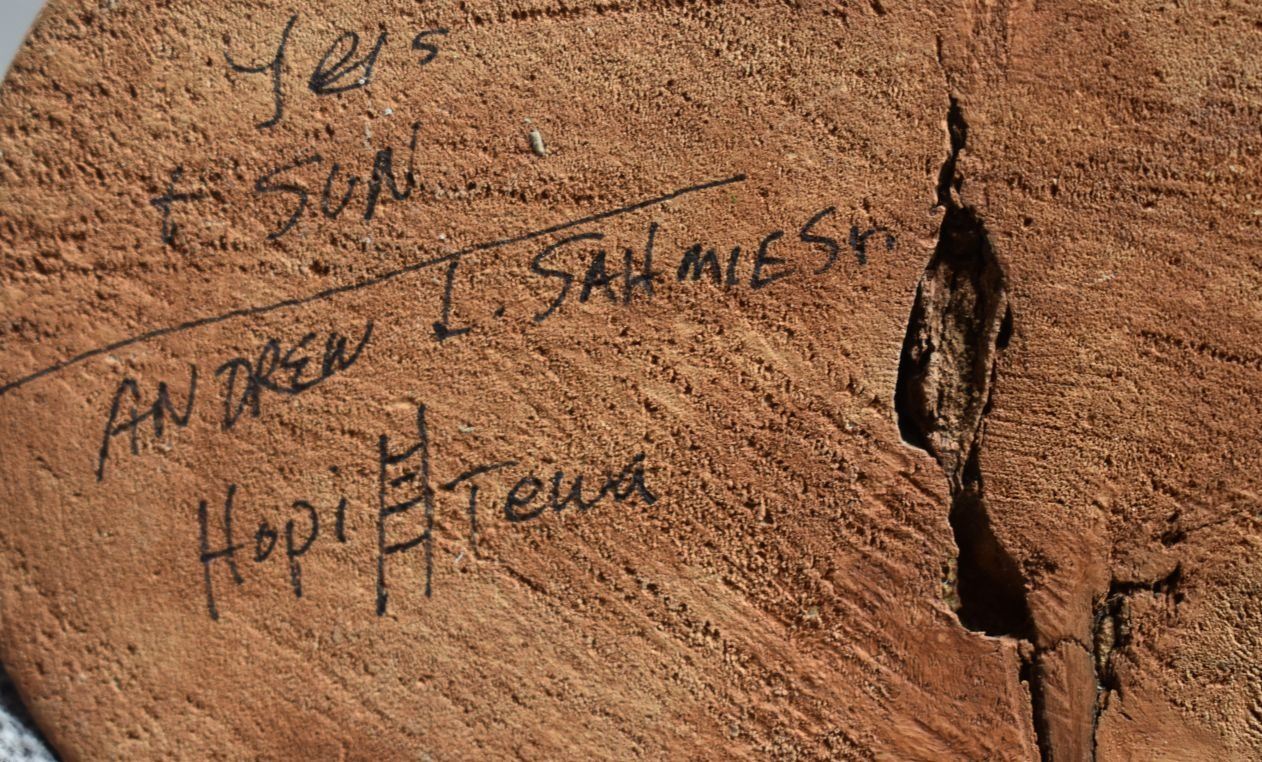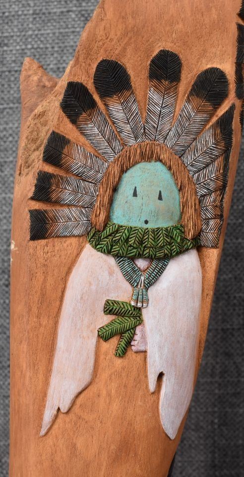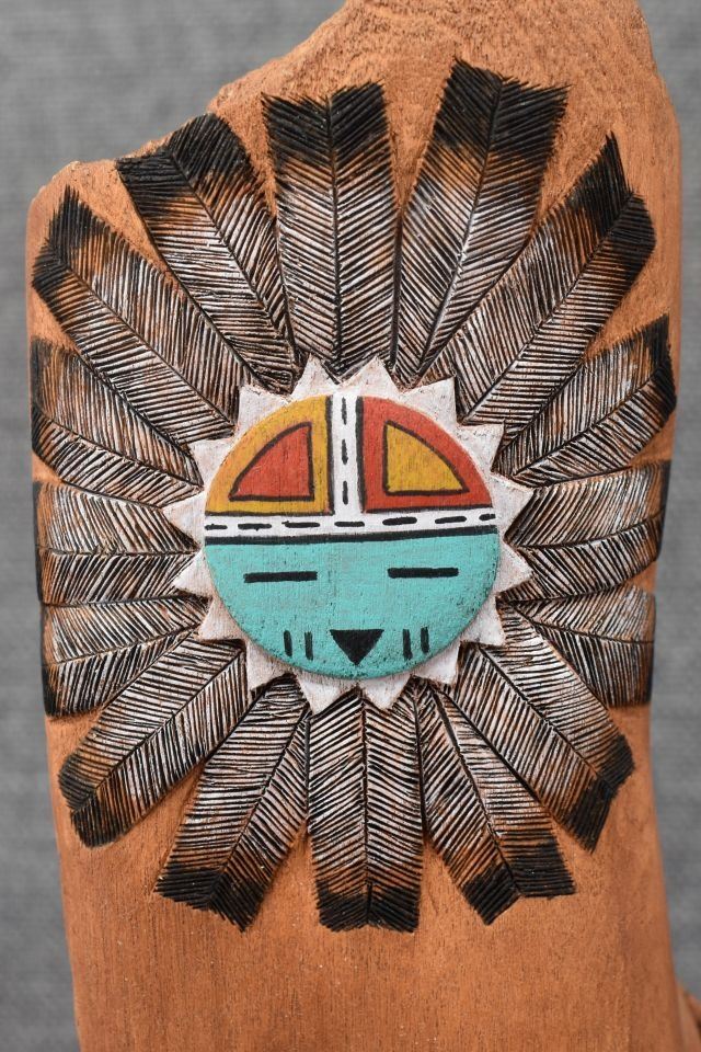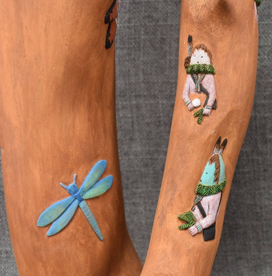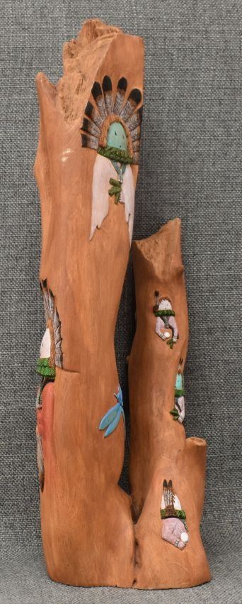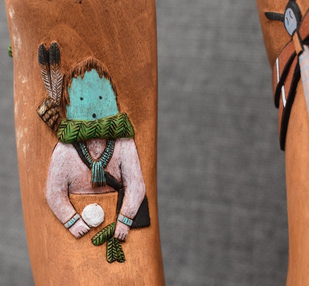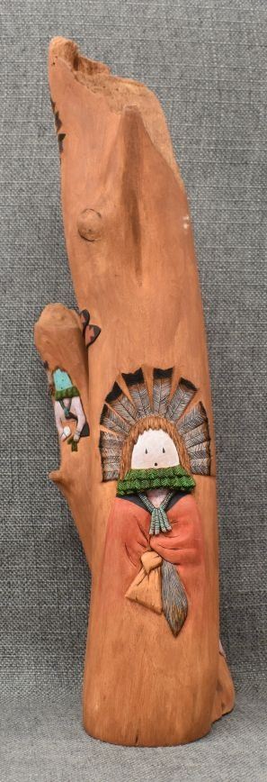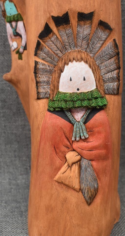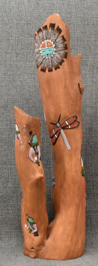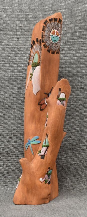 1980-90's Hopi, carved and painted cottonwood depicting various kachinas and insects titled " Suns and Yei's" by Andrew l Sahmie Sr 16.5" x 4.75"