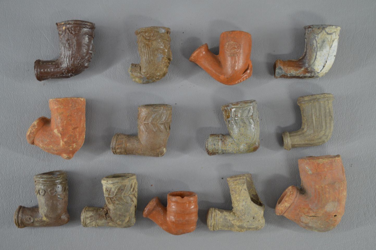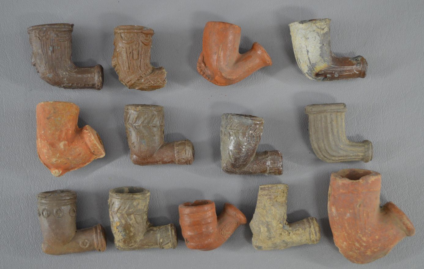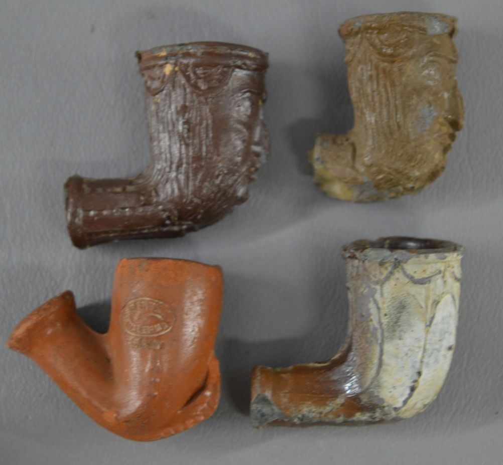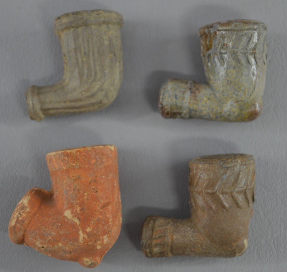 antique Hudson Bay trade pottery pipe bowls, 1.5'' x 1.5'' x .75''