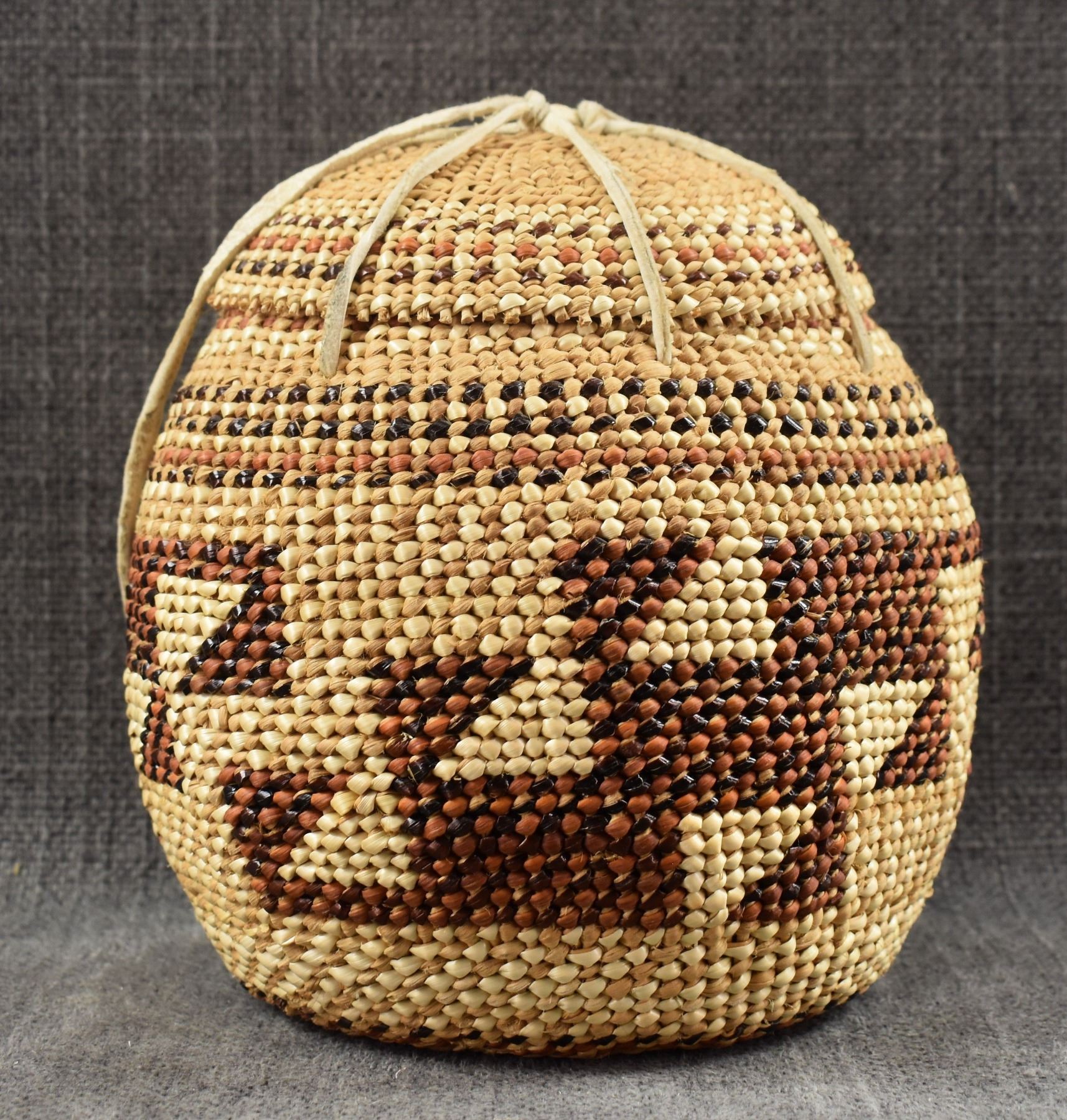 1960's Hupa. Hand woven Tobacco Basket. 5.5'' x 5.5''