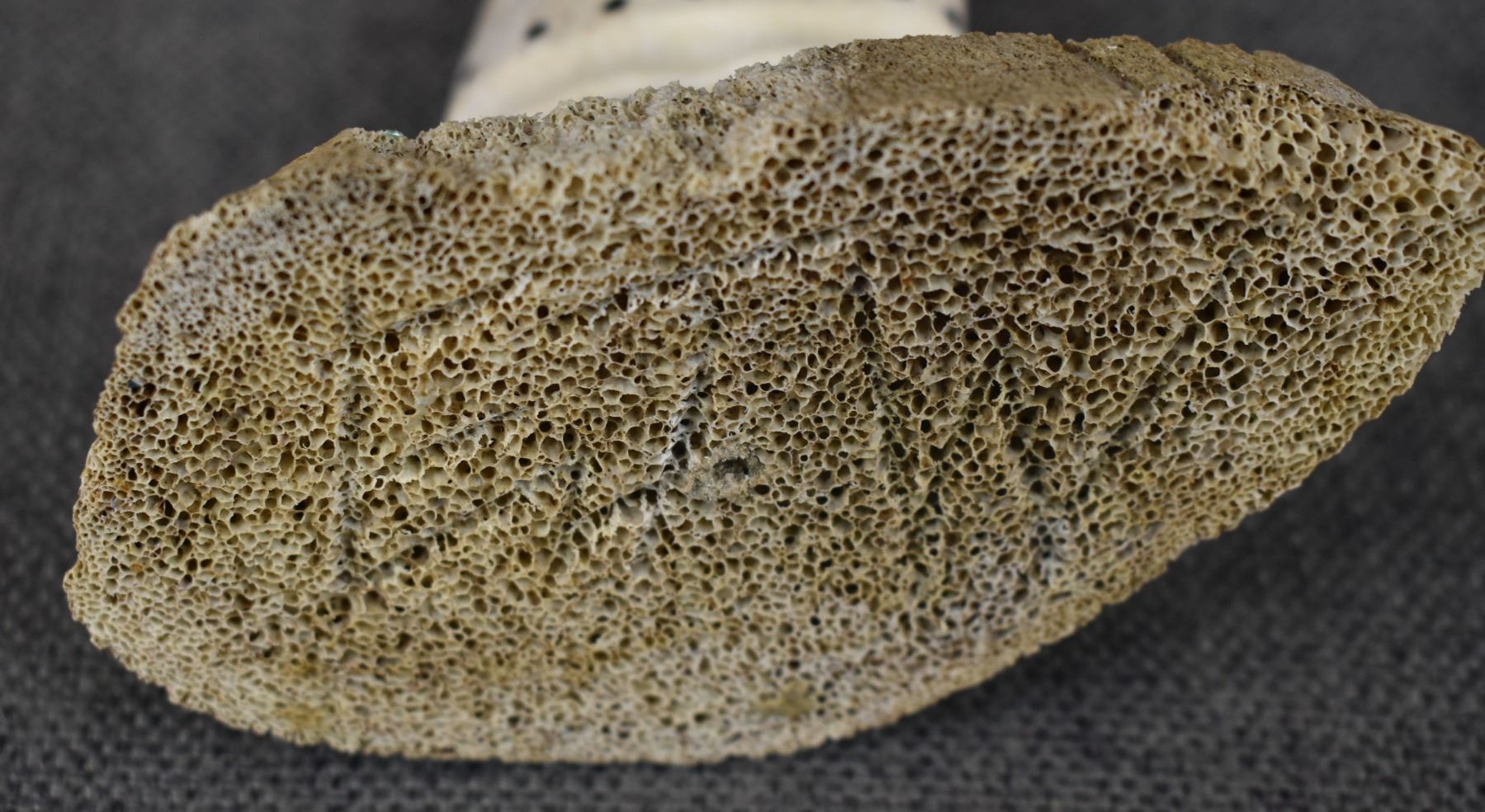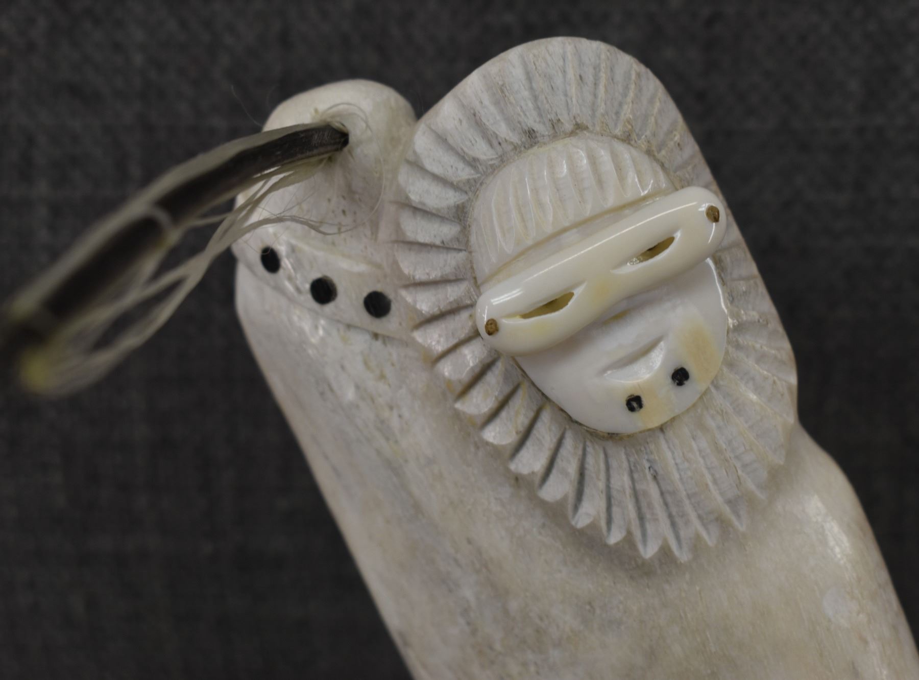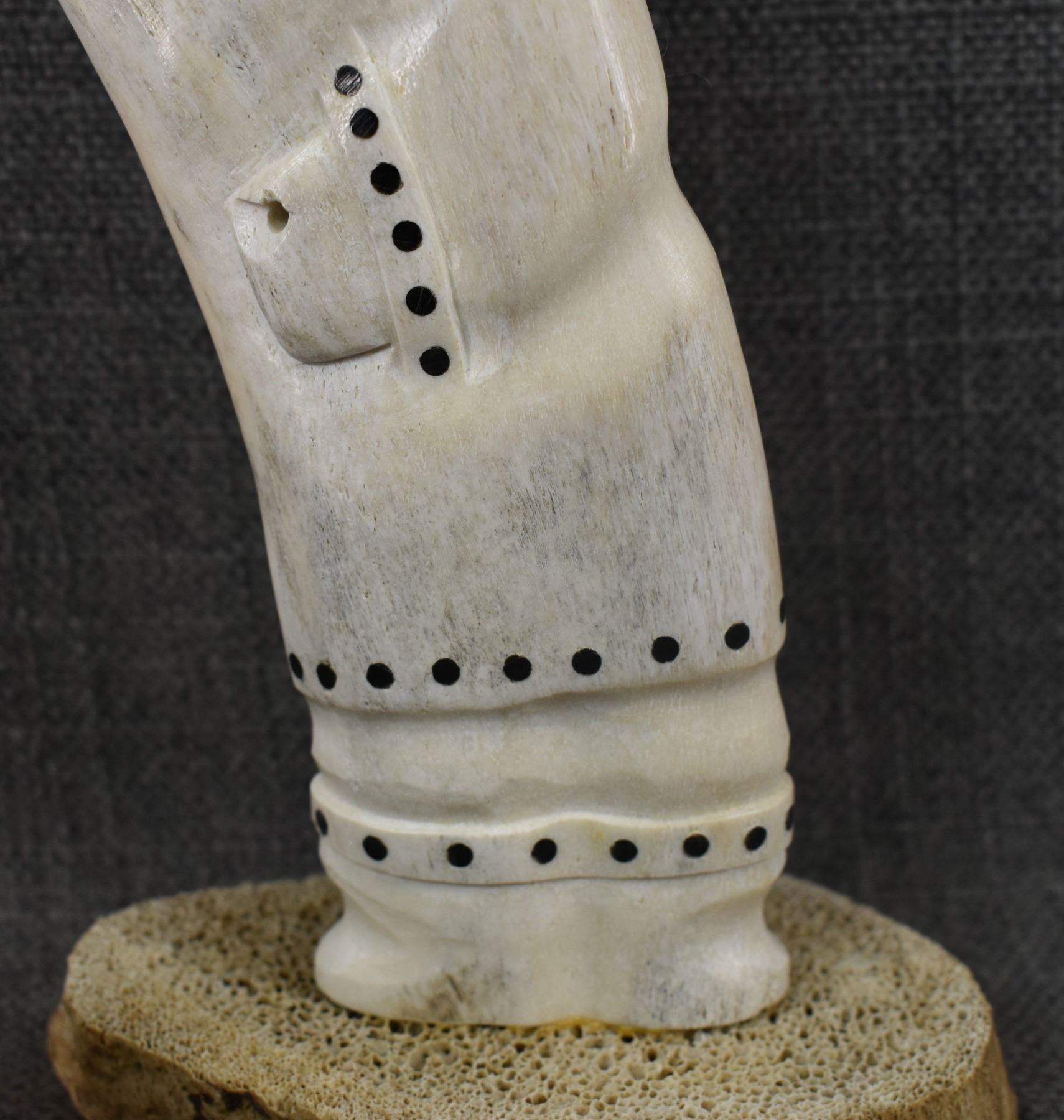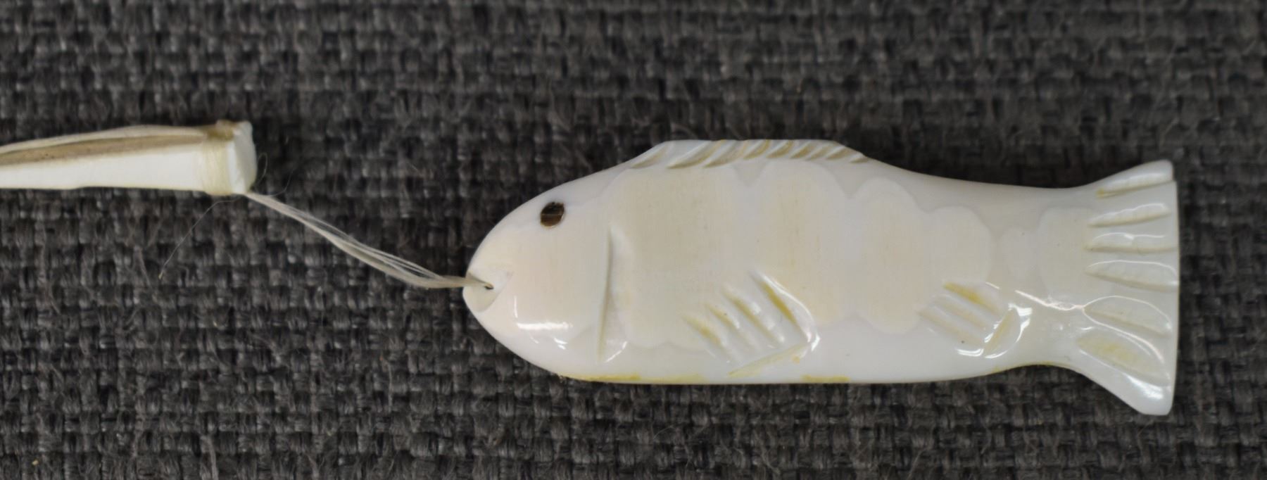 1980's Inuit, carved bone figure with fish signed EIW, 8.5" x 5" x 2.5"