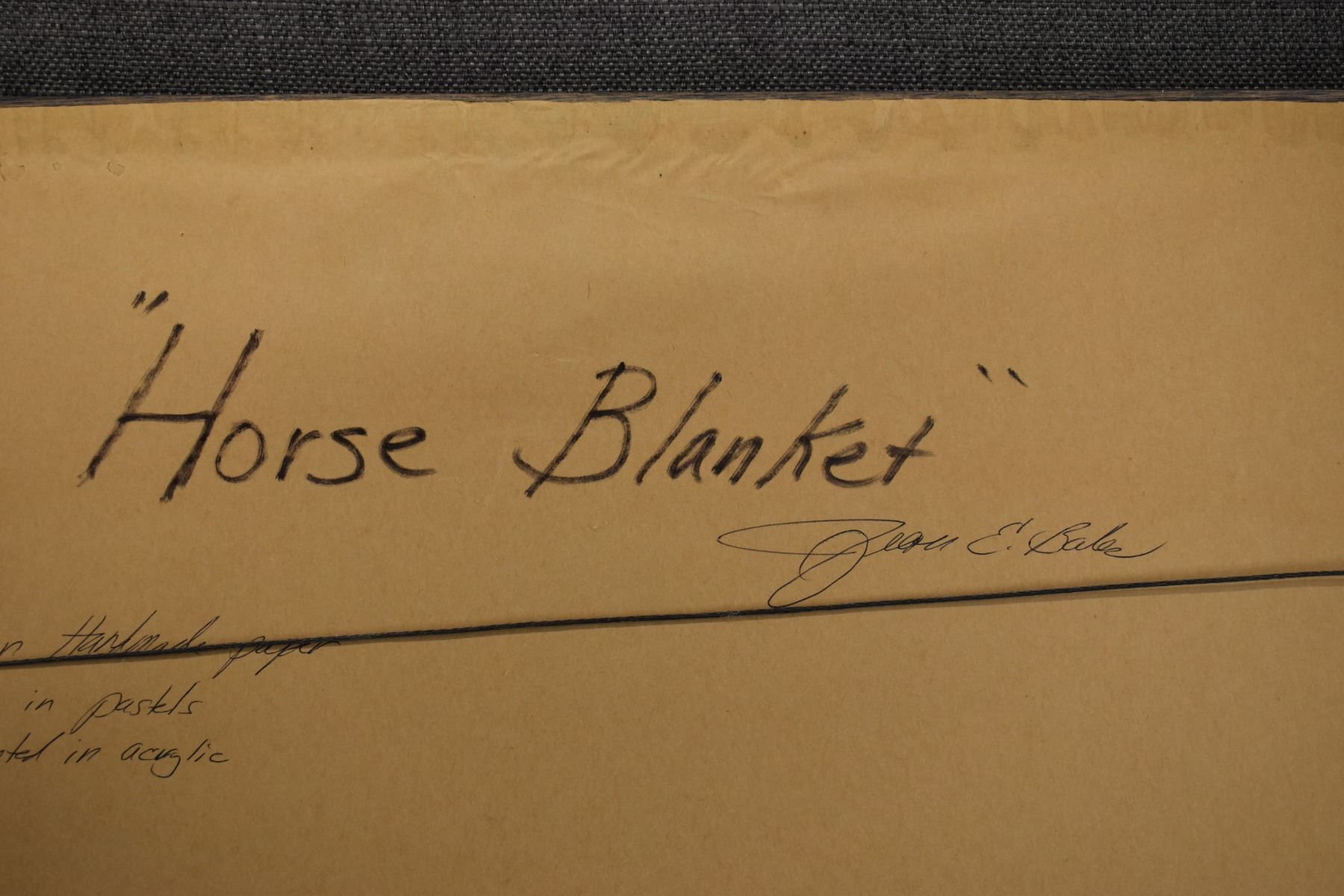 1980's Iowa. Original on hand made paper titled "Horse Blanket" signed Jean B'' x 17'' frame size. 17'' x 25''