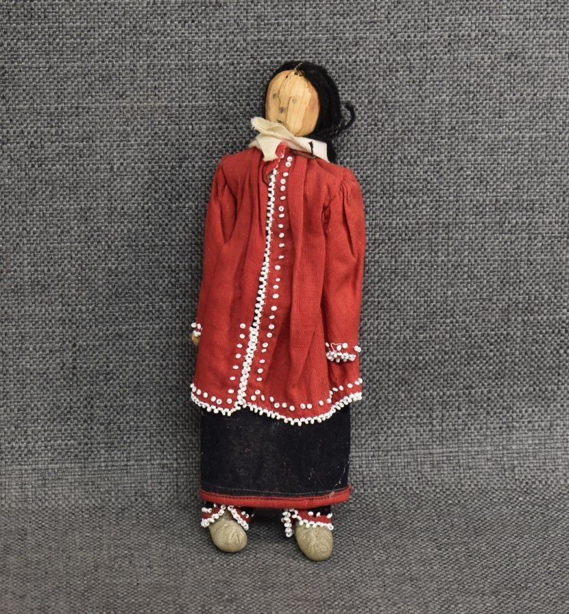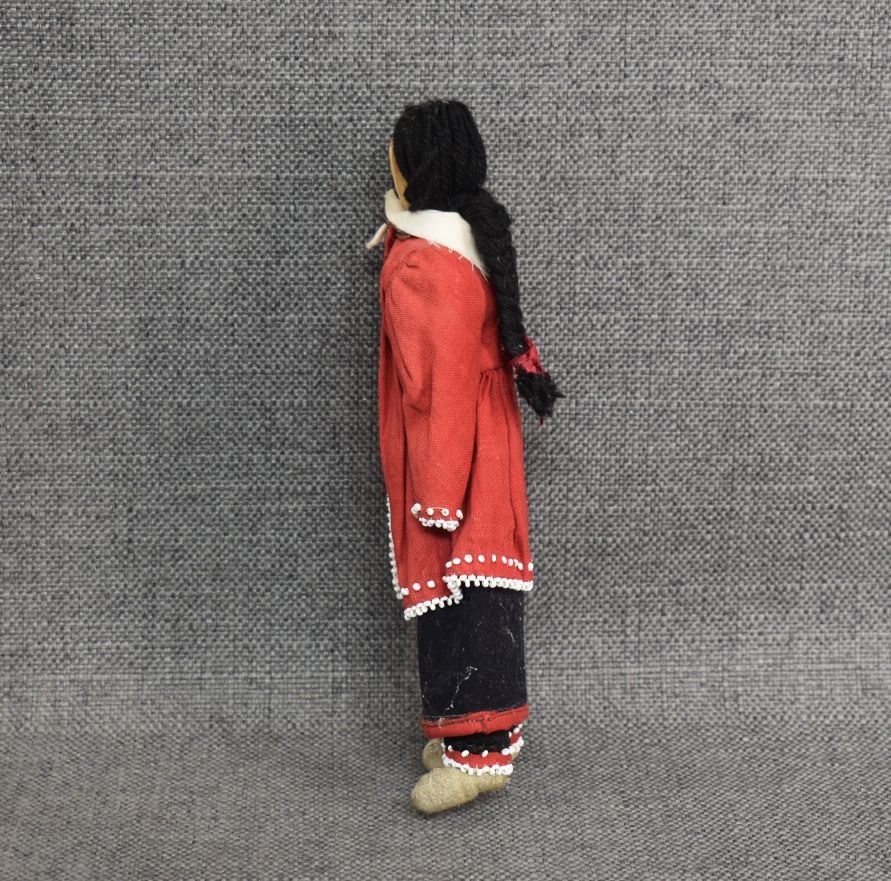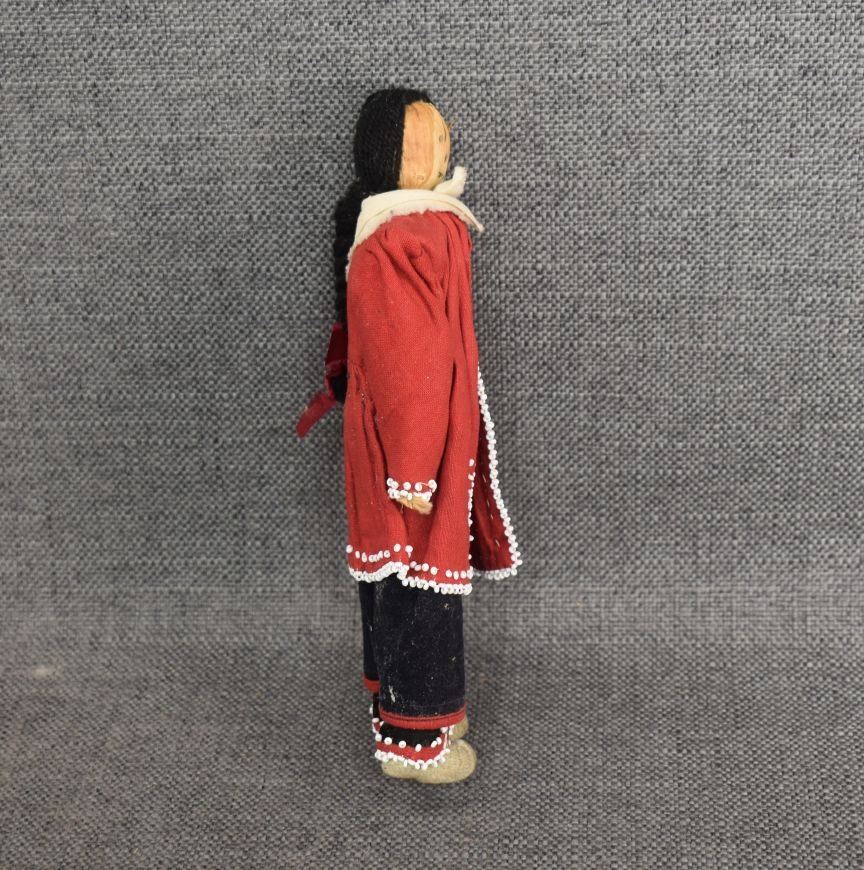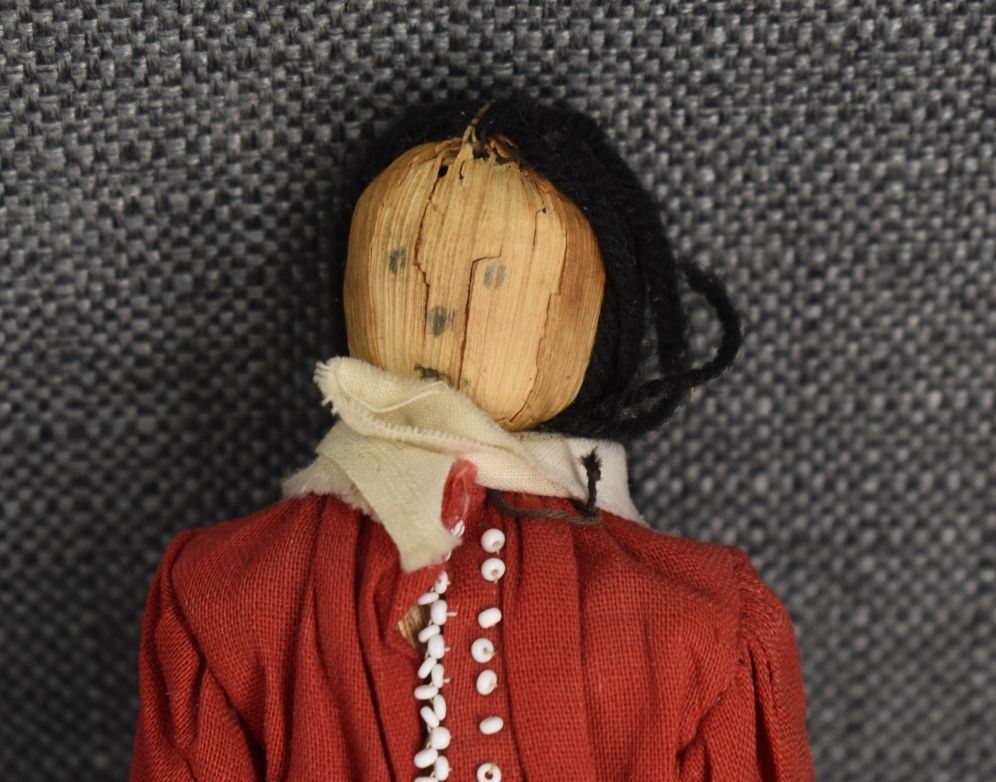 1920-30's Iroquois Indian hand made from corn husk with beaded design on fabric 8.25" tall