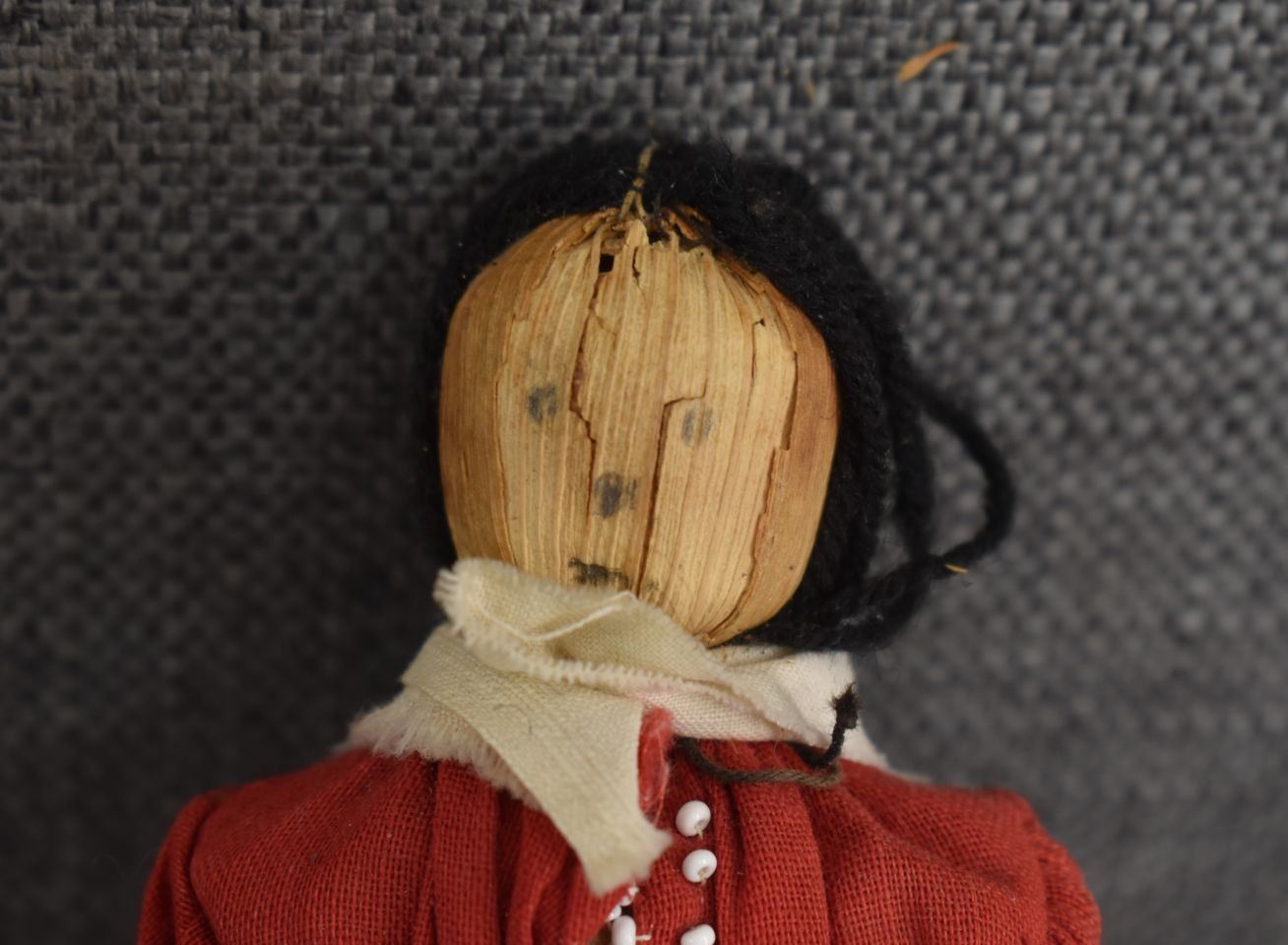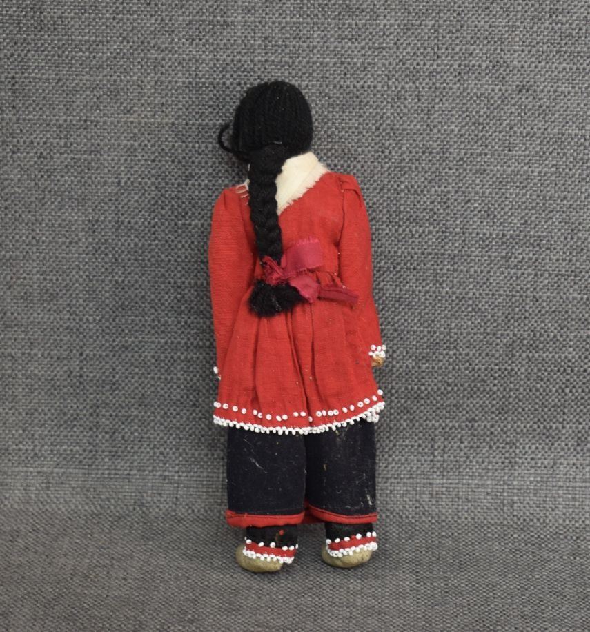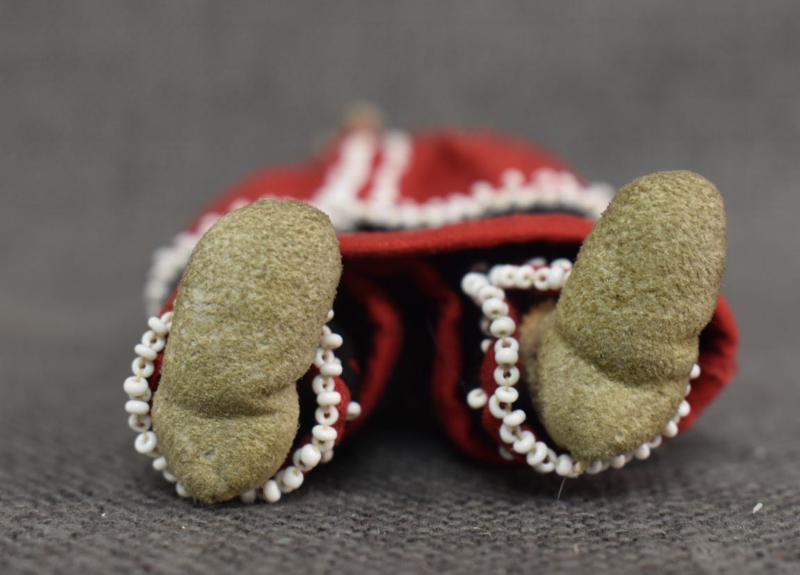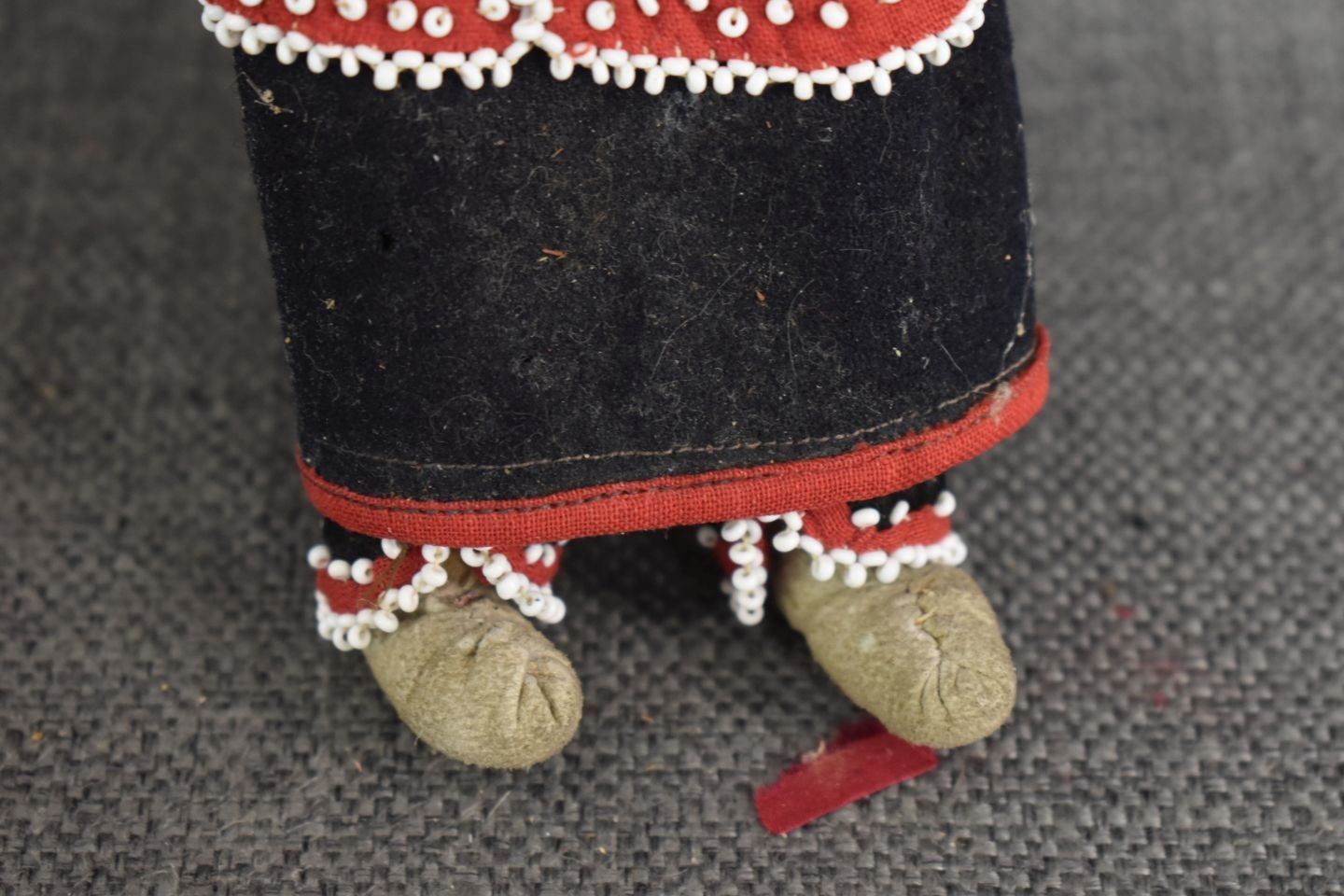 1920-30's Iroquois Indian hand made from corn husk with beaded design on fabric 8.25" tall