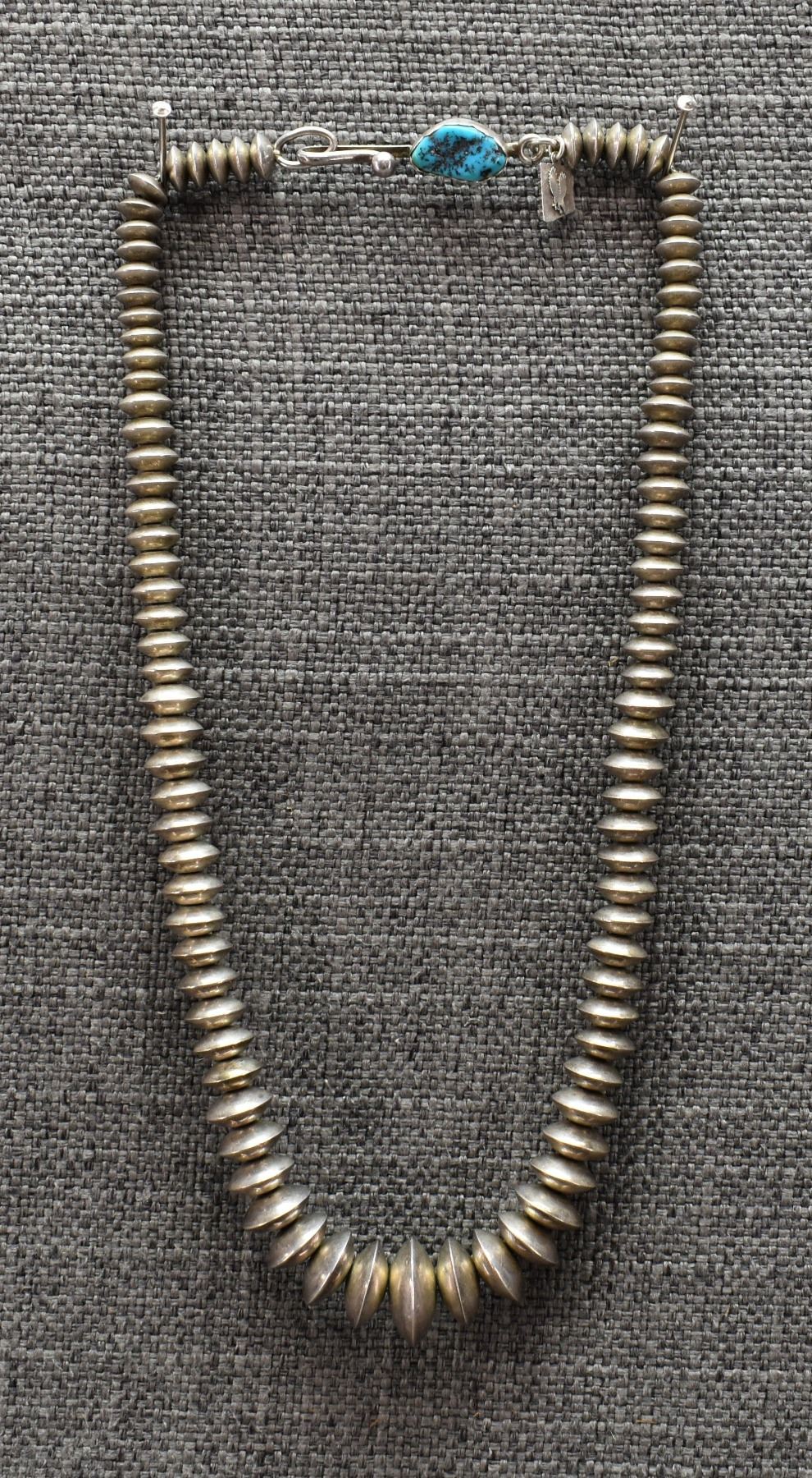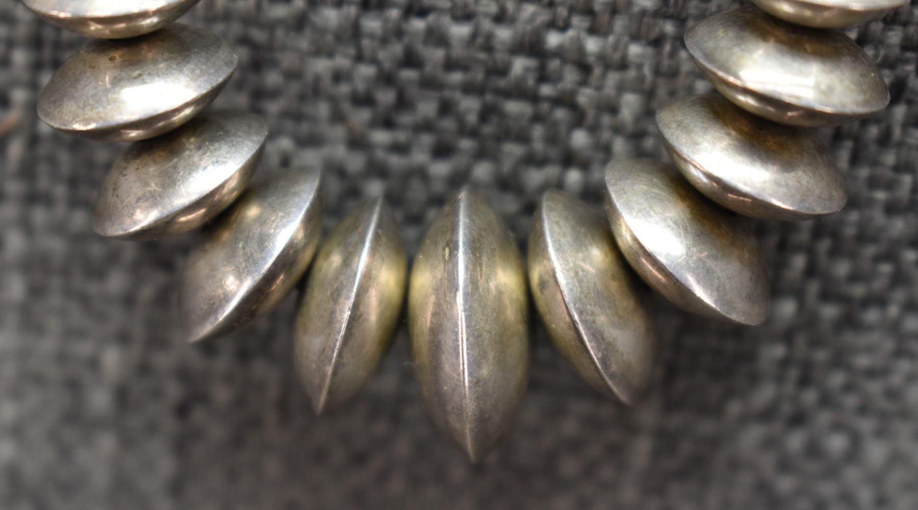 1990's Isleta, sterling silver graduated beads .25"- .75" total length 19", signed Charveze, total weight 69 grams