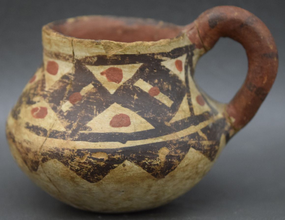 1950's polychrome geometric design has been broken and glued 2.5'' x 4'' x 3''