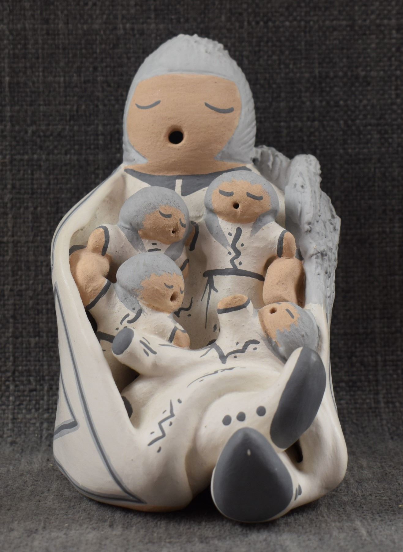 1990's hand coiled and painted depicting story teller and children . Signed C Teller. 8'' x 5'' x 6''