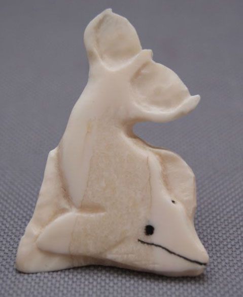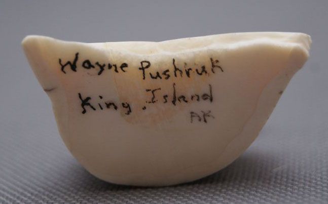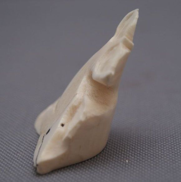 1950s carved whale by Wayne Pushruk, 2" x 1.5"
