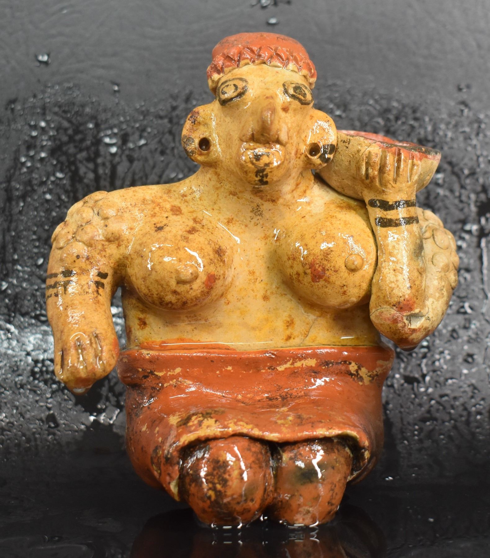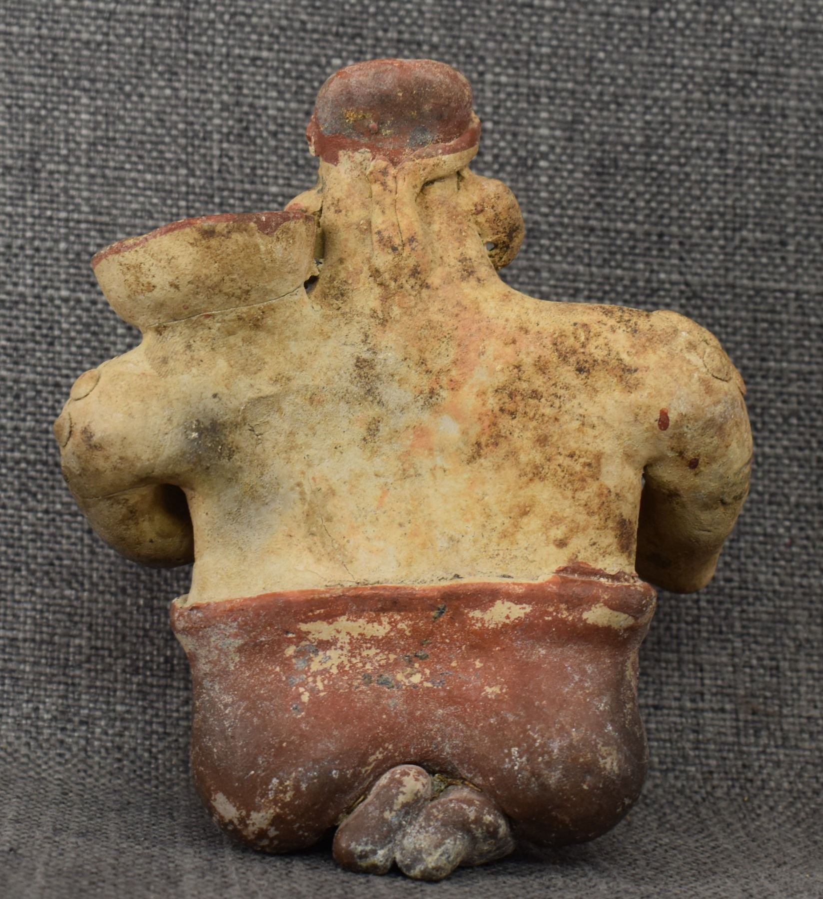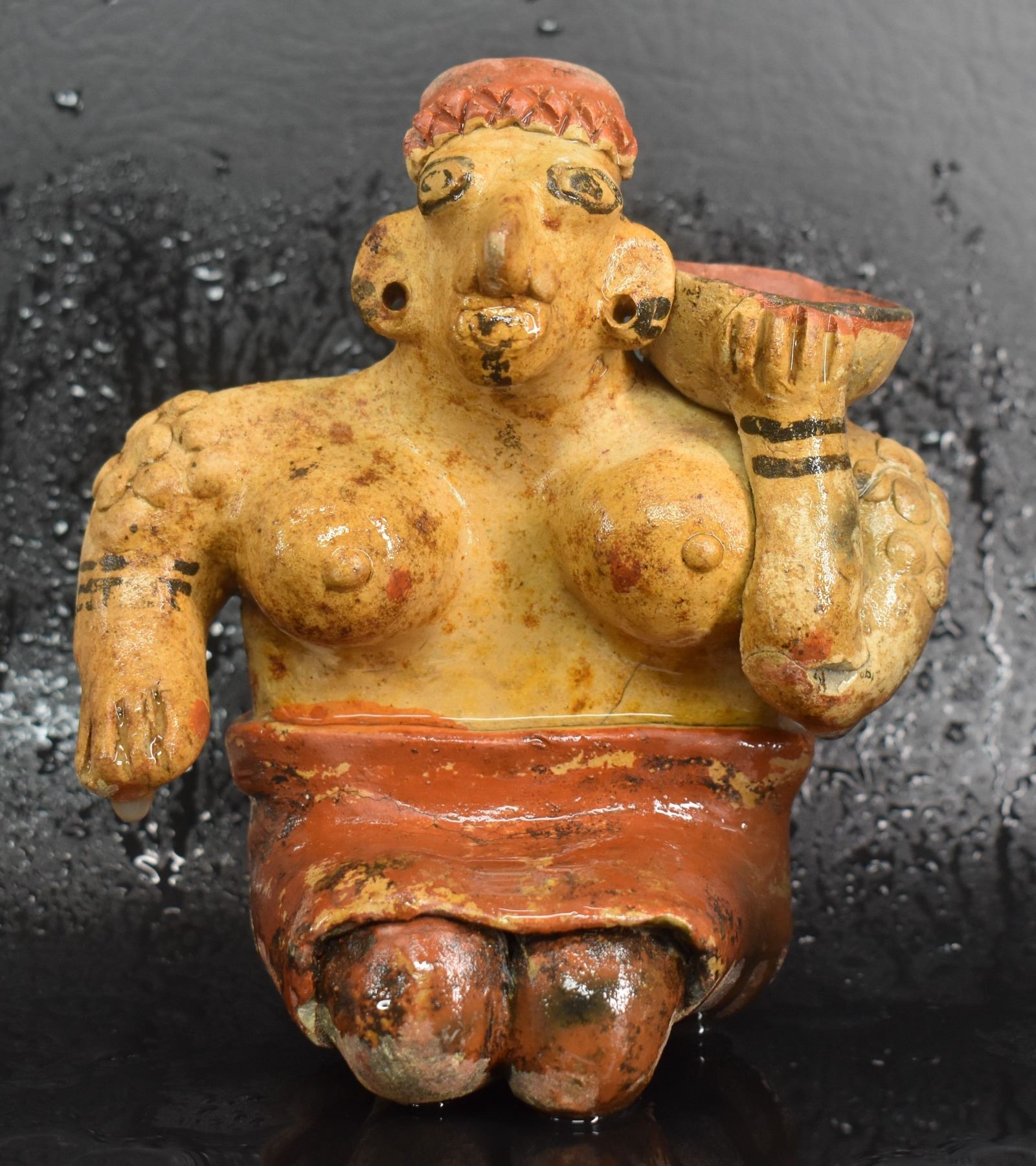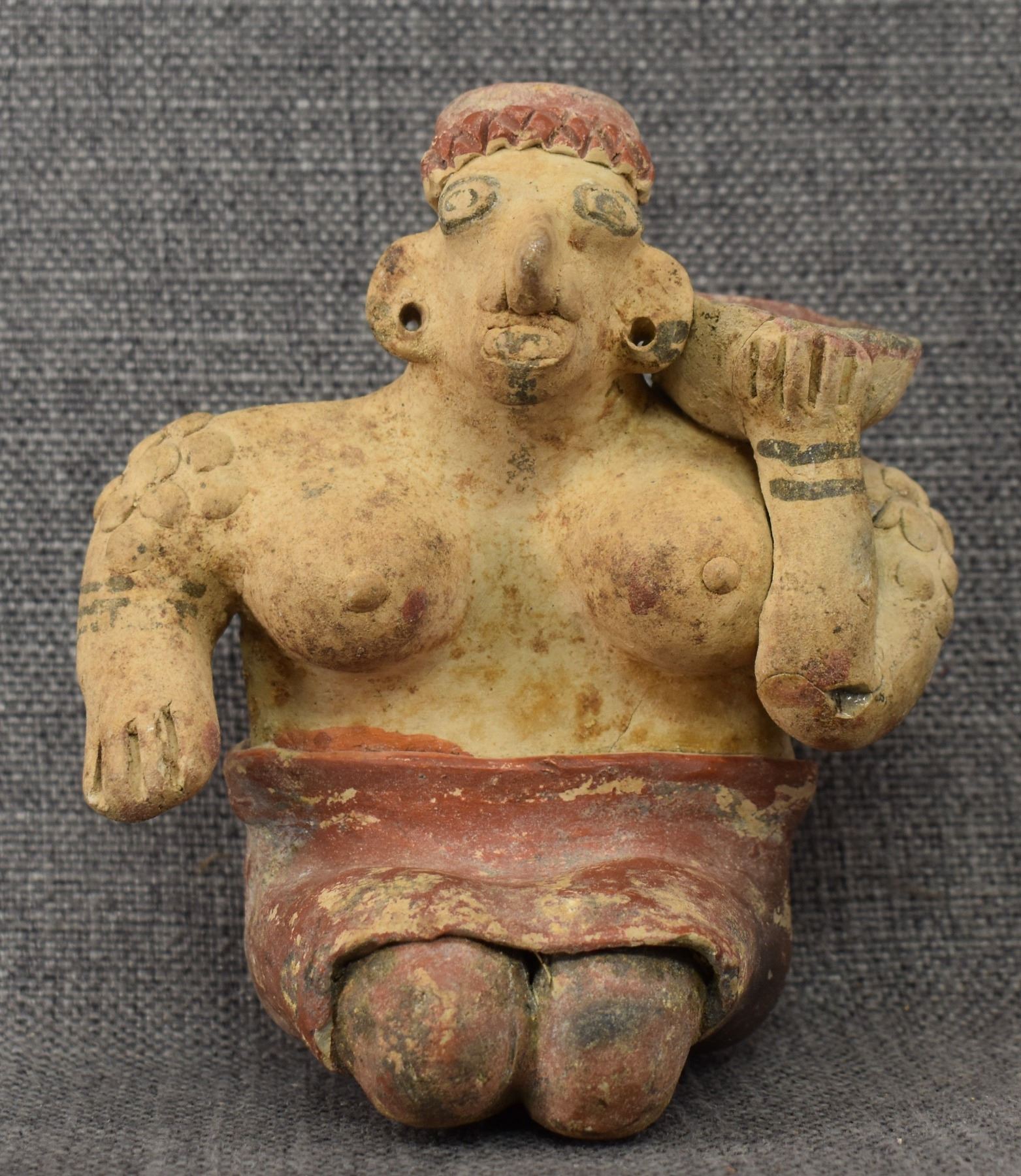 100 BC- 250 AD. Jalisco kneeling female pottery figure. 6'' x 5'' x 2.5'' Broken and glued