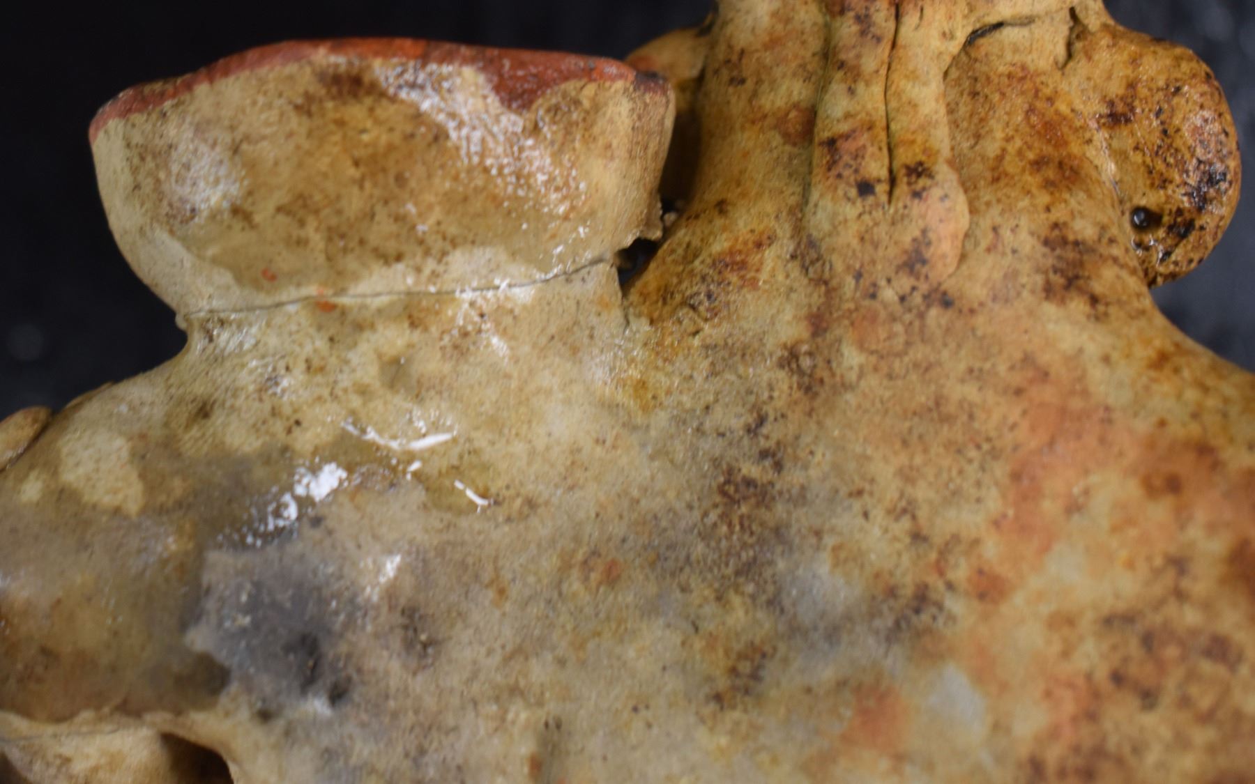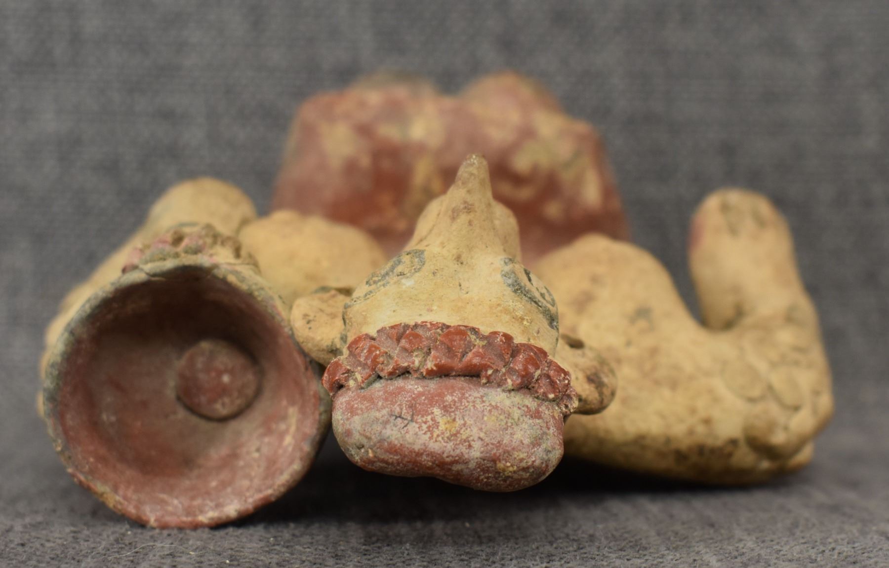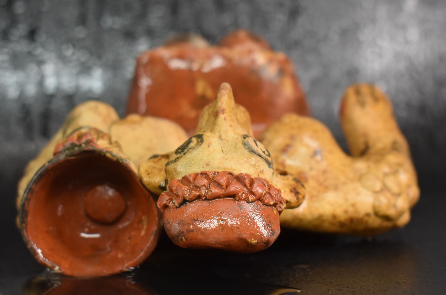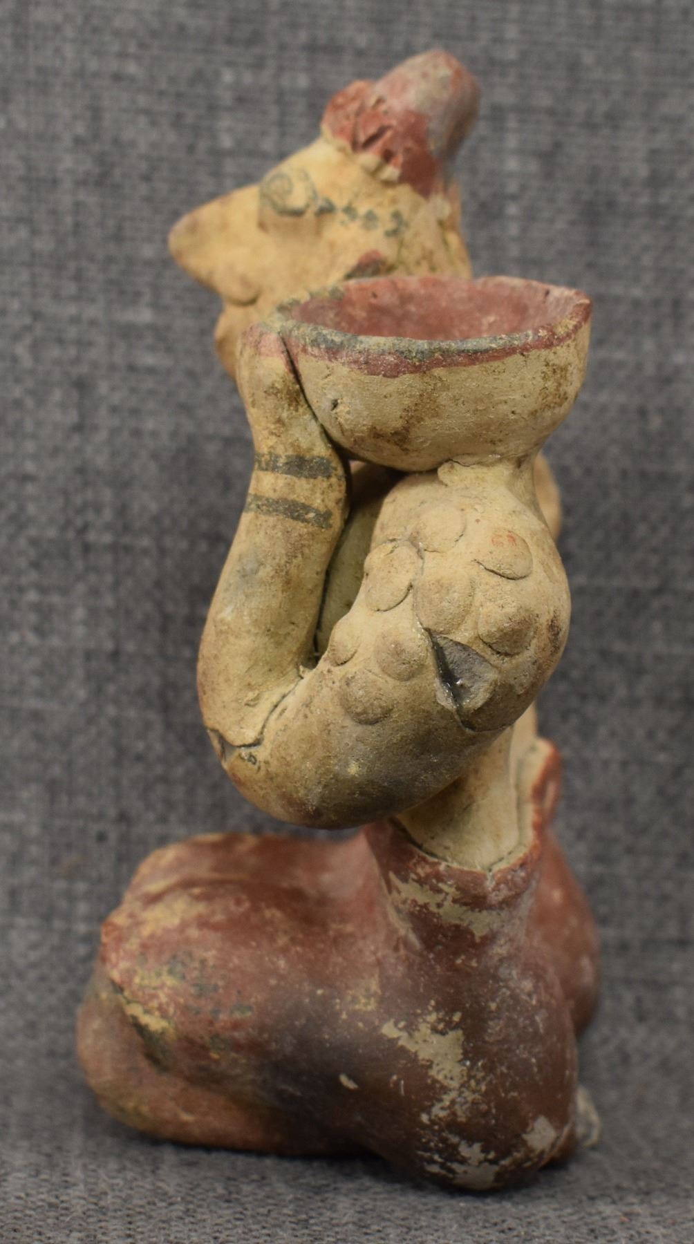 100 BC- 250 AD. Jalisco kneeling female pottery figure. 6'' x 5'' x 2.5'' Broken and glued