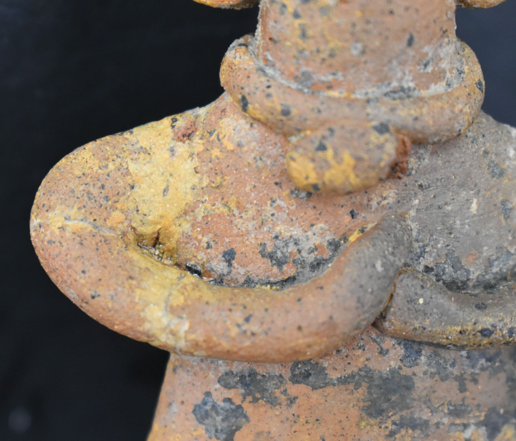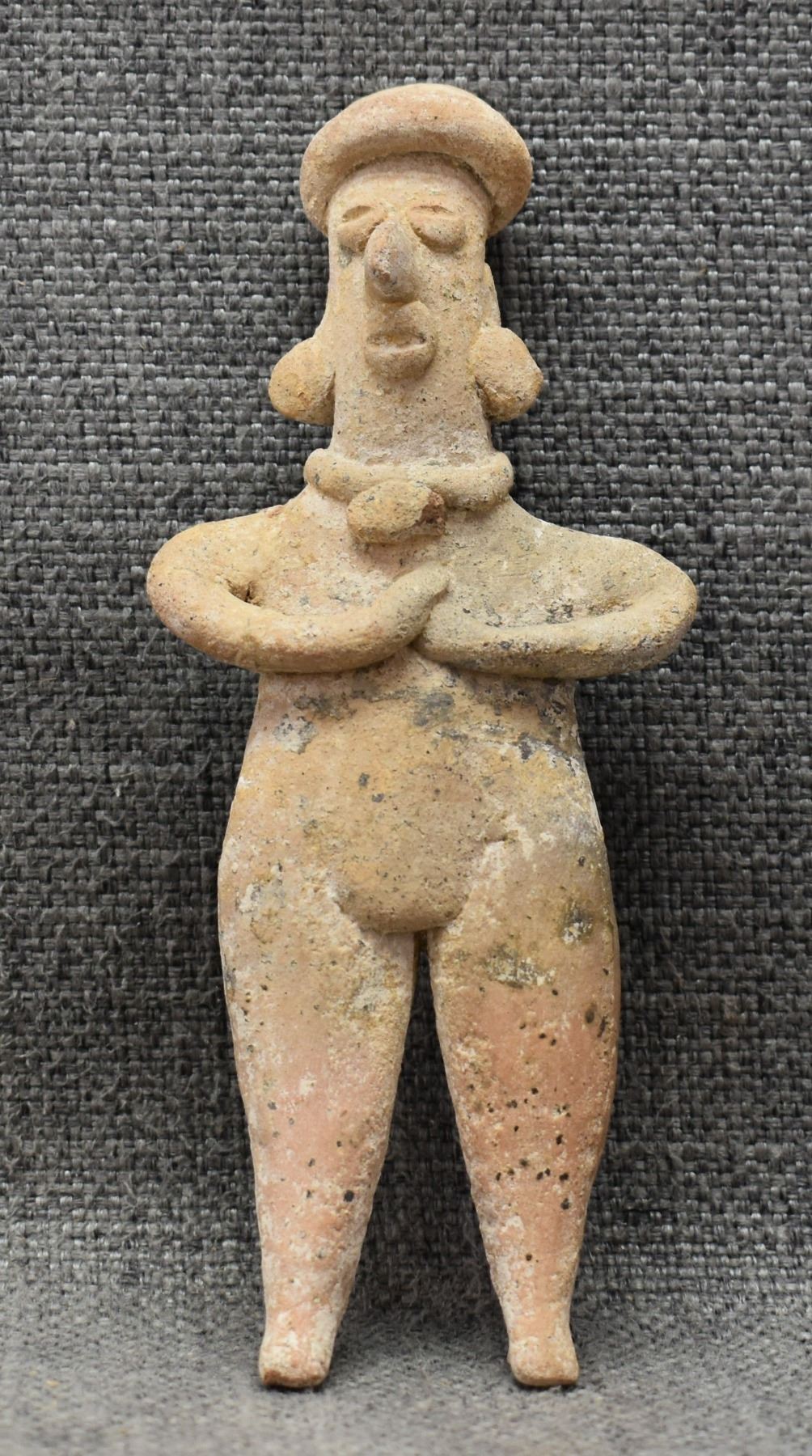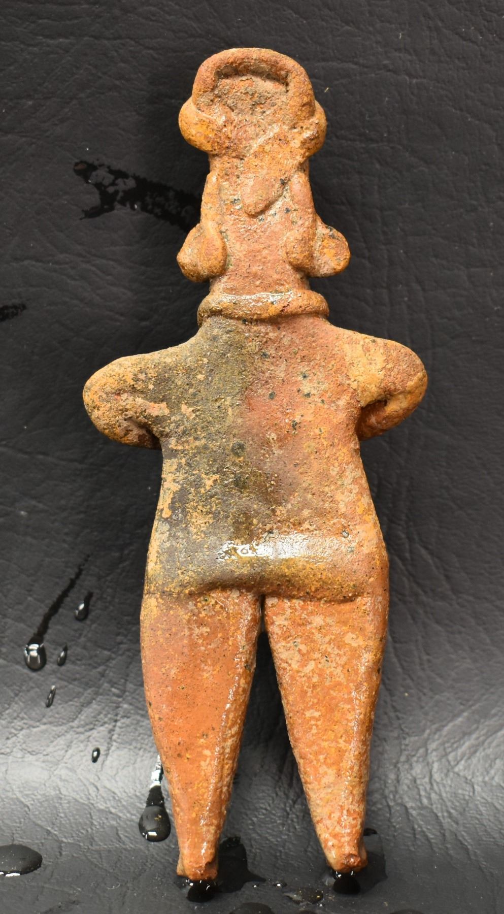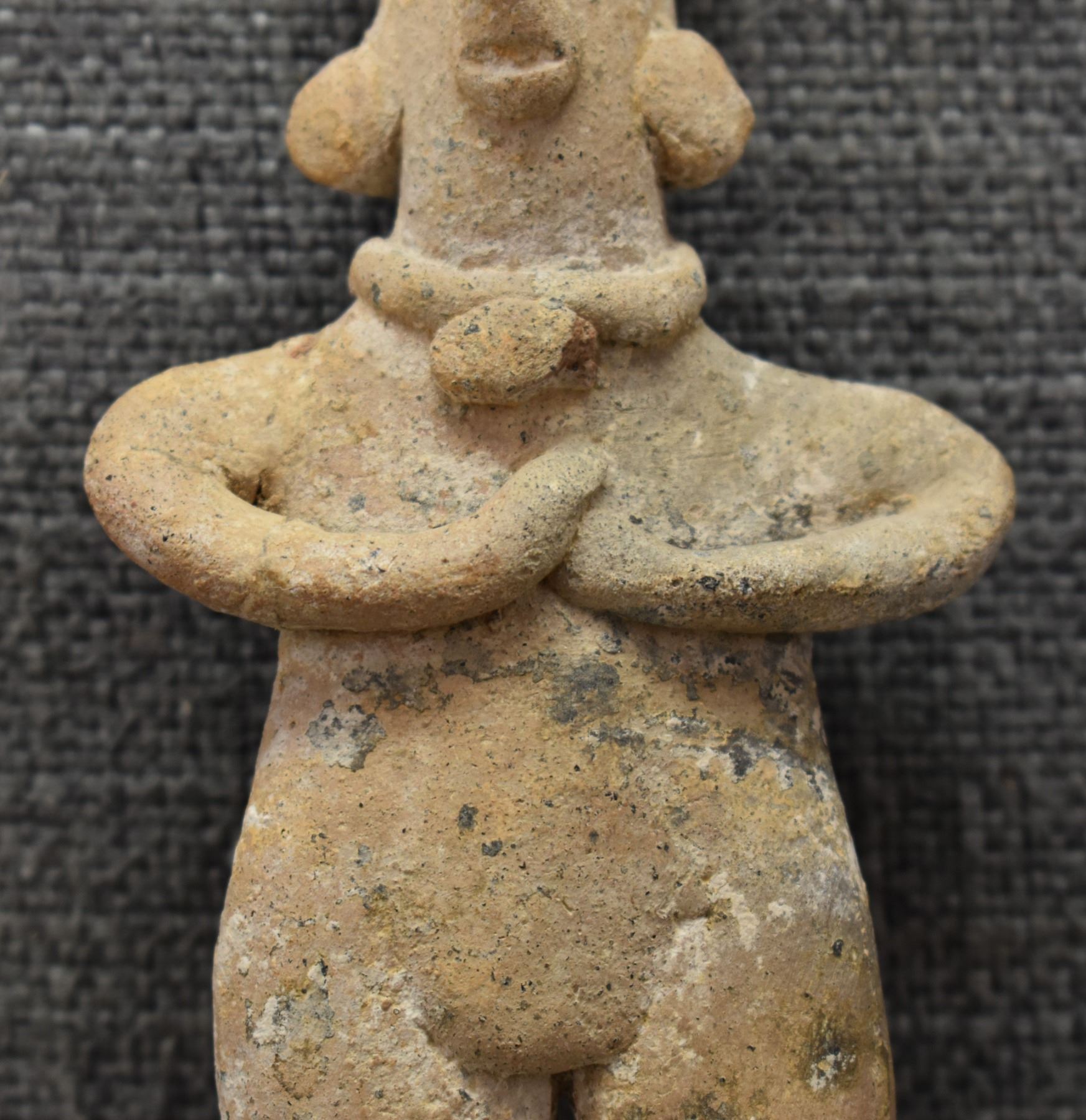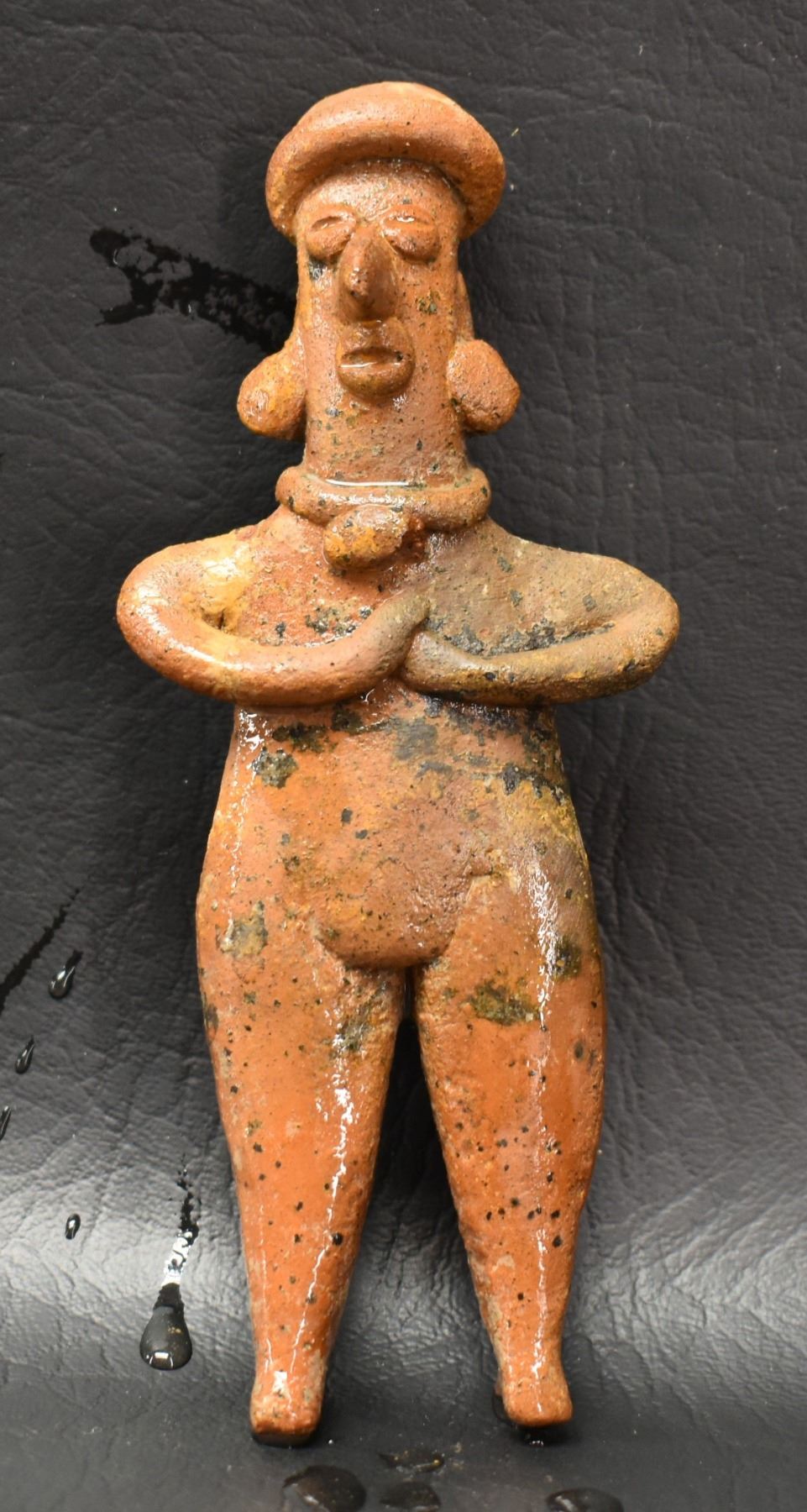 Pre-Columbian pottery figure has been broken and glued. 5.5'' tall