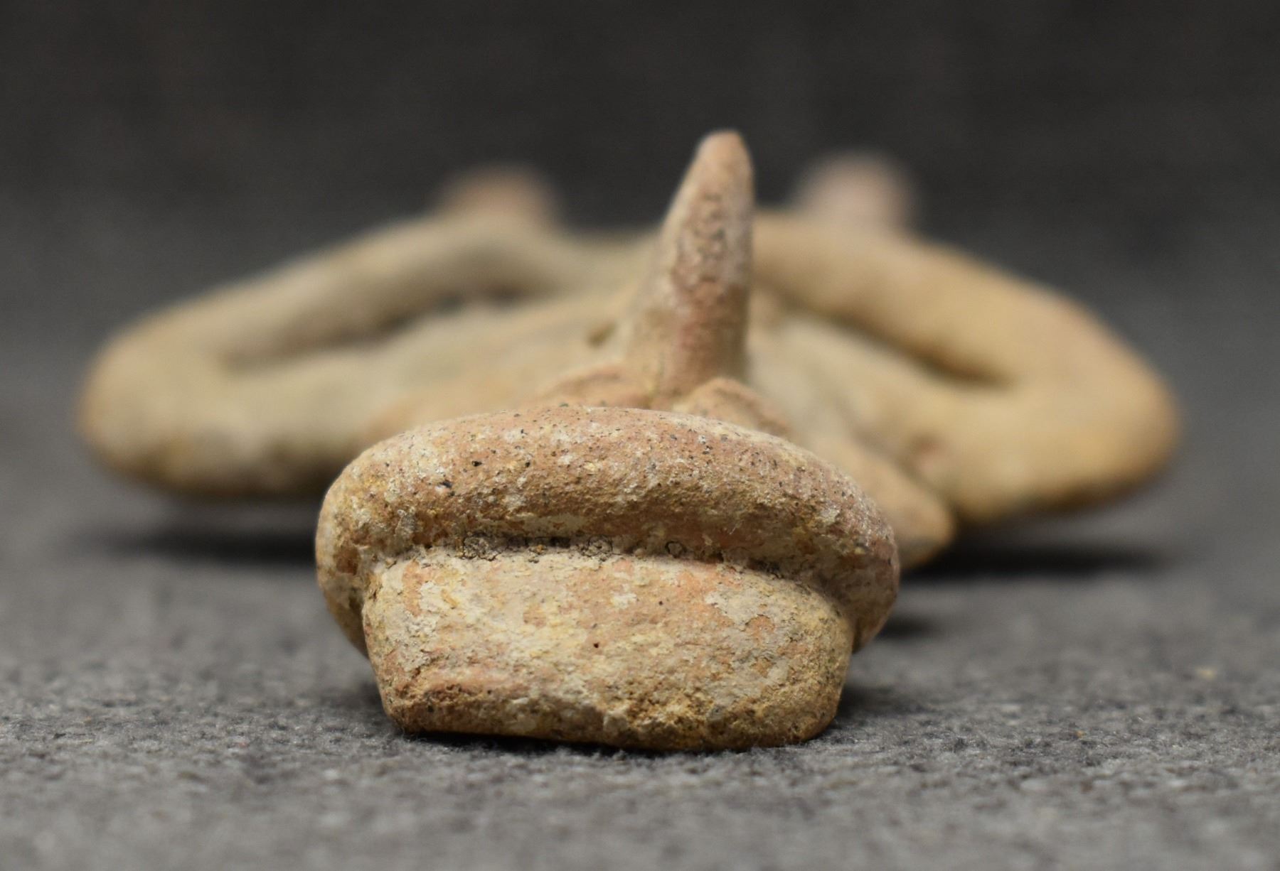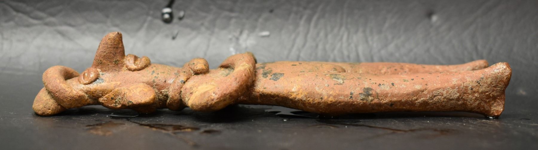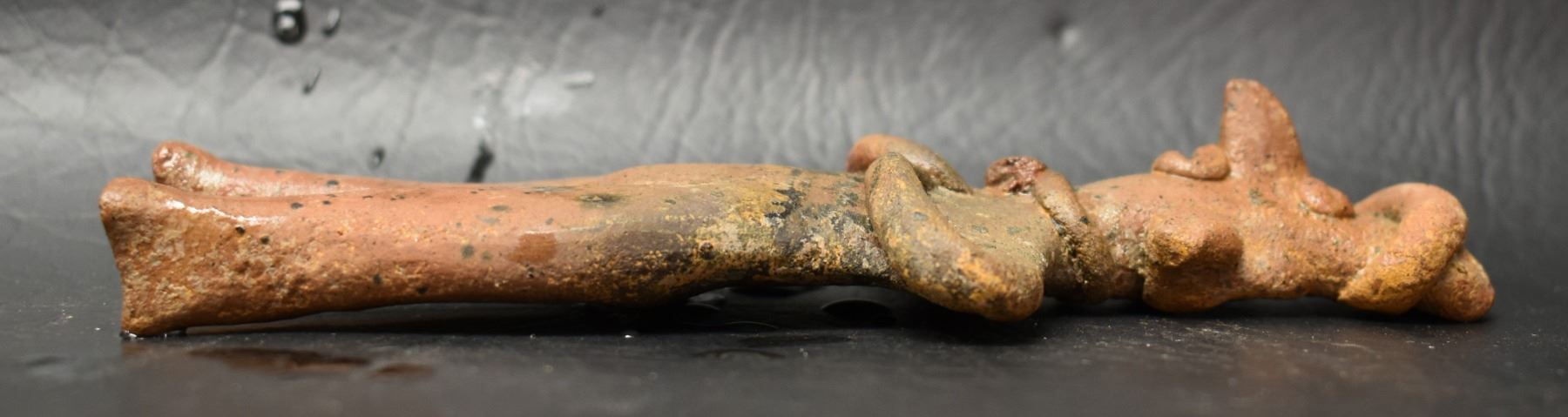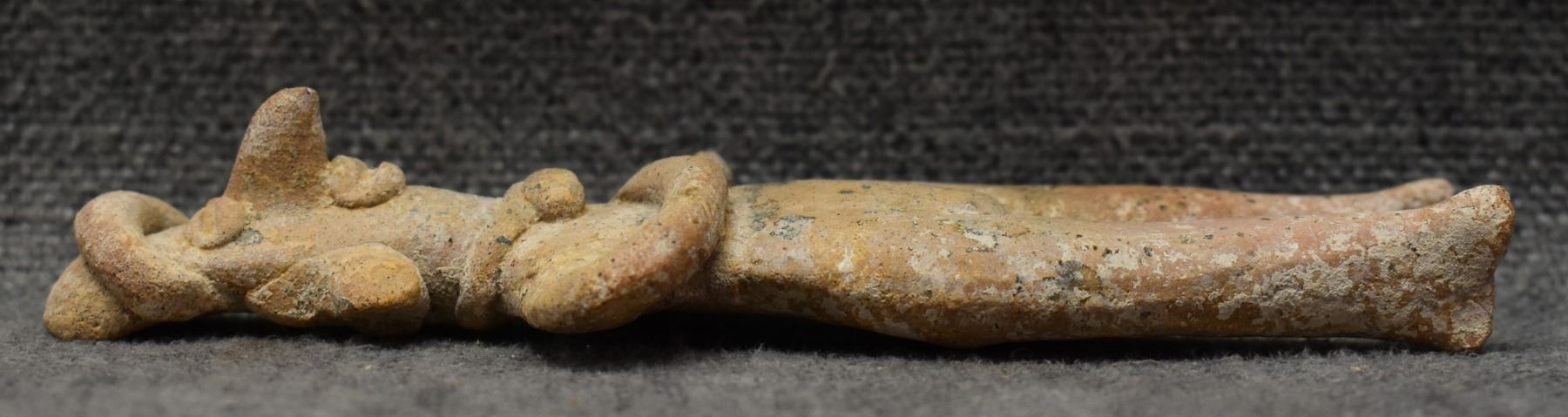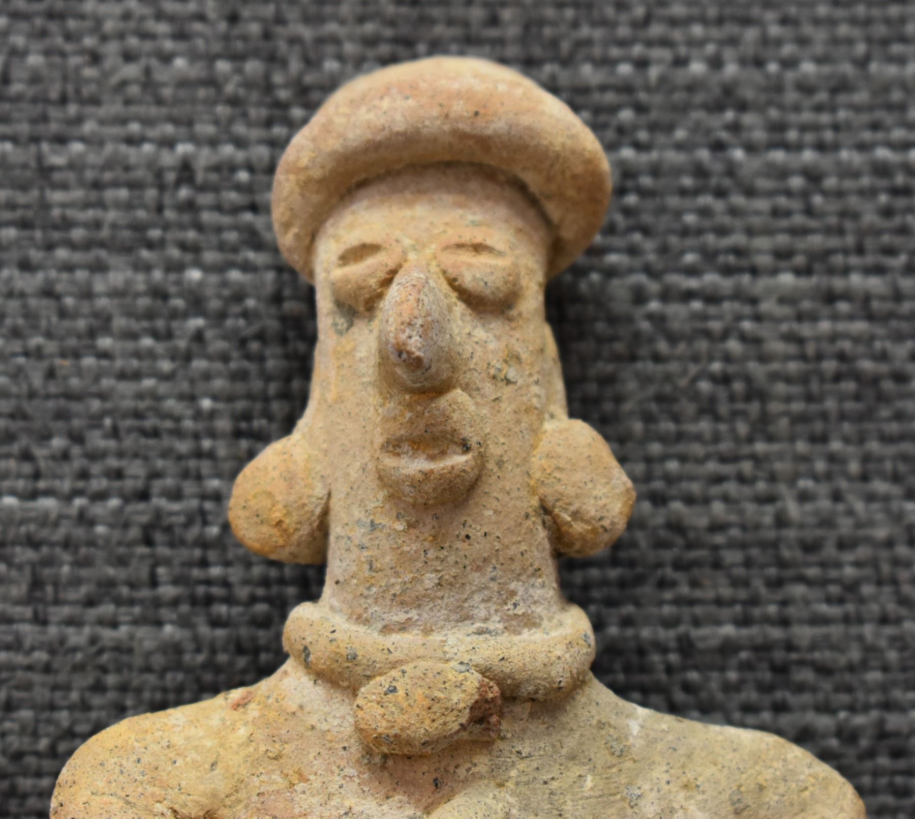 Pre-Columbian pottery figure has been broken and glued. 5.5'' tall