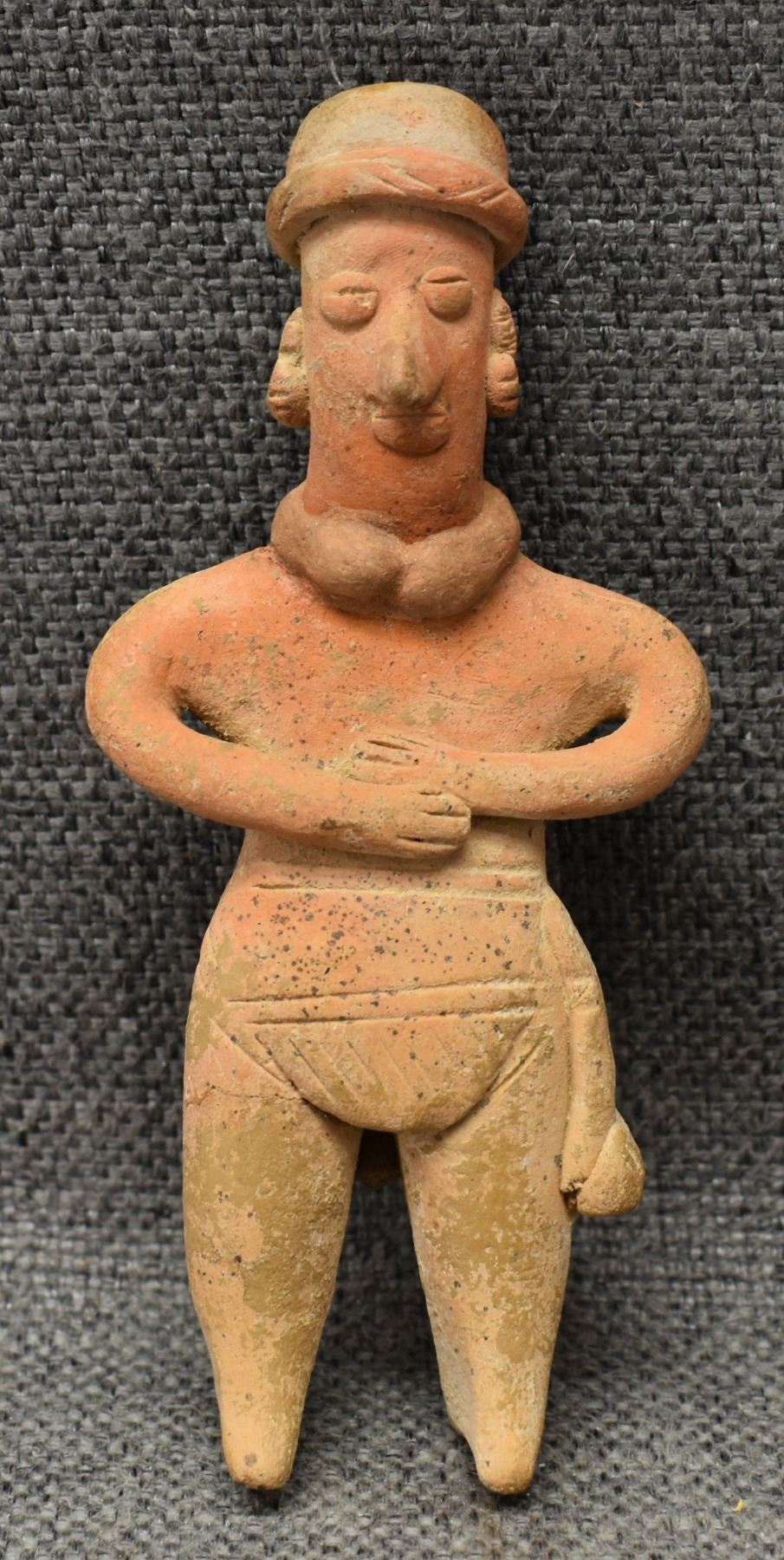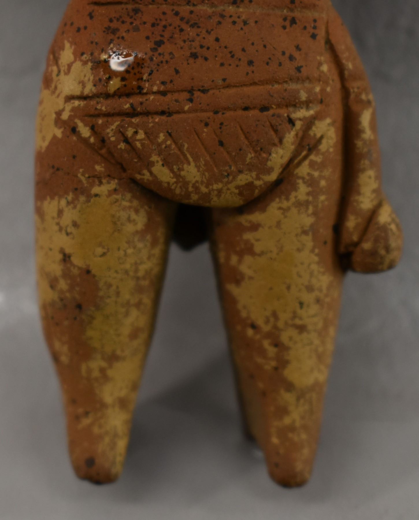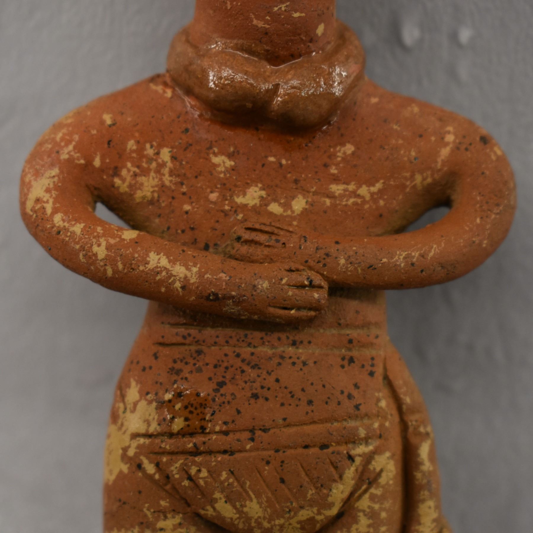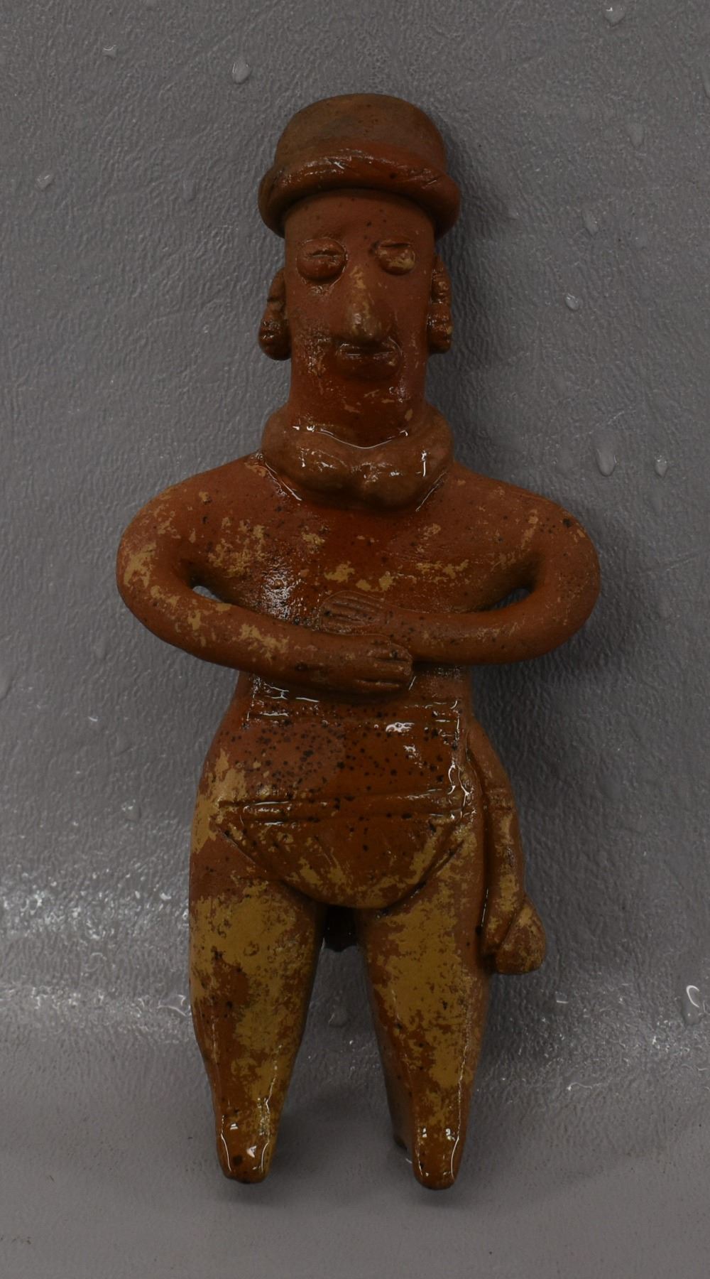 Pre-Columbian pottery figure in as found condition. 5'' tall