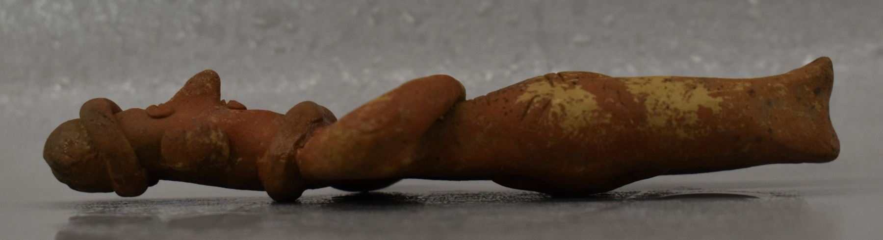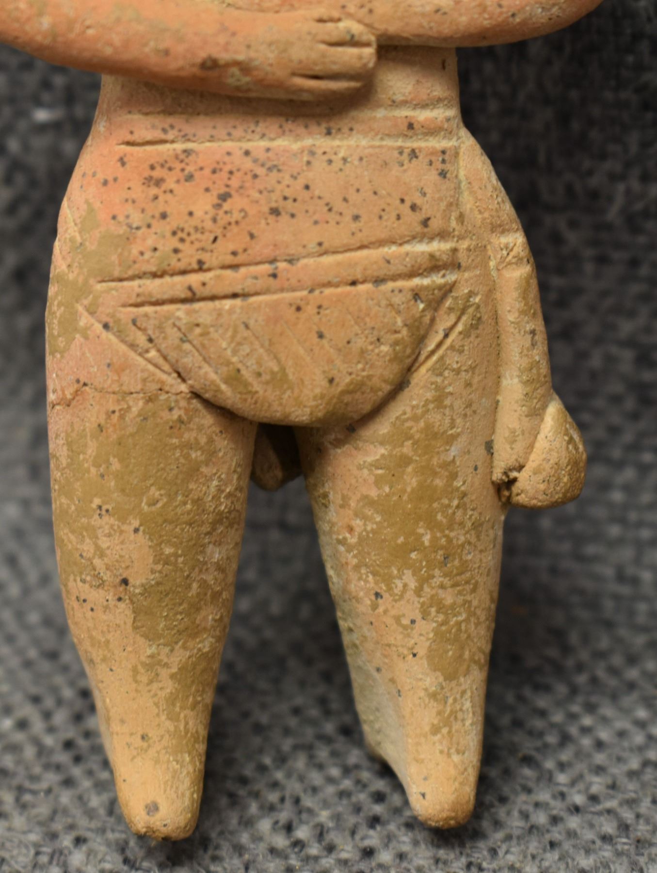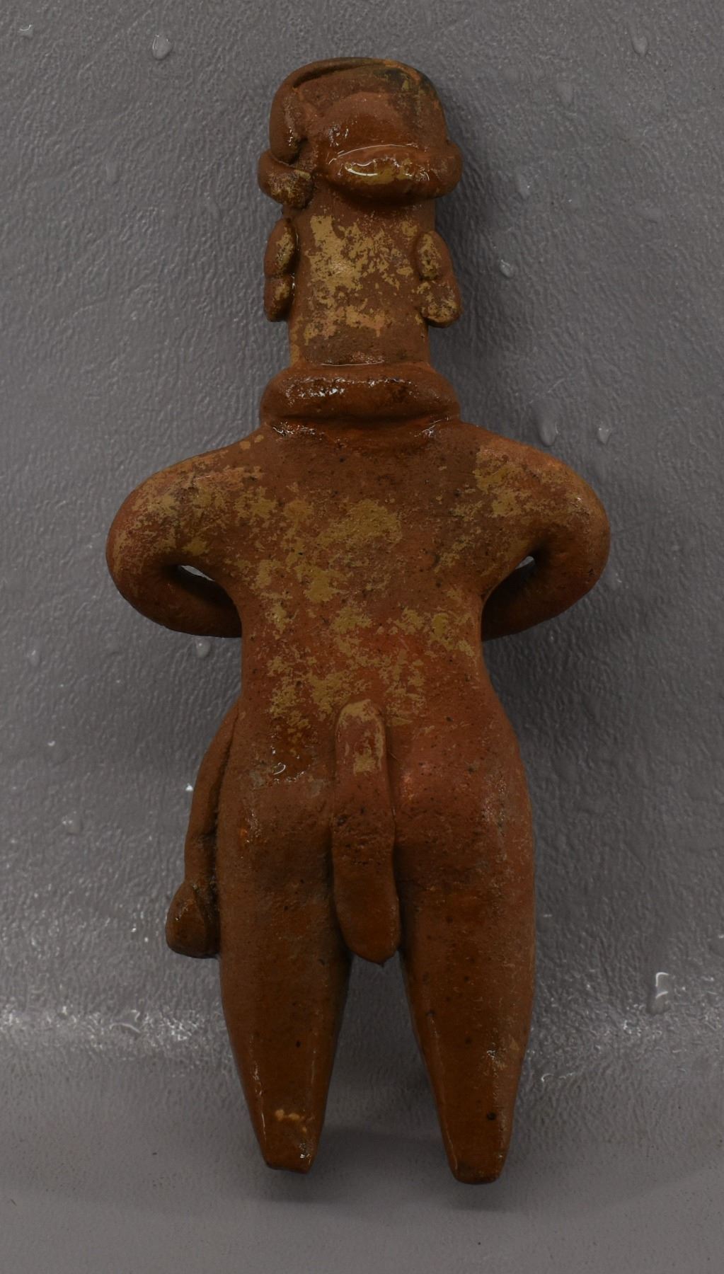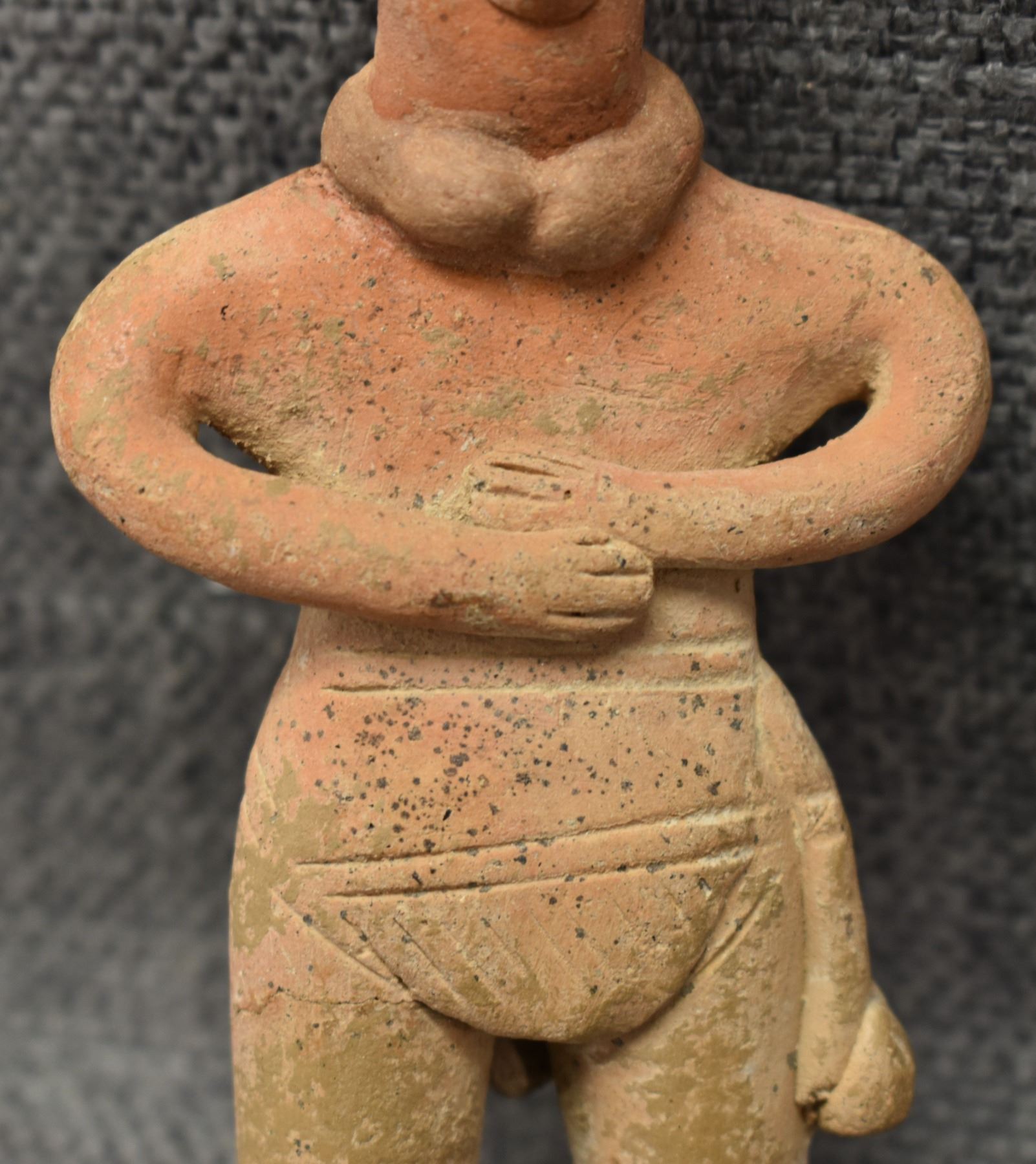 Pre-Columbian pottery figure in as found condition. 5'' tall