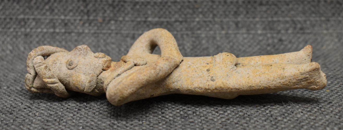 Pre-Columbian pottery figure as found condition. 4.5'' tall