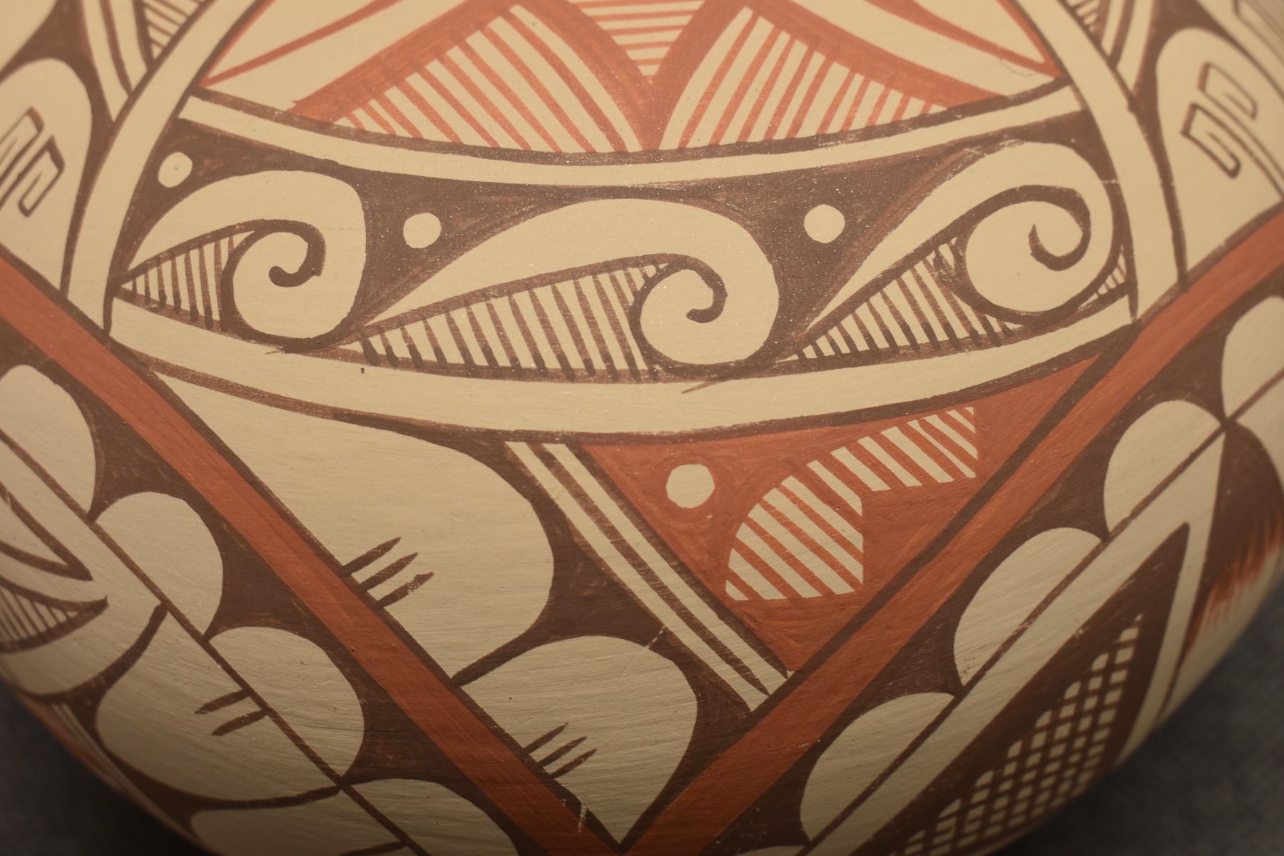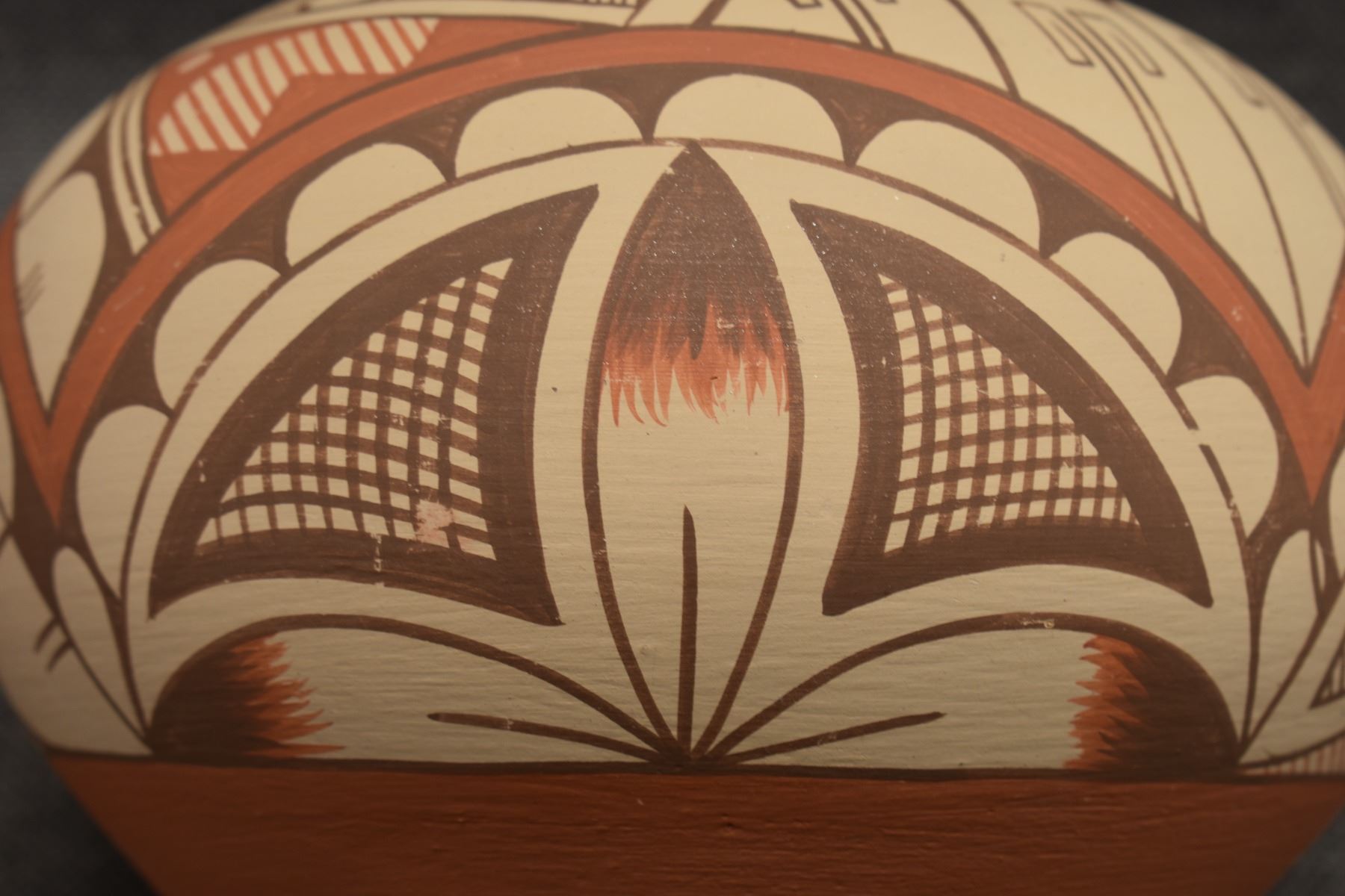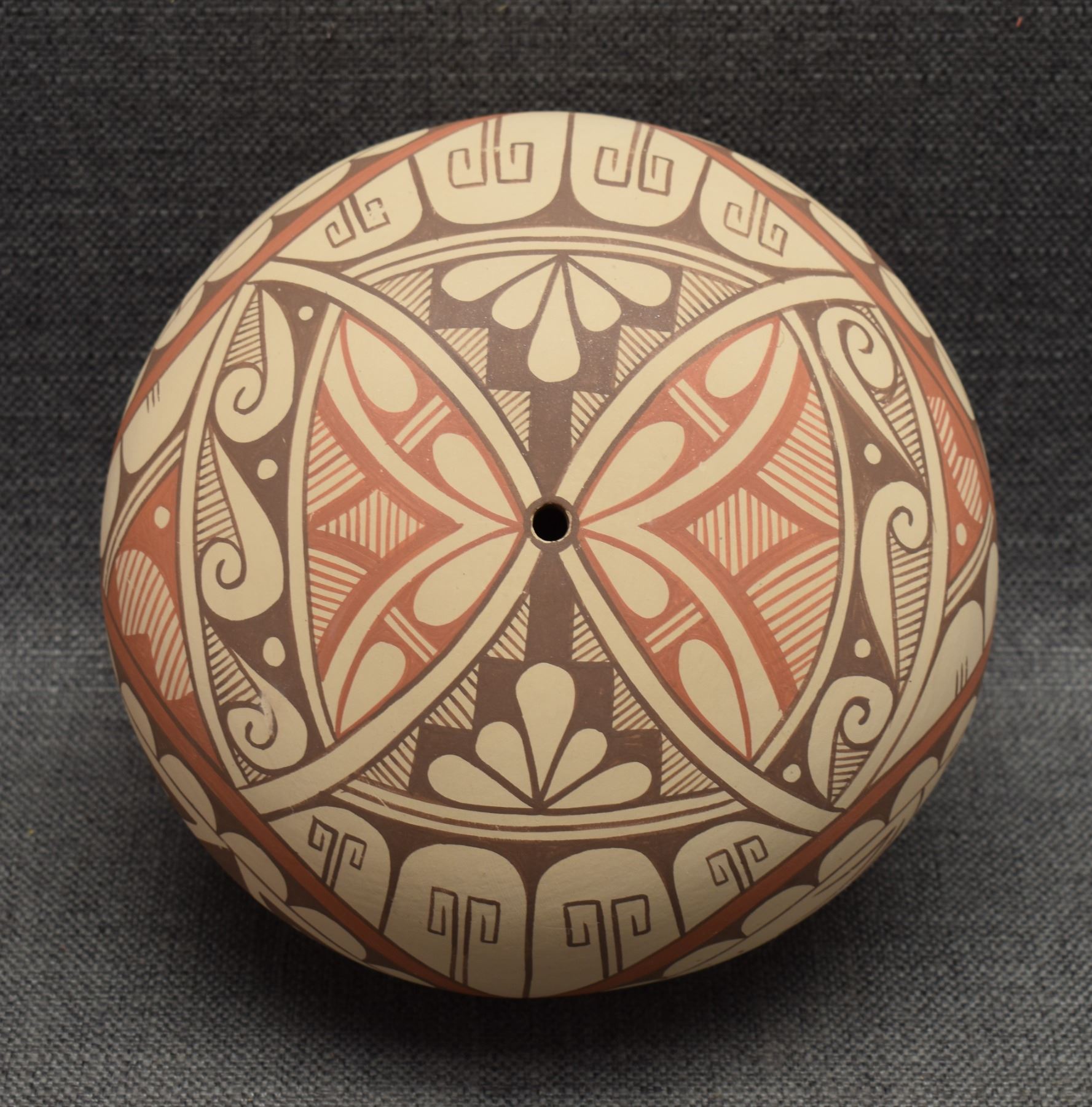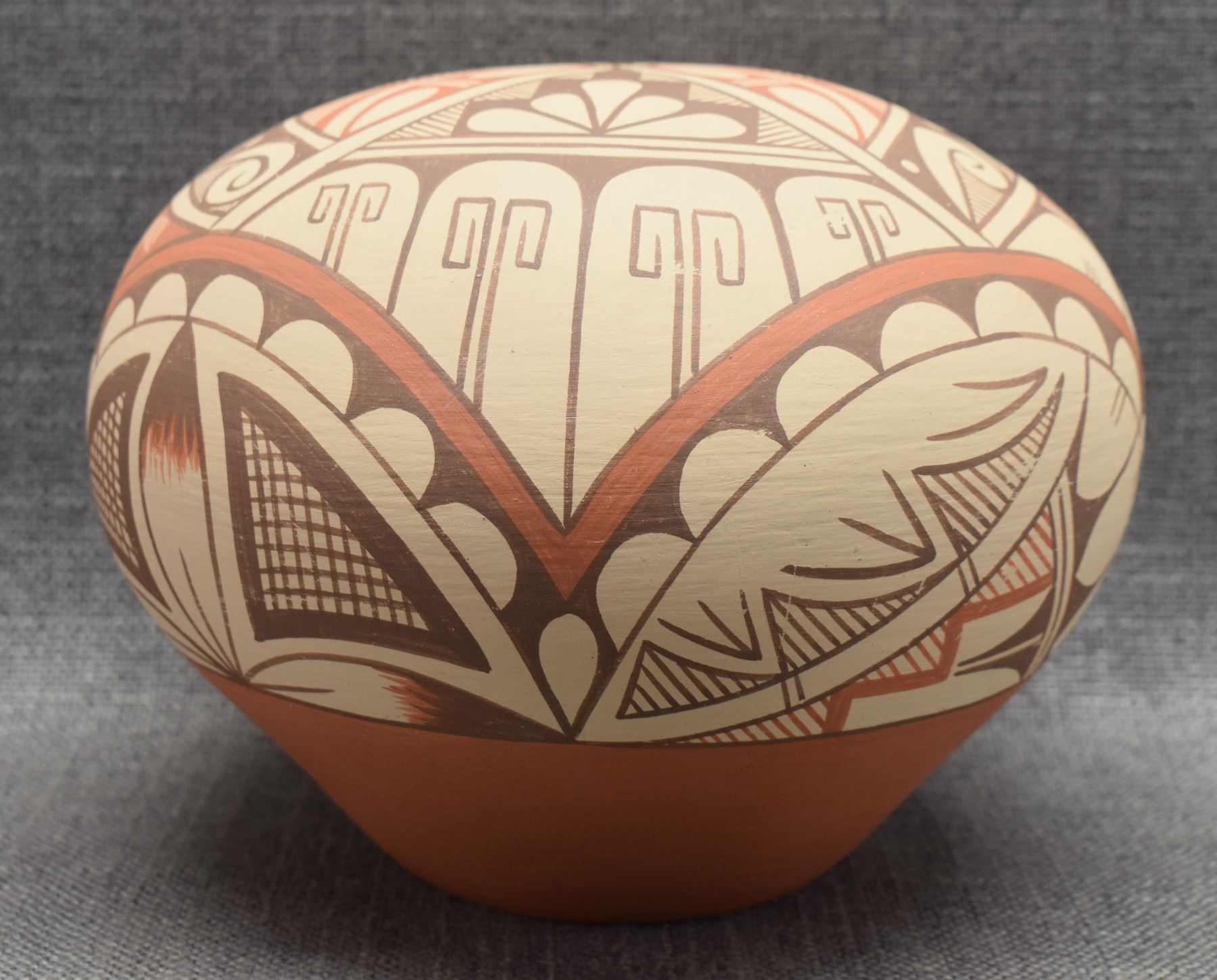 1980-90's Jemez Indian hand coiled and polychrome painted geometric design signed A Tafoya 6.25" x 7.75"