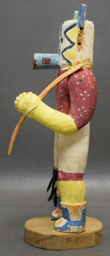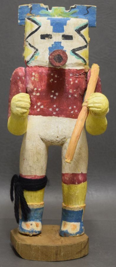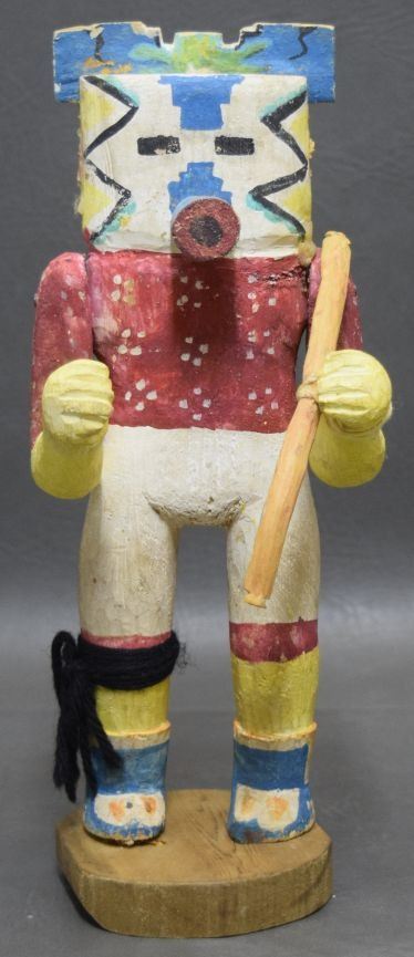 1940's hand carved cotton wood has articulating arms. 12'' tall