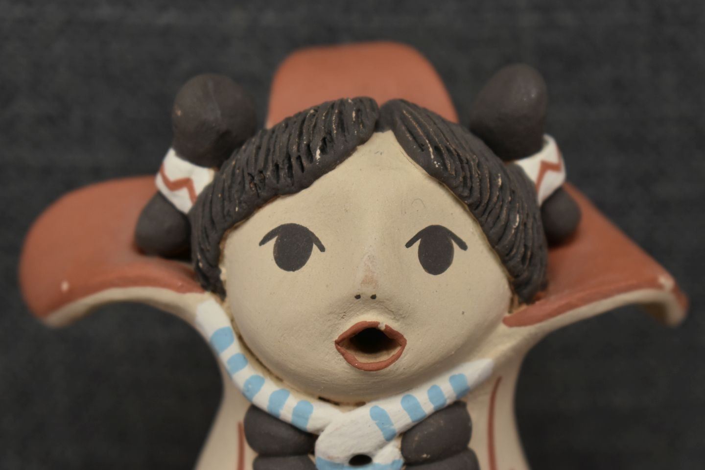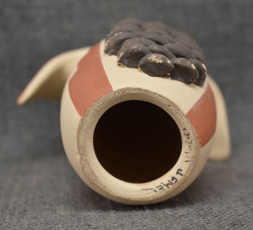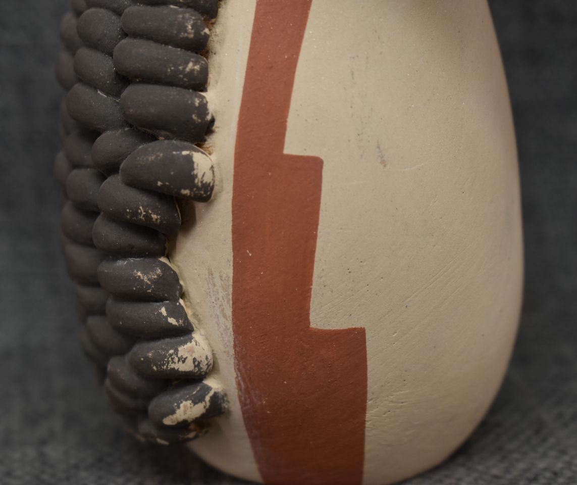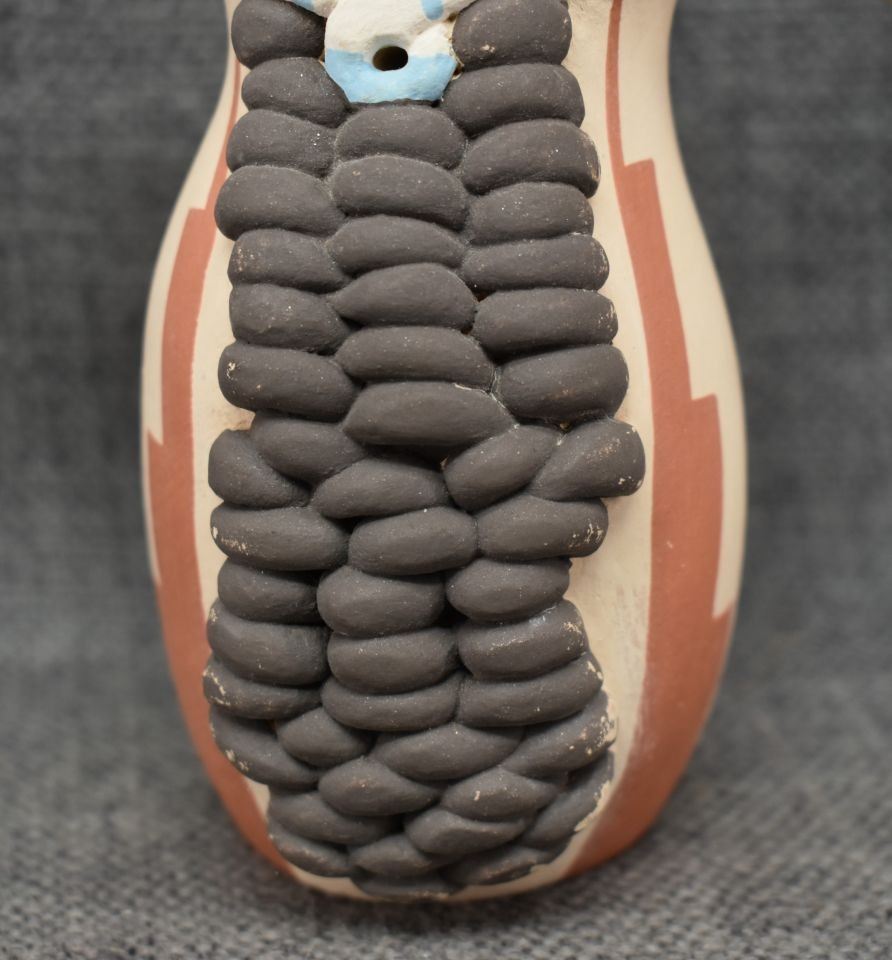 1990's Jemez, hand coiled with polychrome painted corn maiden design signed 5" x 4.25" x 3.25"