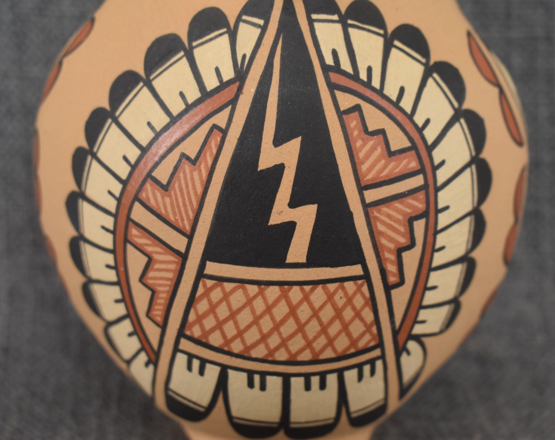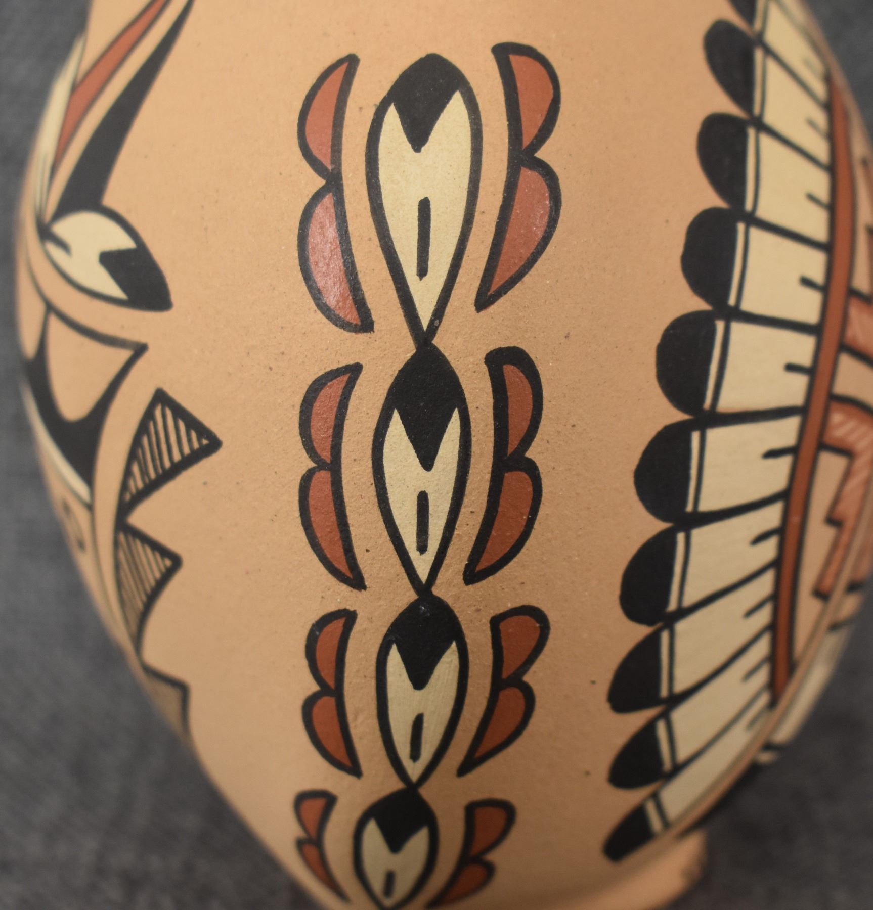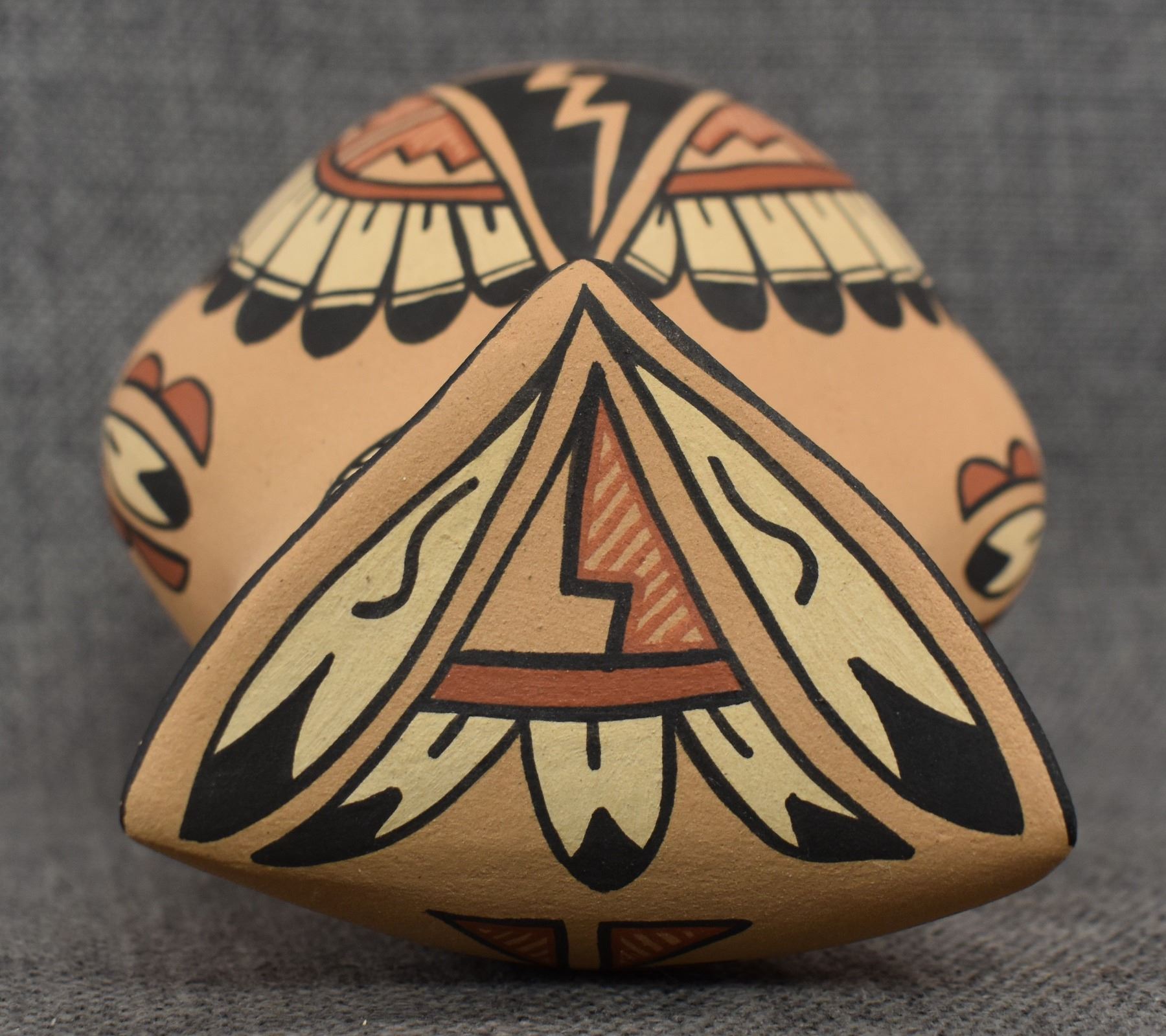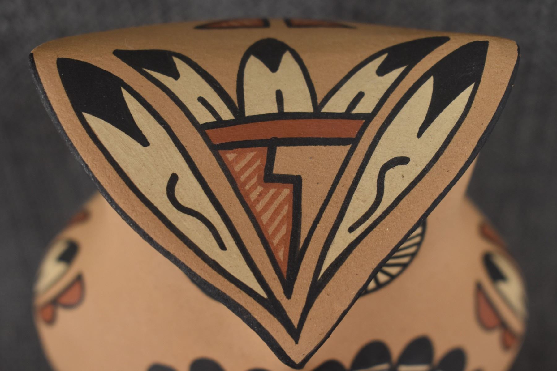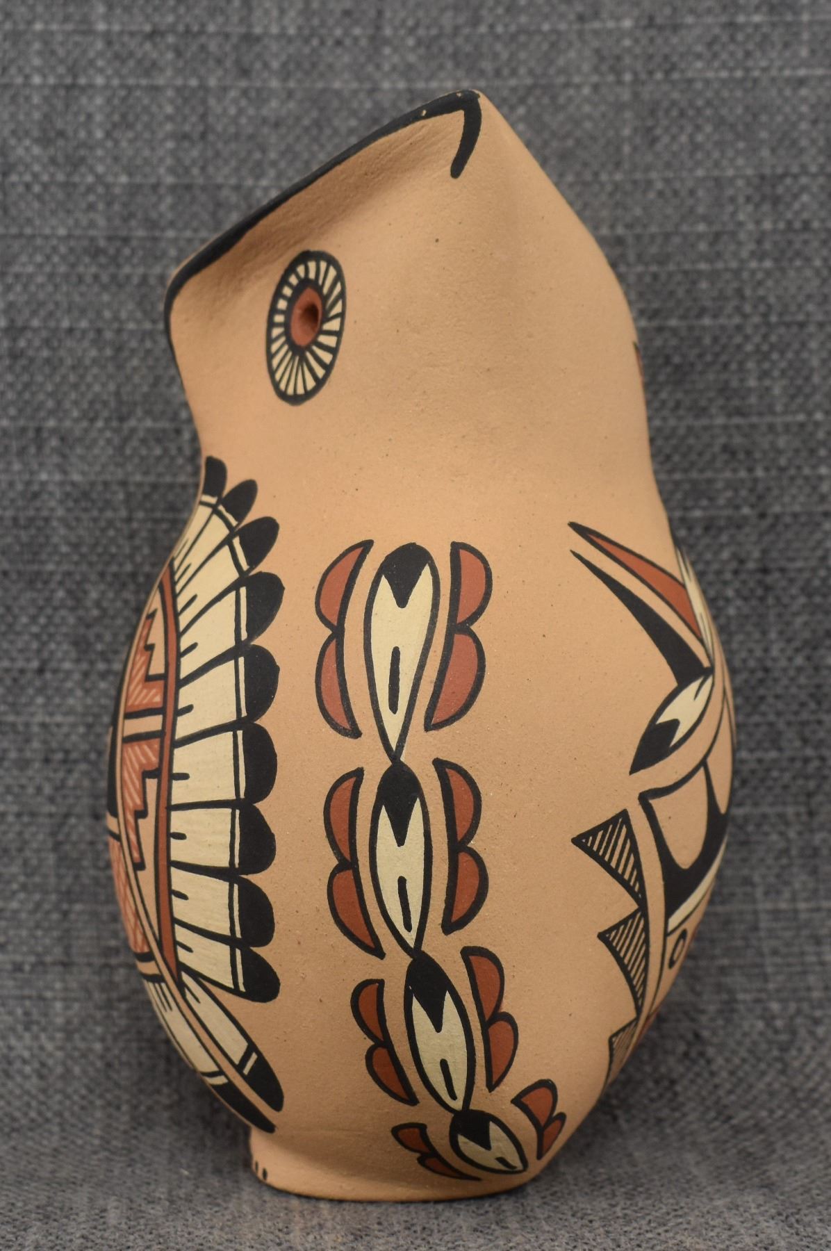 1980's Jemez. Hand coiled an painted pottery owl . Signed G.M. 6'' x 4''