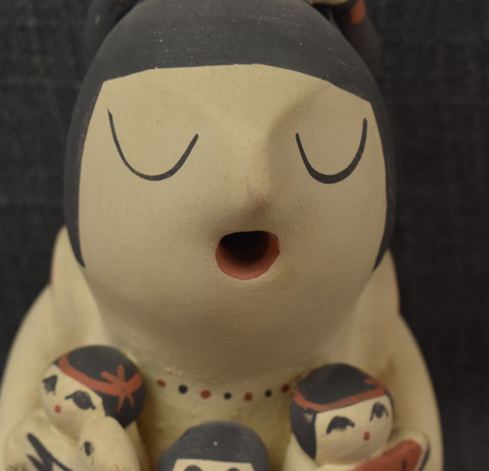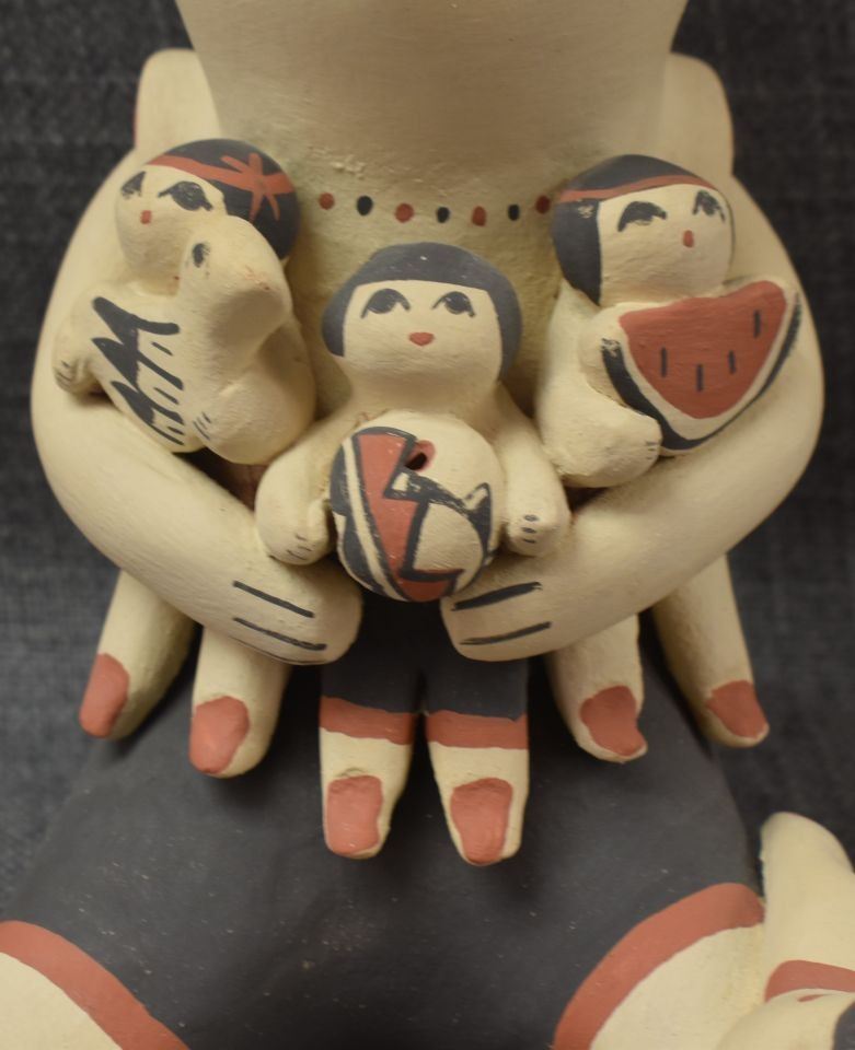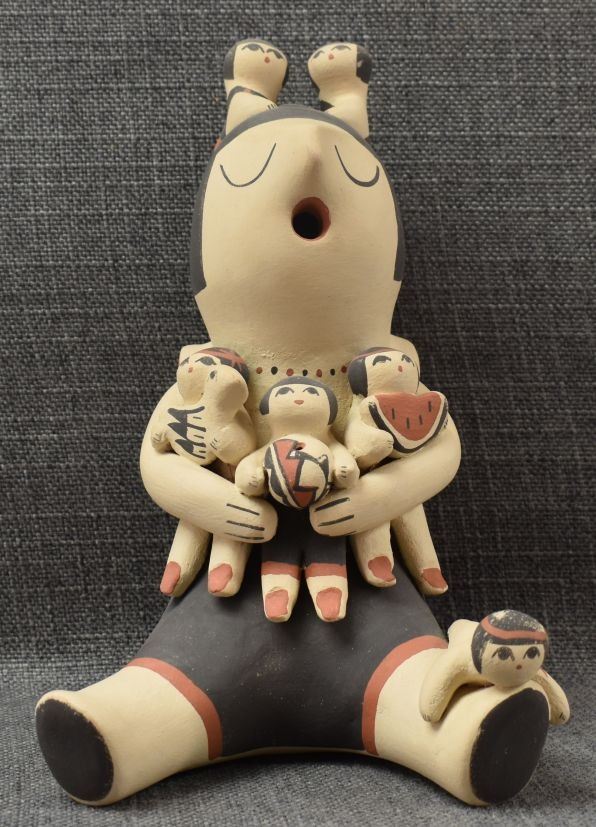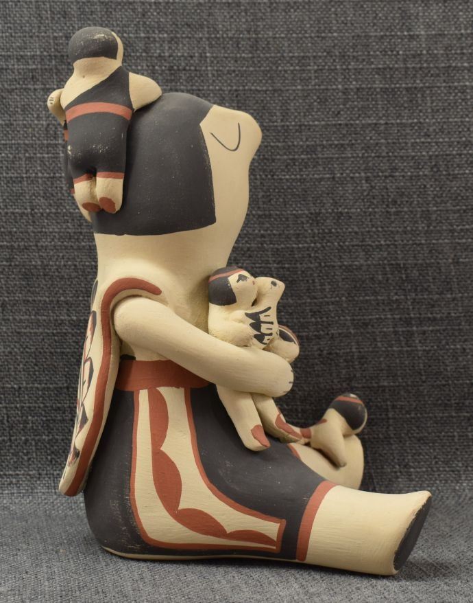 1980-90's Jemez, hand made and painted storyteller with children by Marie Toya 8.5" x 5" x 5.5"