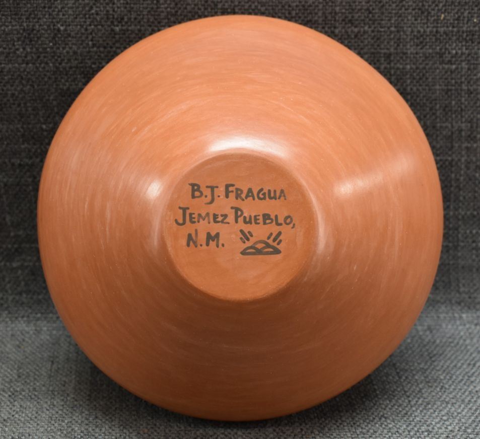 1980's polychrome painted and carved design, signed BJ Fragua. 3.5'' x 7''