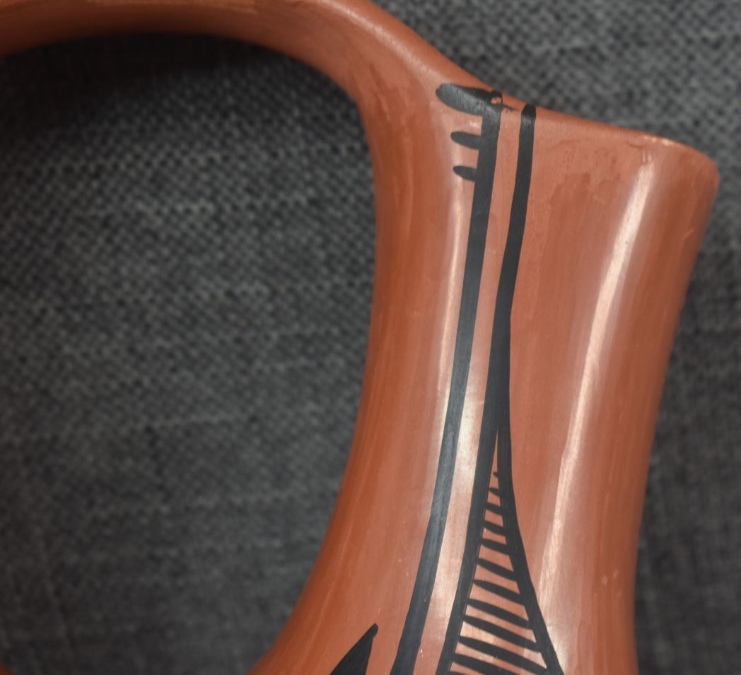 1980's Jemez, hand coiled with black on red painted design by Donald Chinana 13" x 8"