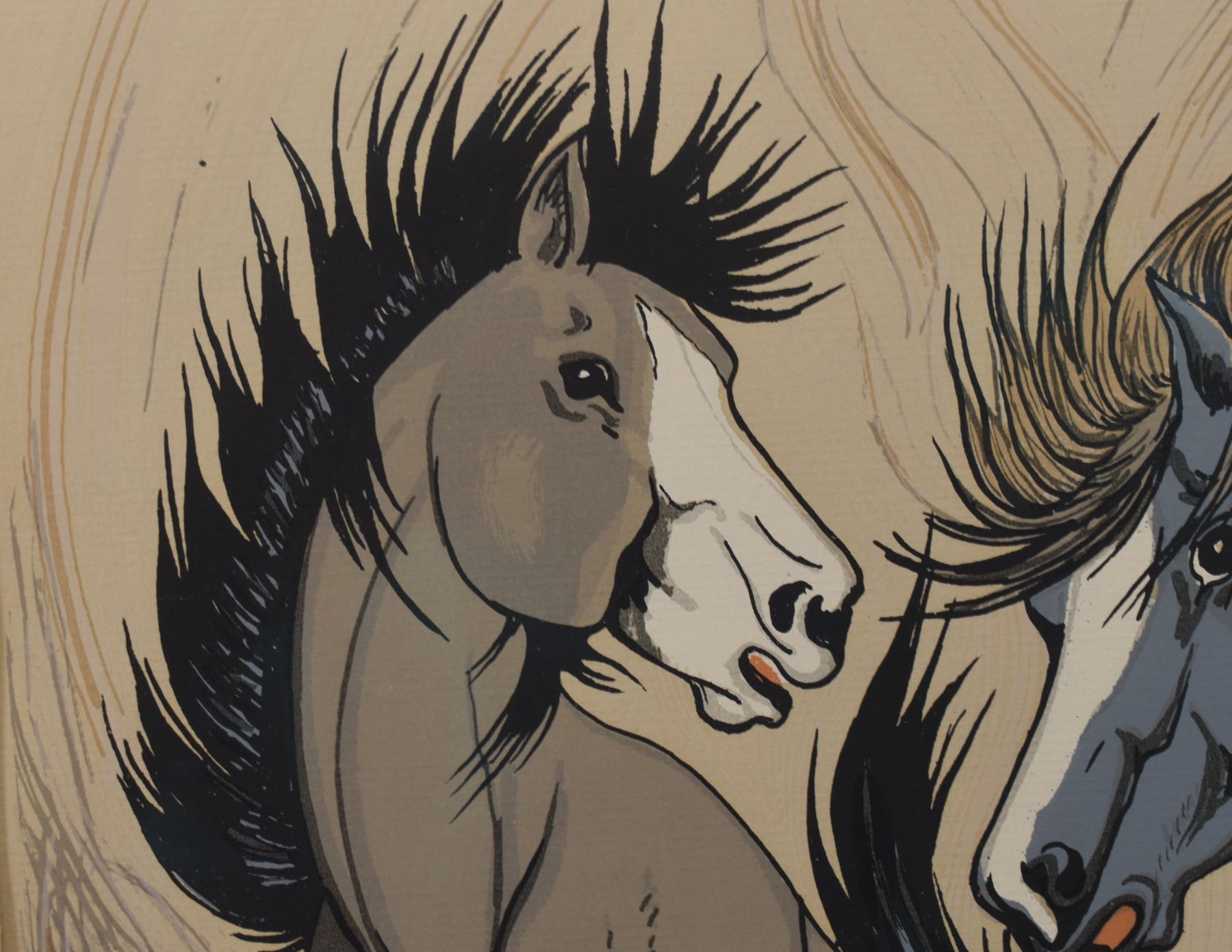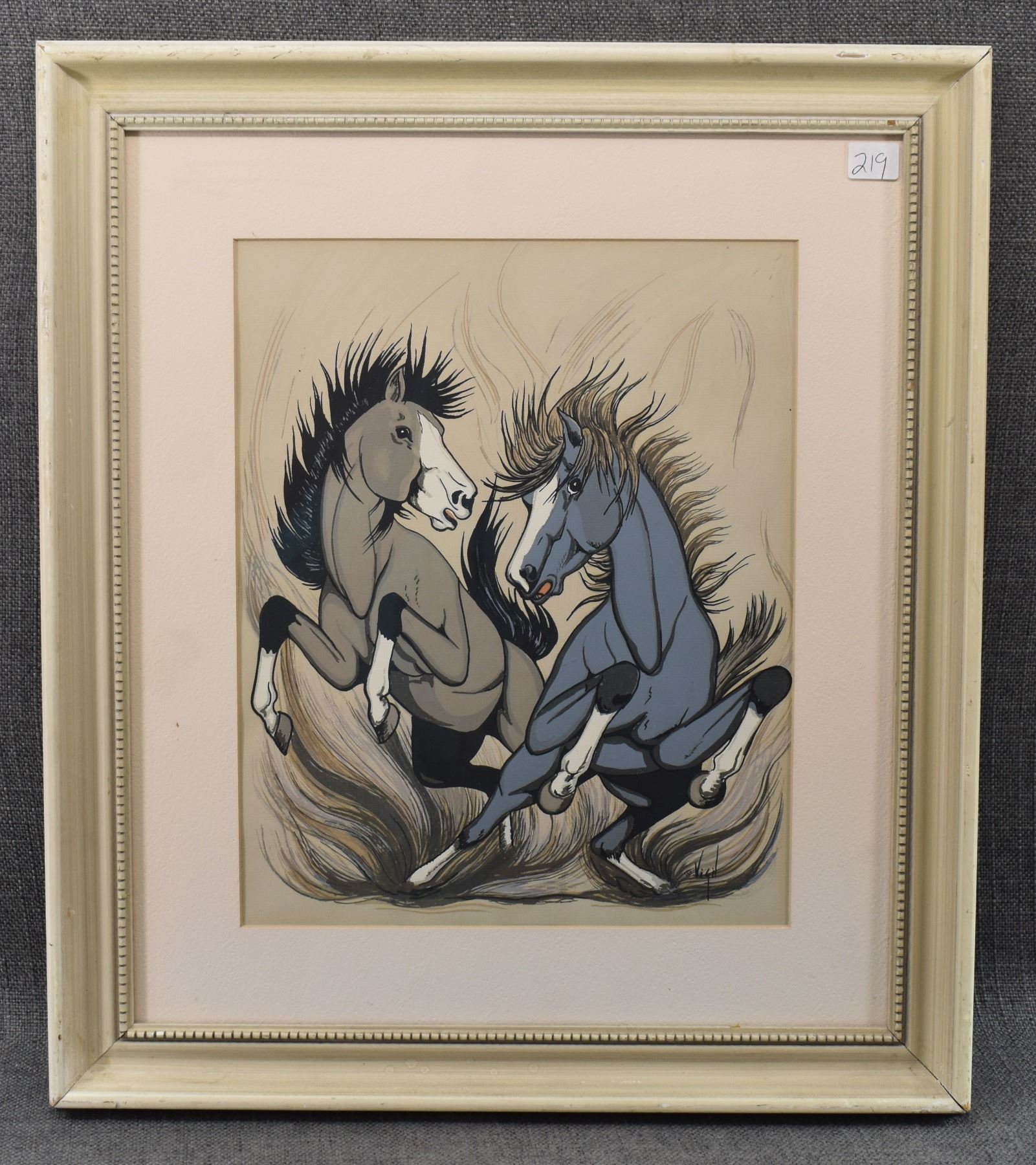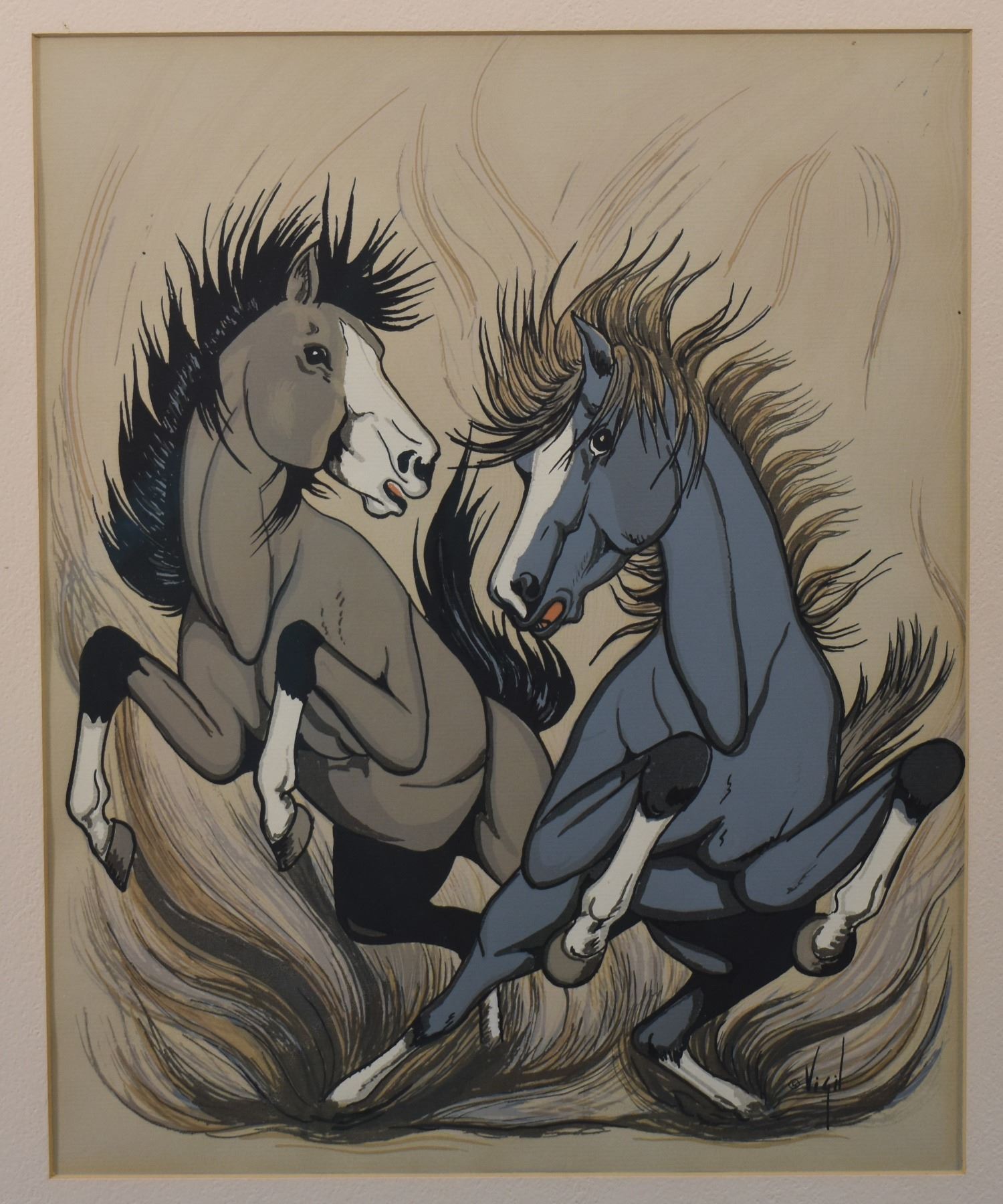 1960's, Jicarilla Apache original depicting horse signed Vigil 12'' x 9.5'' frame 19'' x 17''