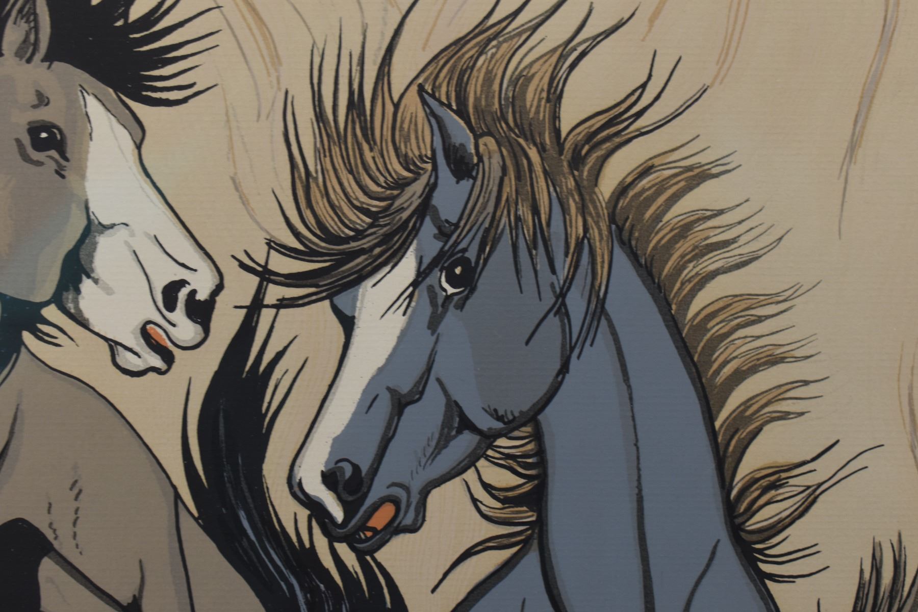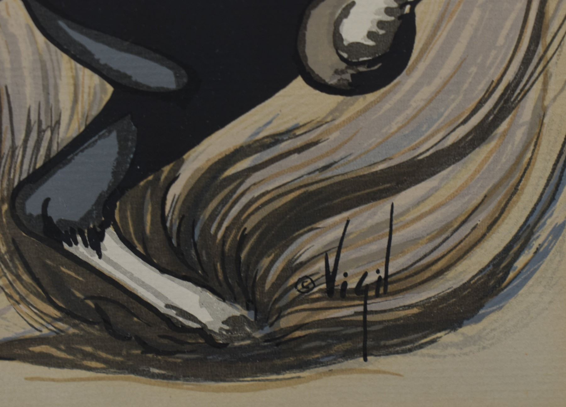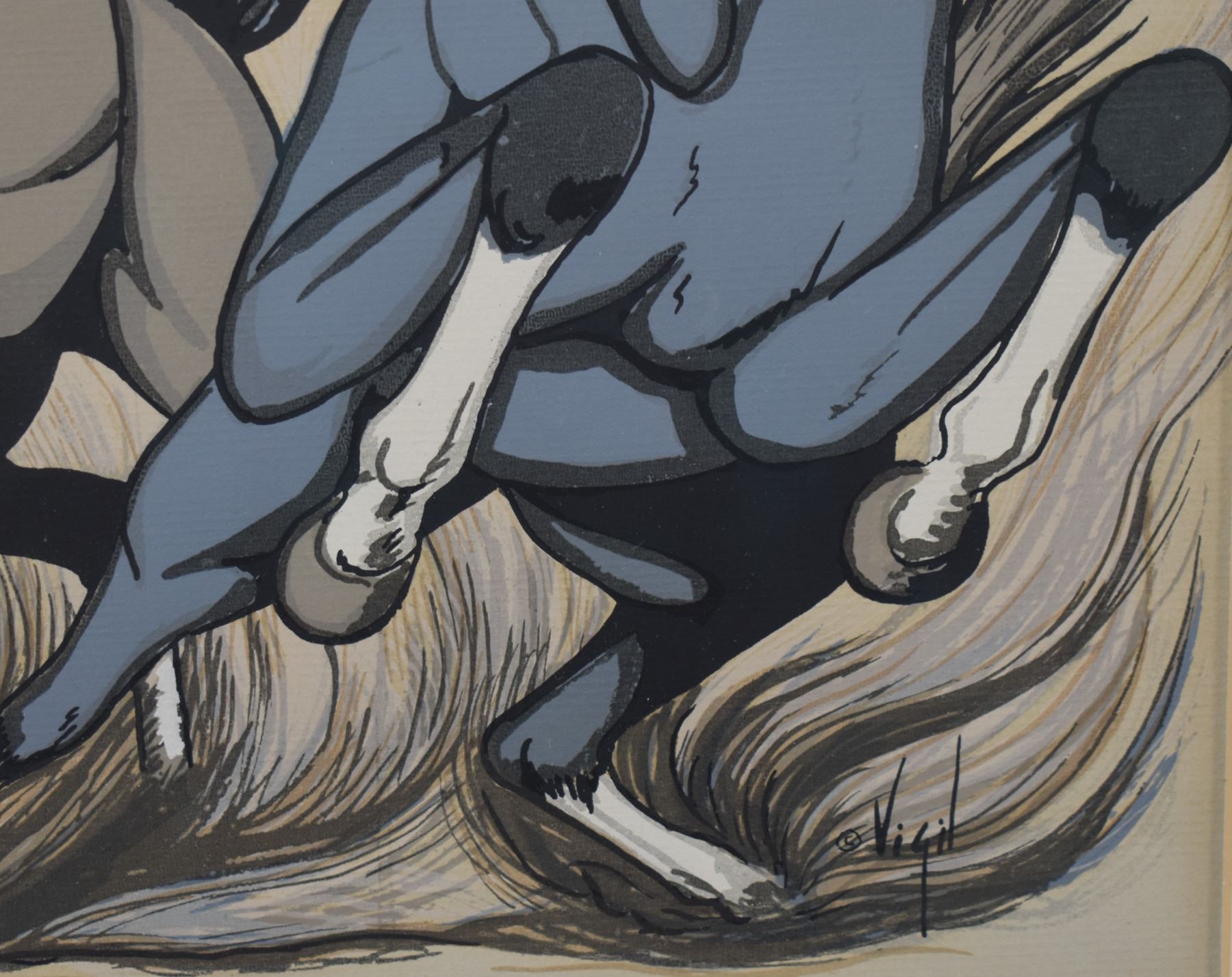 1960's, Jicarilla Apache original depicting horse signed Vigil 12'' x 9.5'' frame 19'' x 17''