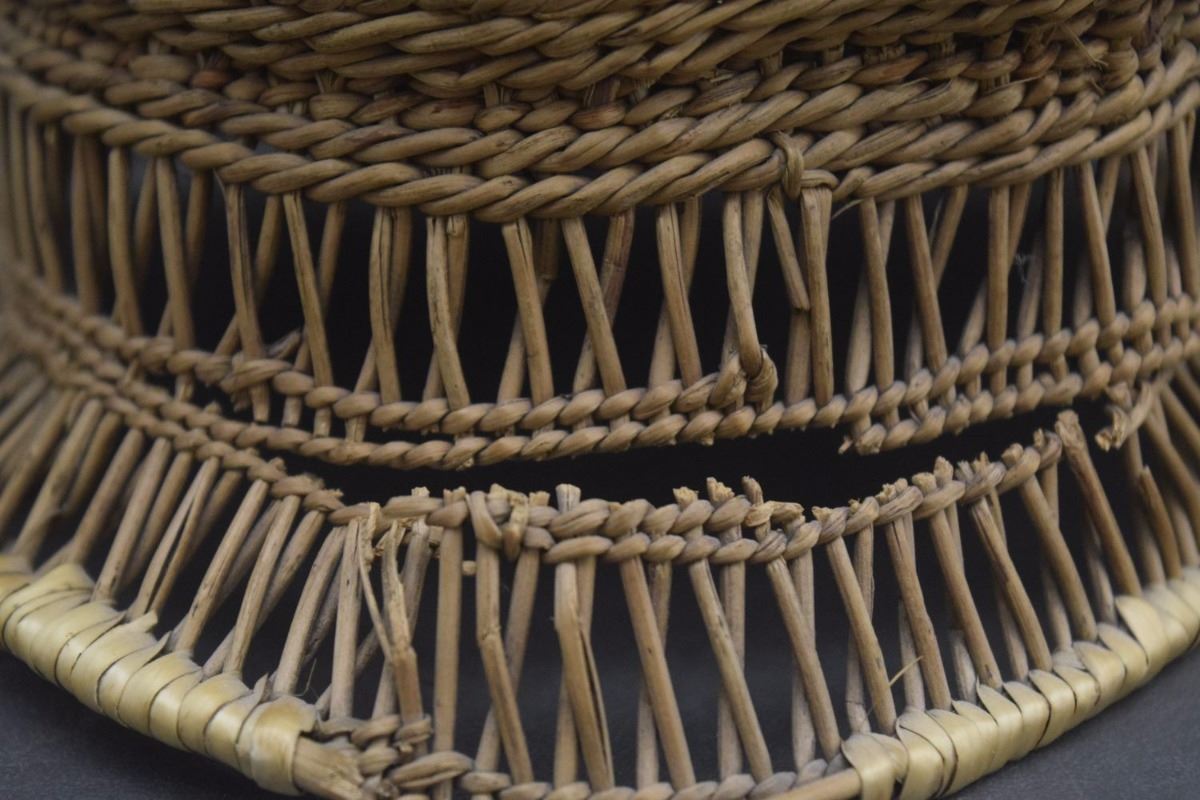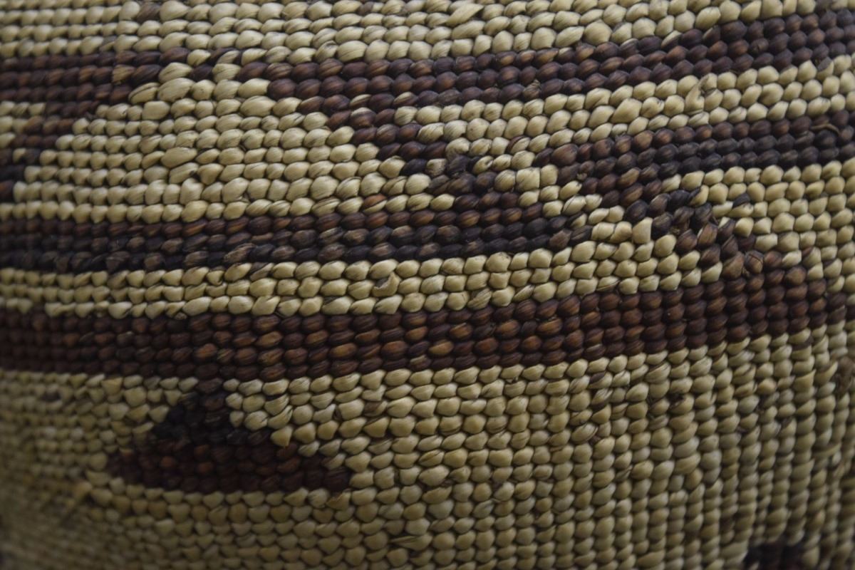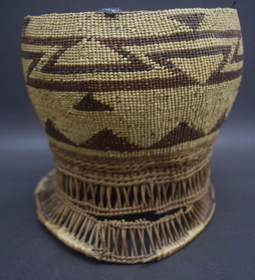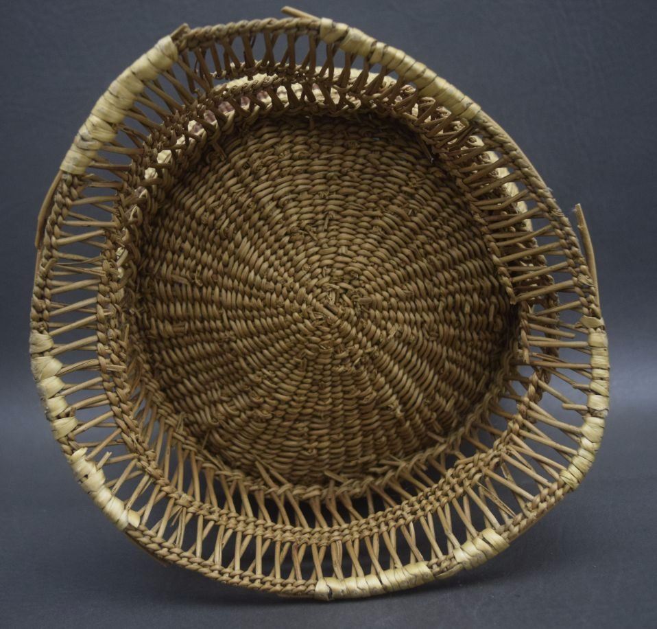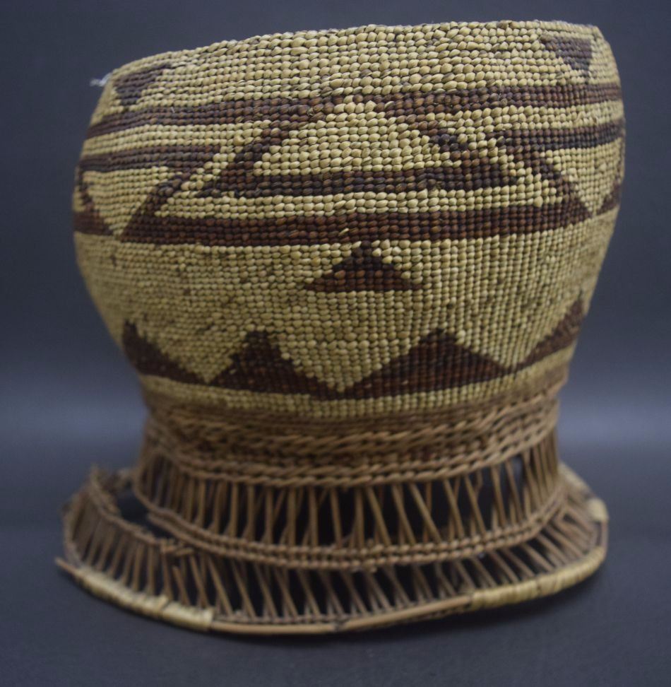 1940's hand woven geometric design with damage on open weave base 6.5'' x 7''