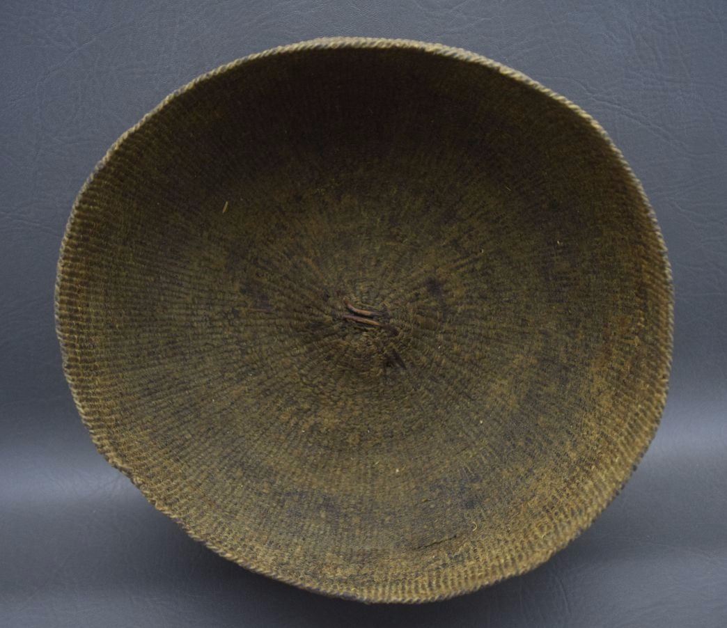 1920's basketry cooking basket has faint banded design has damage 5'' x 12''